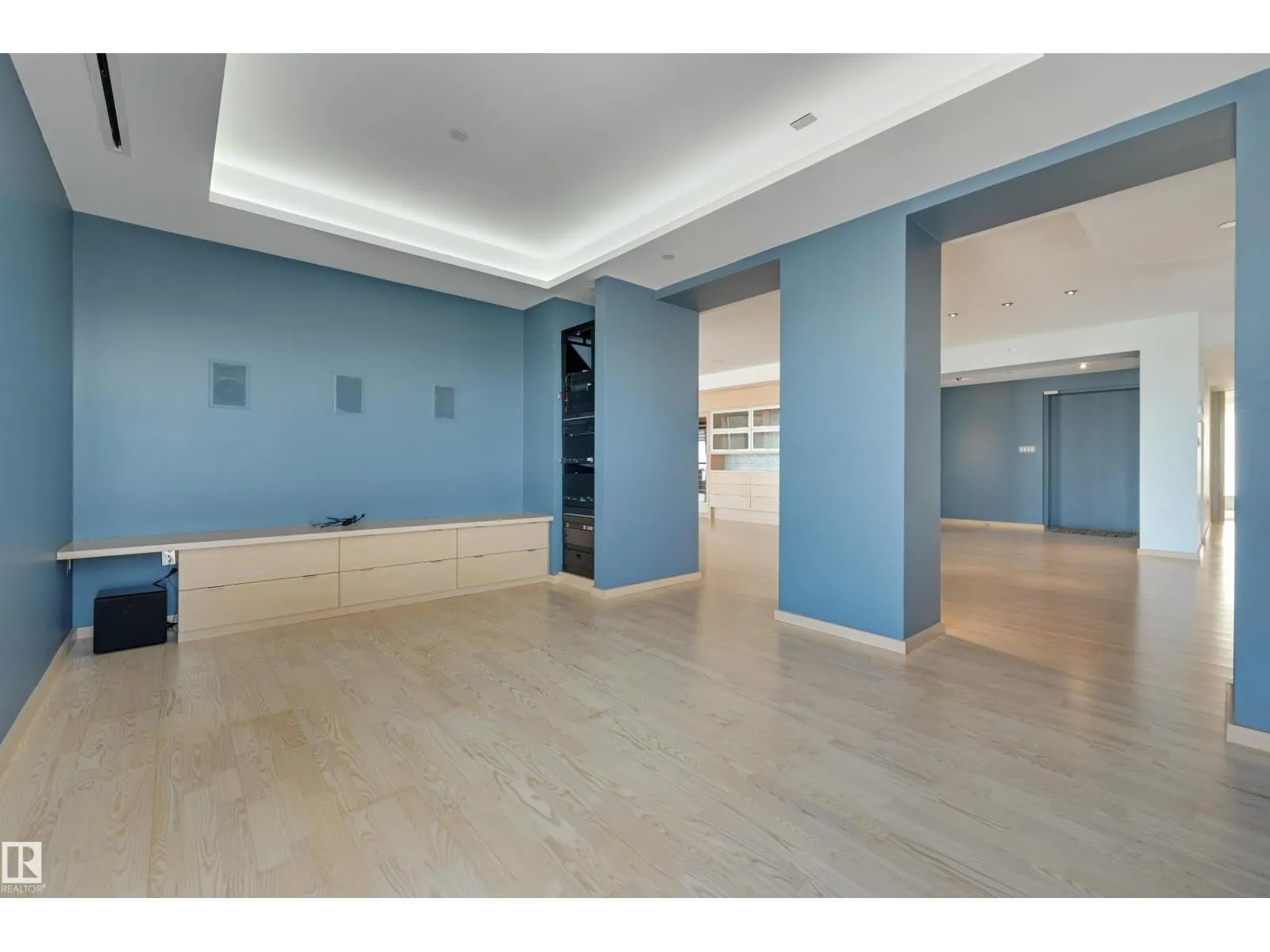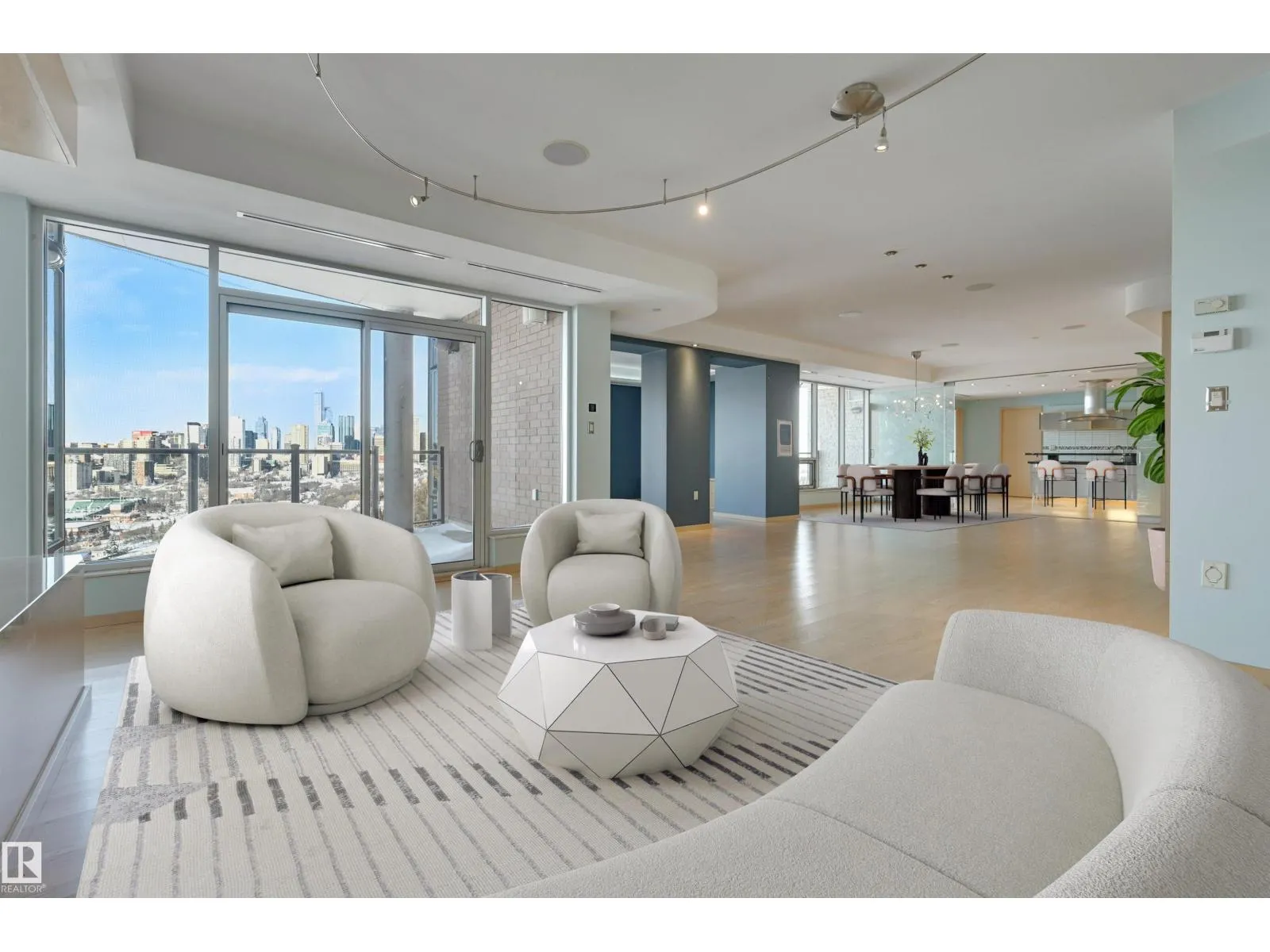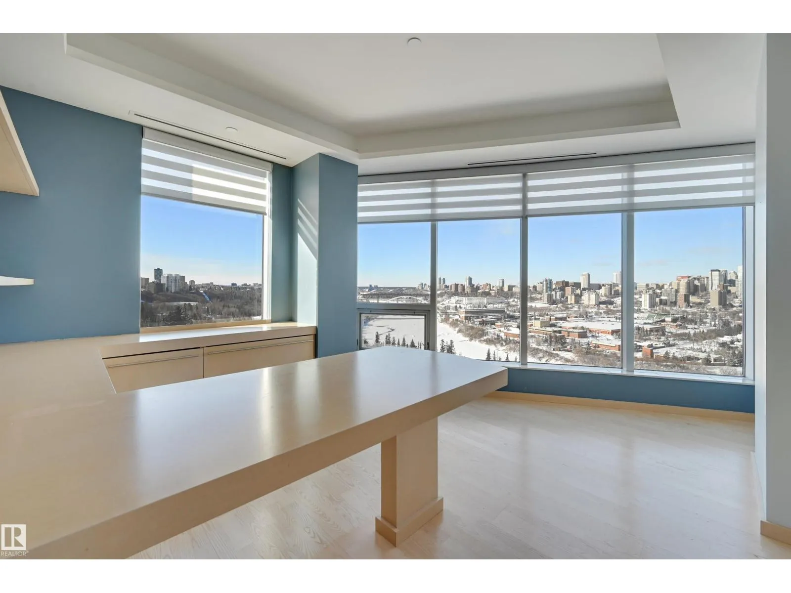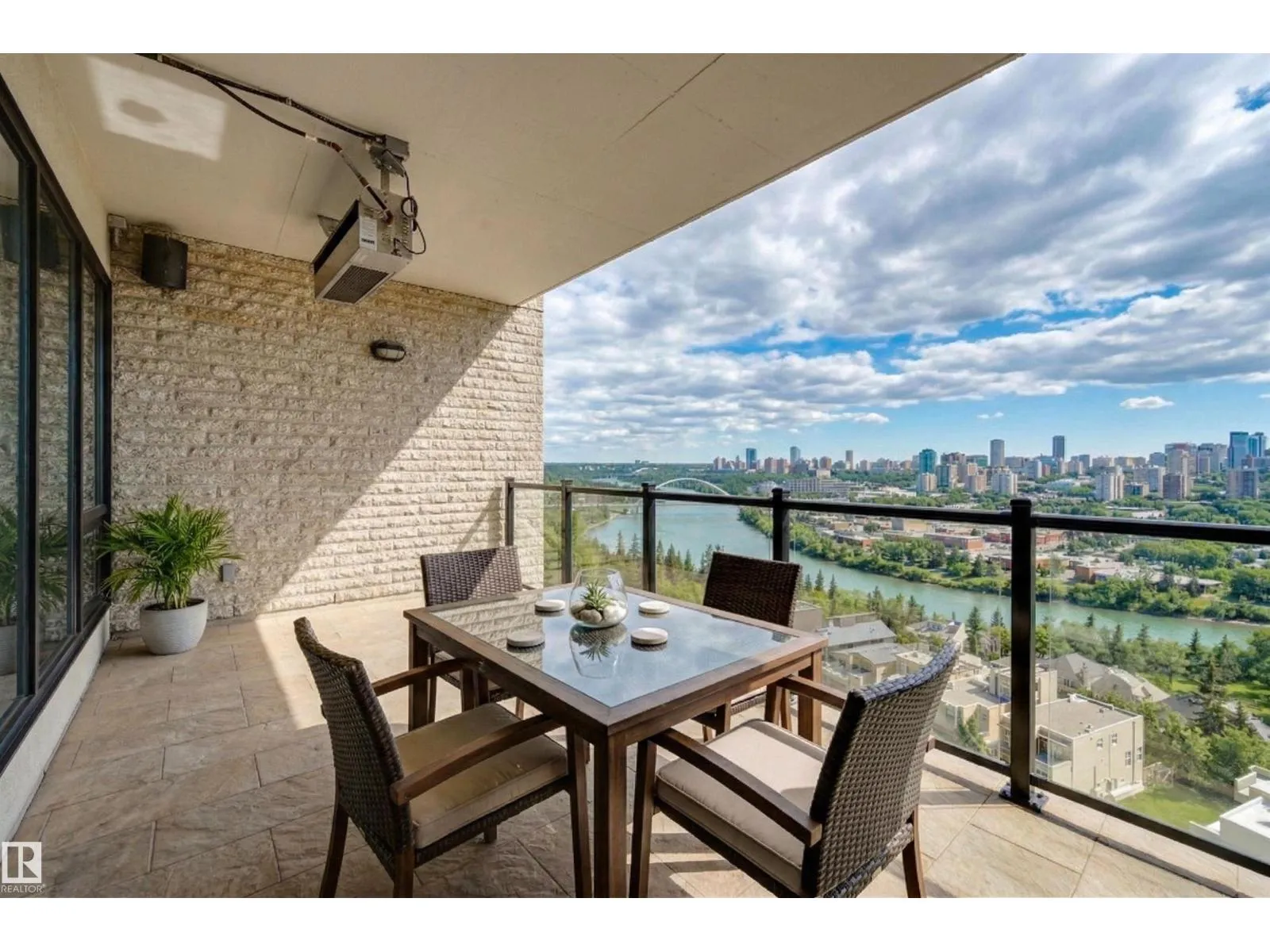 Situated in the prestigious One River Park, this 2,772 sq. ft. residence offers an elegant lifestyle immersed in spectacular River Valley and downtown views. The experience begins as your private elevator opens into a sprawling living space suitable for grand-scale entertaining. The sleek Snaidero kitchen features granite counters and Miele appliances. Host in the spacious dining room, complete with a custom bar and dual Sub-Zero wine fridges, or retreat to one of two balconies to take in the jaw-dropping skyline. Each of the three bedrooms is a private sanctuary with a recently renovated ensuite; the primary suite features his-and-her closets with high-end built-ins. A luxurious office and media room add to the sophisticated layout. This immaculate suite is rounded out by a whole-home sound system and a rare, private 4-car garage plus a 5th stall and storage room. Enjoy an on site concierge, guest suite, and fitness studio. A true one-of-a-kind showpiece overlooking the cityâs finest views. (id:27476)