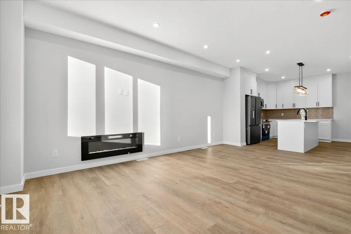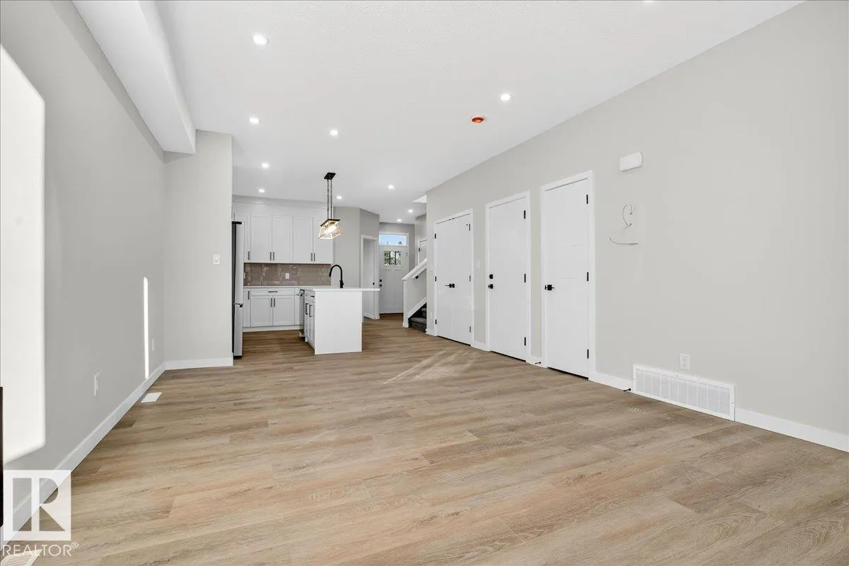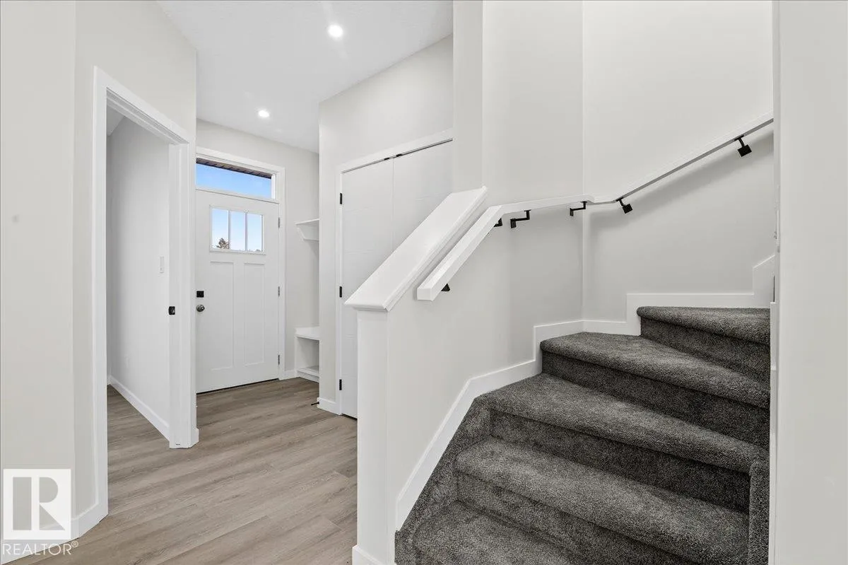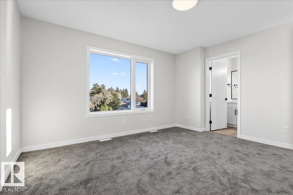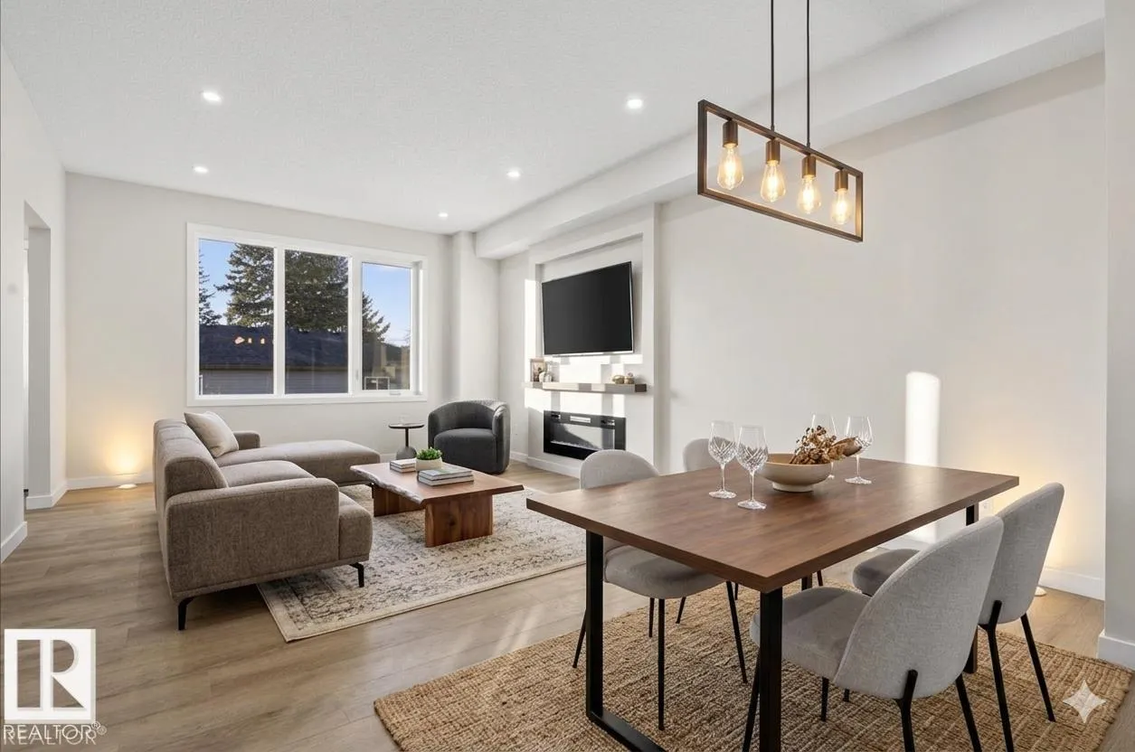 Step inside this well-designed half duplex featuring a bright, open-concept main floor filled with warm natural light from oversized windows. The spacious living room flows seamlessly into the dining area and a modern kitchen with granite countertops, ideal for both daily living and entertaining. A main-floor office offers flexible work or study space, complemented by a convenient 3-piece bath. Upstairs offers 3 generous bedrooms, including a beautiful primary suite with a relaxing 5-piece ensuite, plus an additional full bath and upper-level laundry for added comfort. With 9-ft ceilings and a grand above-ground entrance, the home feels open and sophisticated. Enjoy peaceful views of Dr. Anne Anderson Park directly across the street, along with a separate side entrance providing excellent potential for future basement development. Ideally located close to shopping with quick access to Downtown Edmonton. (2 photos are virtually staged) (id:27476)