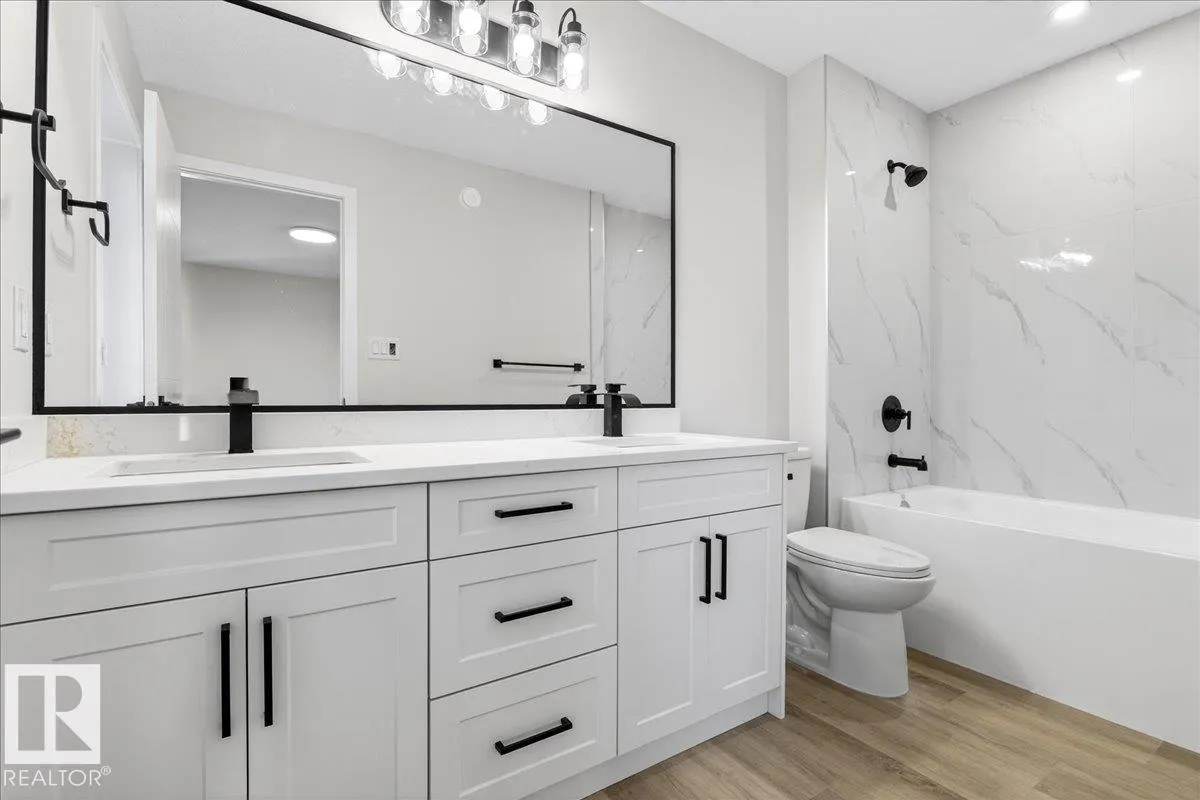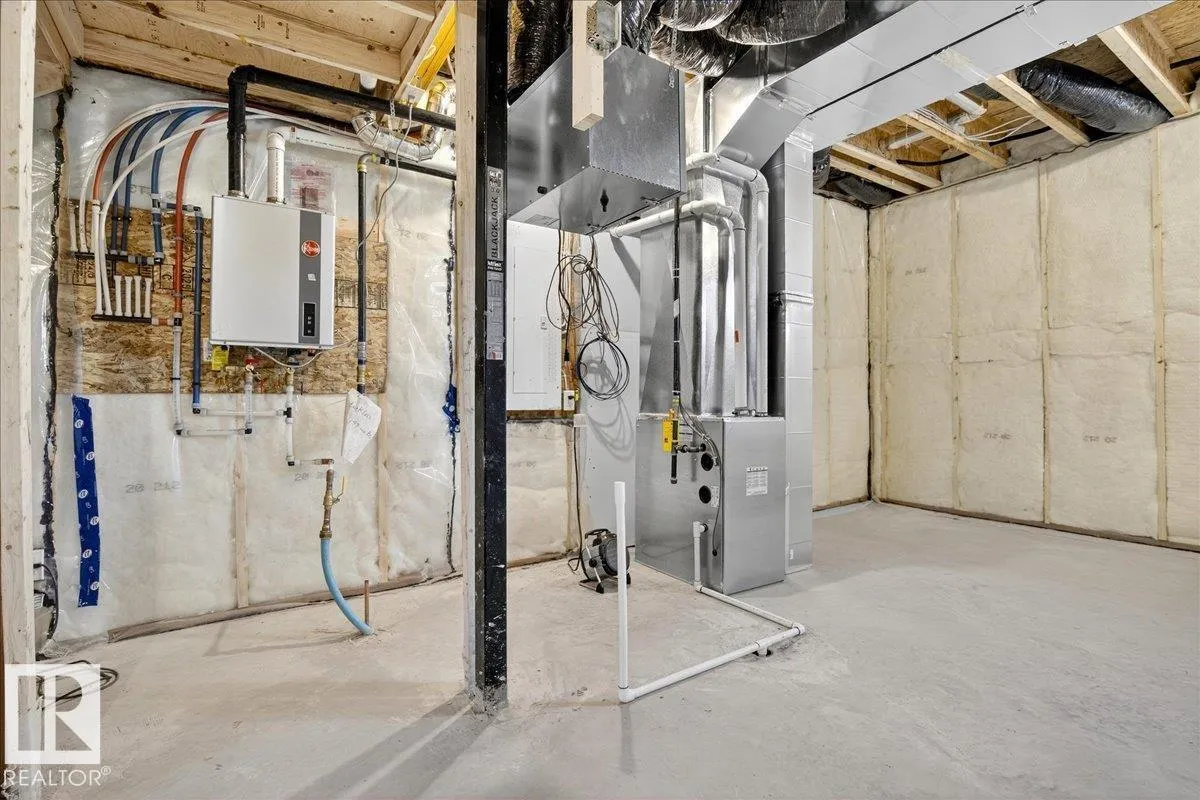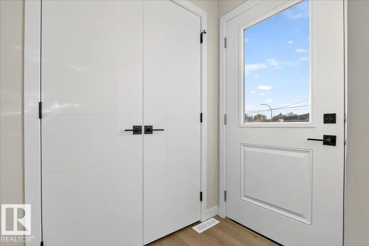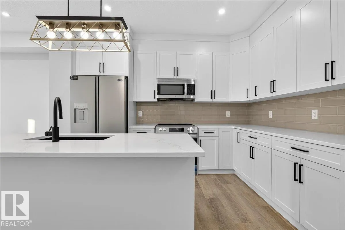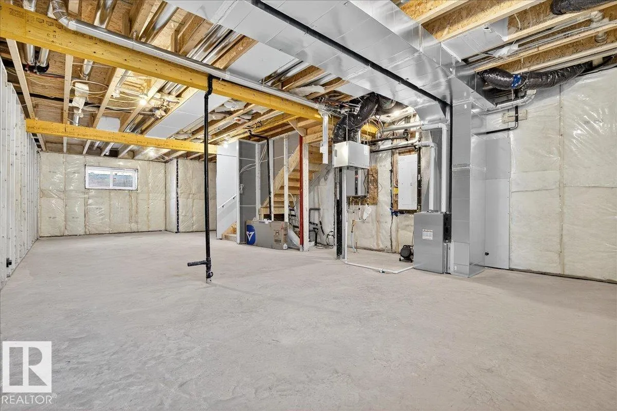 Step inside this well-designed half duplex featuring a bright, open-concept main floor filled with warm natural light from oversized windows. The spacious living room flows seamlessly into the dining area and a modern kitchen with granite countertops, ideal for both daily living and entertaining. A main-floor office offers flexible work or study space, complemented by a convenient 3-piece bath. Upstairs offers 3 generous bedrooms, including a beautiful primary suite with a relaxing 5-piece ensuite, plus an additional full bath and upper-level laundry for added comfort. With 9-ft ceilings and a grand above-ground entrance, the home feels open and sophisticated. Enjoy peaceful views of Dr. Anne Anderson Park directly across the street, along with a separate side entrance providing excellent potential for future basement development. Ideally located close to shopping with quick access to Downtown Edmonton. (2 photos are virtually staged) (id:27476)