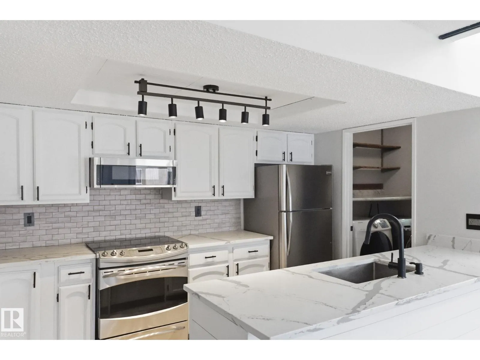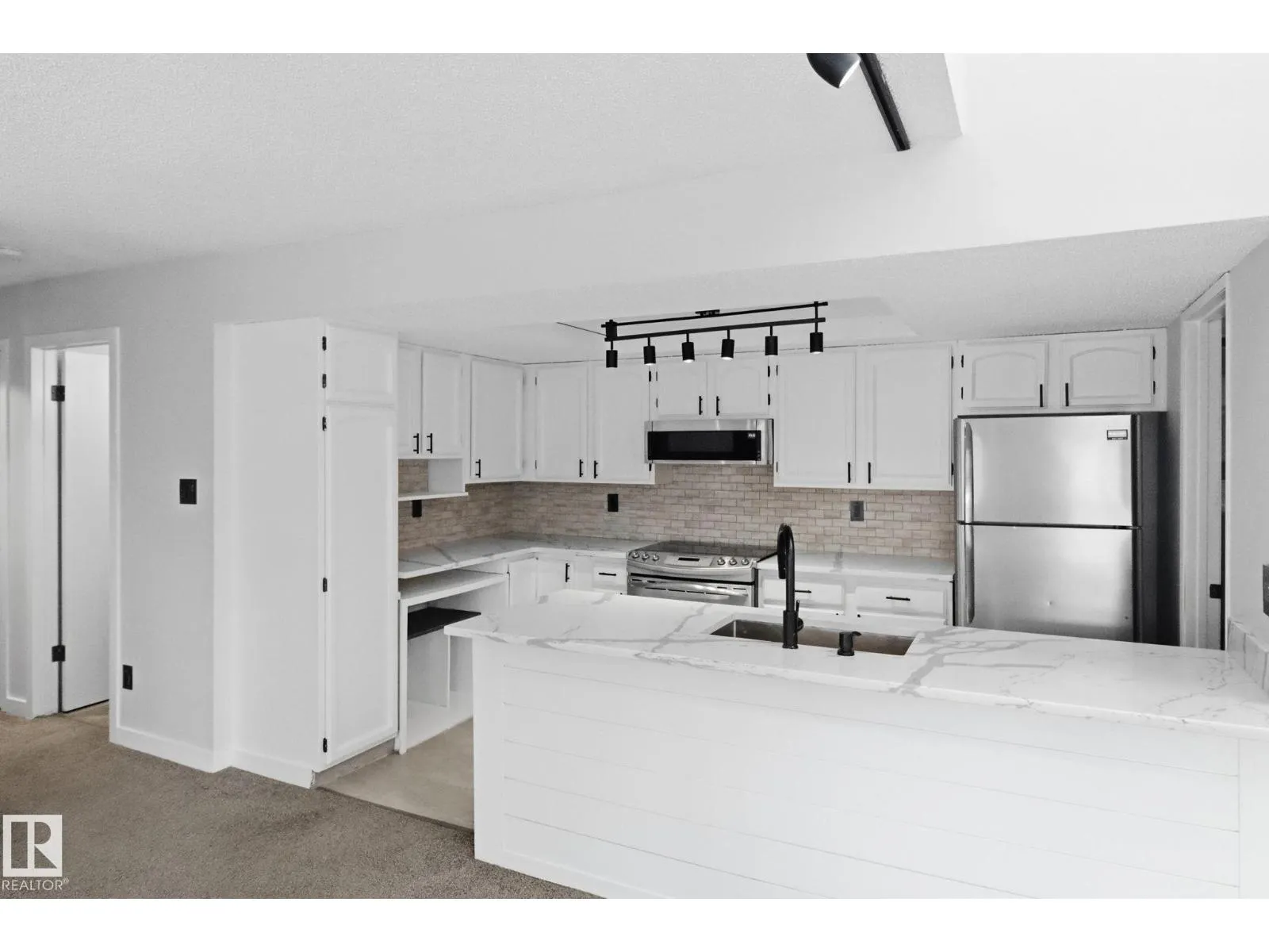 Unique architectural design that offers plenty of growing space, all in the heart of Oliver. Vaulted ceiling and abundance of windows bathing the unit in sunlight throughout the day. 3 large bedrooms, plenty of storage in this top-floor unit with over 1722 ft2 of living space. Inviting foyer has convenient built-in storage bench. French doors open to adjacent bedroom, den or office. Huge livingroom anchored by a Decorative fireplace, side-opening windows. Enclosed sunroom, surrounded by windows, ideal for pets, plants or soaking in the sun. Plenty of room for a large dining room table. White galley kitchen, granite countertop, S/S appliances and undermount sink. Laundry room has extra shelving and adjacent storage room. Porcelain tile flooring in main bath, long vanity sink unmounted in granite top. Bright master bedroom has 3 large windows, room enough for a King-sized bed, large walk-in closet, built-in shelving, relaxing ensuite bath, soaker tub set in granite surround. Unique design that must be seen. (id:27476)