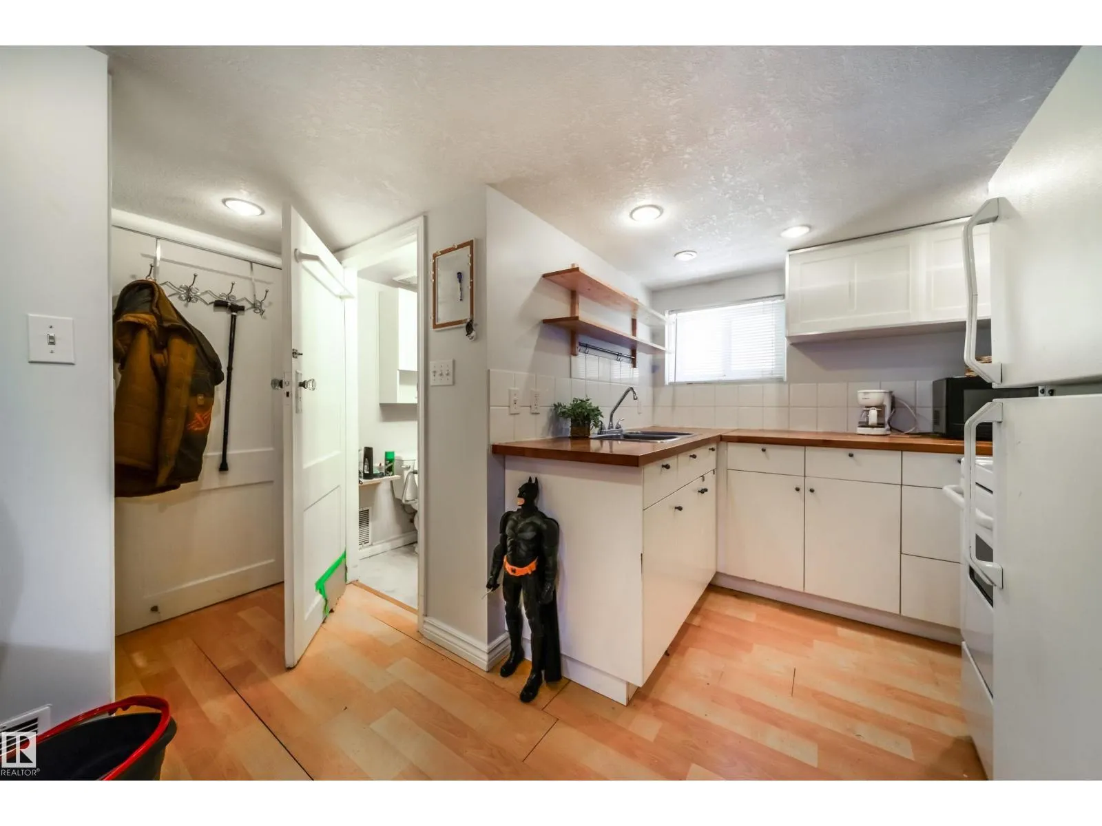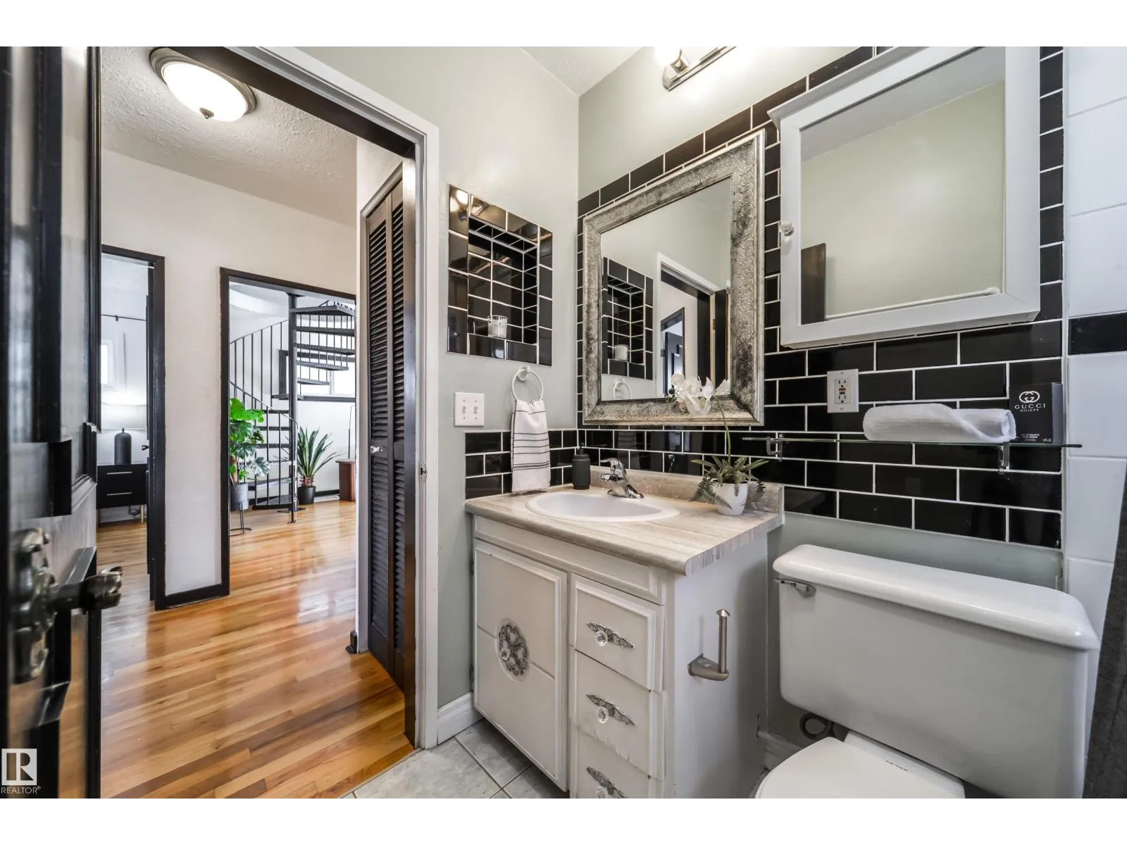 Strathcona Charmer! This property blends character and functionality, featuring a spacious front entryway, unique finishes, hardwood floors, updated vinyl windows allowing plenty of natural light throughout. This 1945 1 1/2 Story Home will check all the boxes! Main floor was thoughtfully designed for everyday living and entertaining friends and family alike. 2 spacious bedrooms with ample closet space share a 4 piece bath. An amazing cast iron staircase leads to the upper story loft bedroom /flex room, perfect for a home office, reading nook, or creative space. The fully permitted basement suite provides excellent flexibility â ideal for extended family, guests, or valuable rental income potential. A rare opportunity to own a home that combines charm, versatility, and smart investment appeal. Close to schools, U of A, Easy Commute to Downtown and just steps to Milk Creek Ravine, Mill Creek Pool & Whyte Ave! (id:27476)