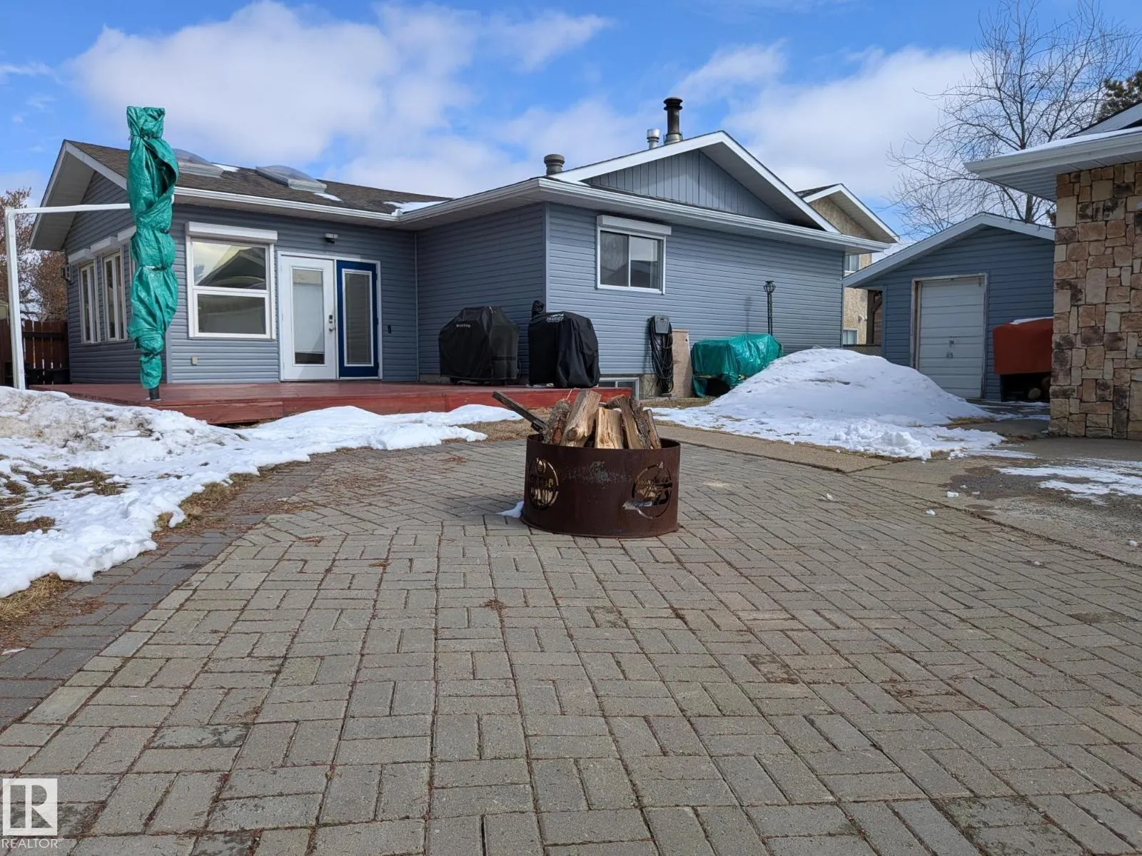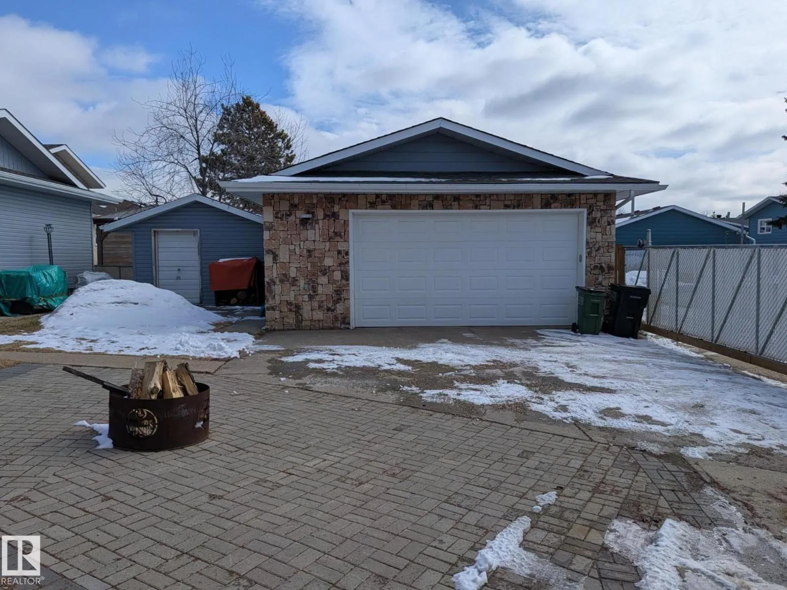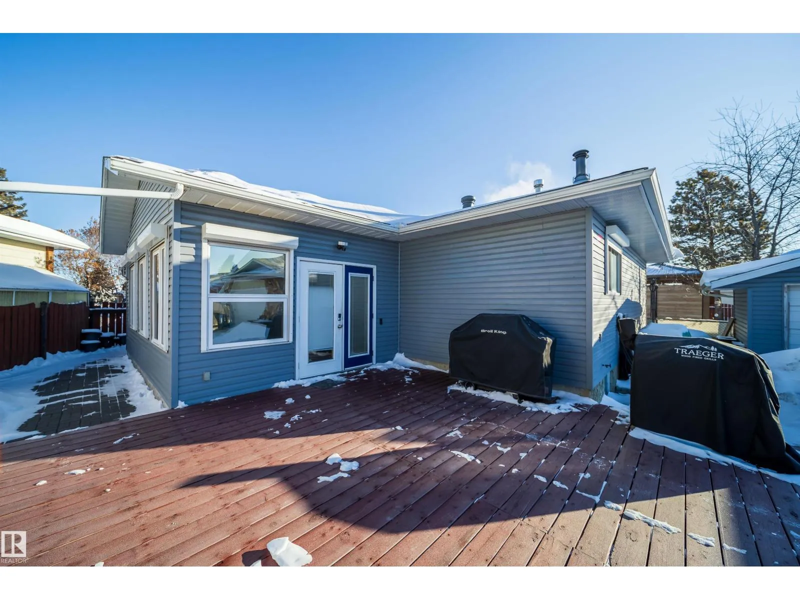This 4 BED, 3 BATH BUNGALOW is on a quiet street, has OVER 2500 SqFt of living space and a LARGE BACK YARD! Walking distance to MENISA Elementary and Park. The spacious living room is cozy with a gas fireplace and large bay window. Tons of oak cabinets, counter space and quality GE + BOSCH appliances in the kitchen, plus a breakfast nook and formal dining room. The ALL-SEASON SUNROOM is bright with tons of windows and skylights, and warmed by another gas fireplace. 3 generous bedrooms upstairs, with built-in closets, and the primary with 2pc ensuite bath. A huge recreation room downstairs with wood fireplace, 4th bedroom, bath with large shower, laundry room, tons of storage and potential for 5TH BEDROOM. The SOUTH FACING BACKYARD is perfect for entertaining with a large deck, patio stone and firepit. RV parking and a O/S DBL DETACHED HEATED GARAGE, plus storage shed. Upgrades include a newer roof, deck, A/C, privacy windows and roll shutters. Close to parks and schools and easy access to Anthony Henday. (id:27476)