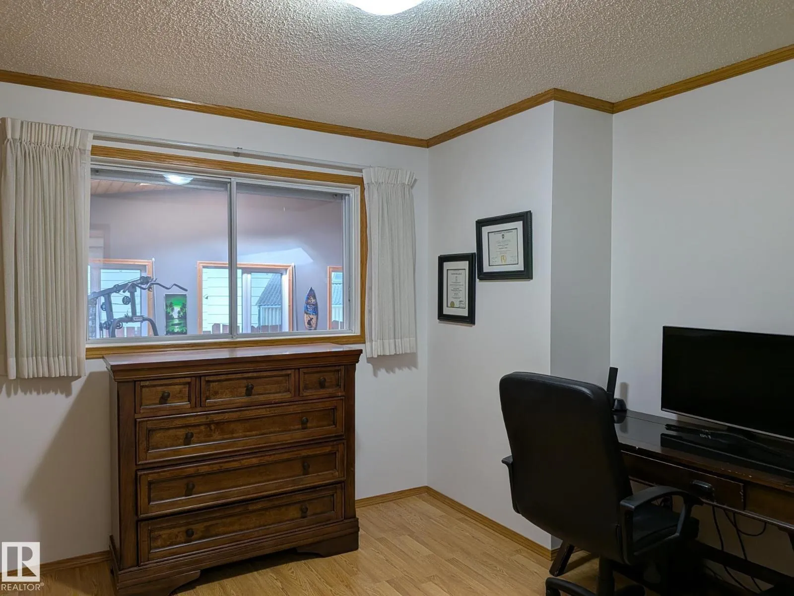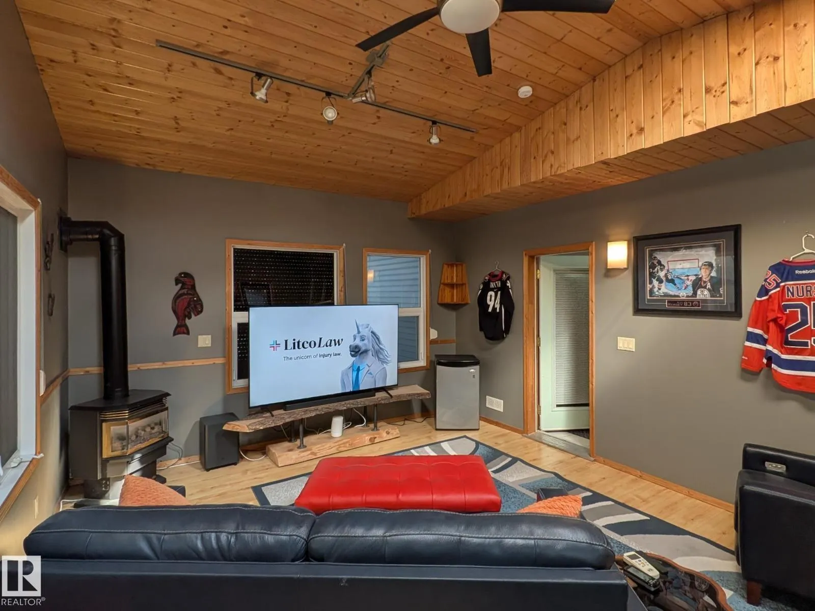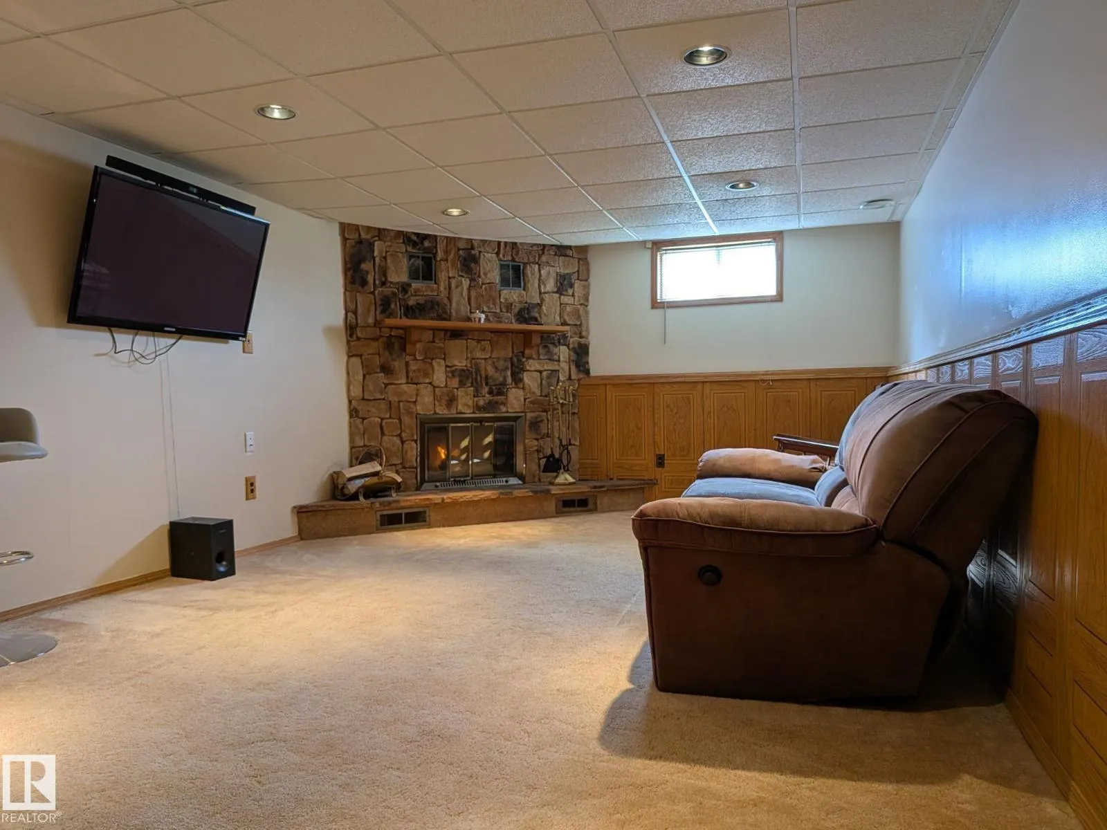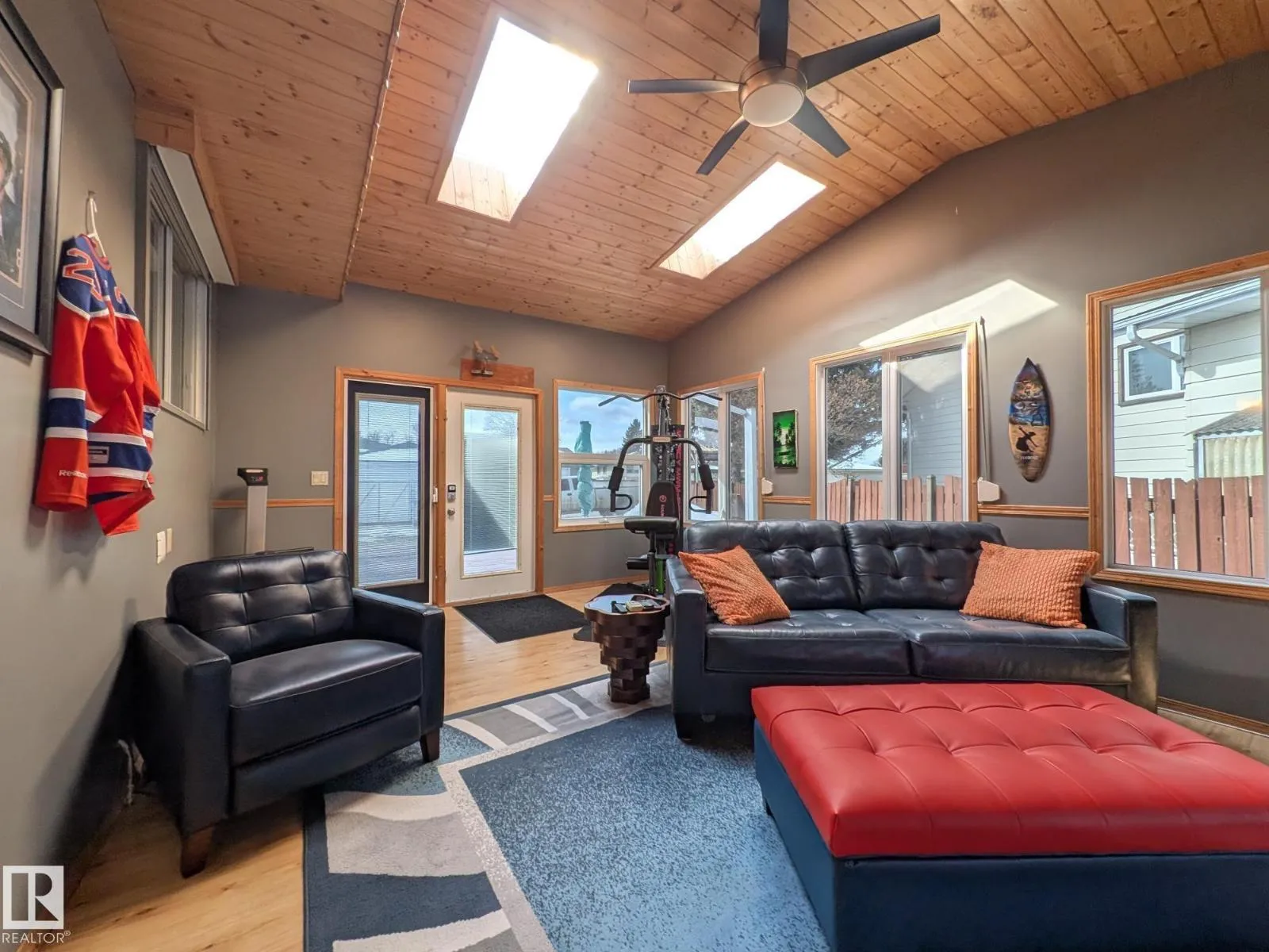 This 4 BED, 3 BATH BUNGALOW is on a quiet street, has OVER 2500 SqFt of living space and a LARGE BACK YARD! Walking distance to MENISA Elementary and Park. The spacious living room is cozy with a gas fireplace and large bay window. Tons of oak cabinets, counter space and quality GE + BOSCH appliances in the kitchen, plus a breakfast nook and formal dining room. The ALL-SEASON SUNROOM is bright with tons of windows and skylights, and warmed by another gas fireplace. 3 generous bedrooms upstairs, with built-in closets, and the primary with 2pc ensuite bath. A huge recreation room downstairs with wood fireplace, 4th bedroom, bath with large shower, laundry room, tons of storage and potential for 5TH BEDROOM. The SOUTH FACING BACKYARD is perfect for entertaining with a large deck, patio stone and firepit. RV parking and a O/S DBL DETACHED HEATED GARAGE, plus storage shed. Upgrades include a newer roof, deck, A/C, privacy windows and roll shutters. Close to parks and schools and easy access to Anthony Henday. (id:27476)
