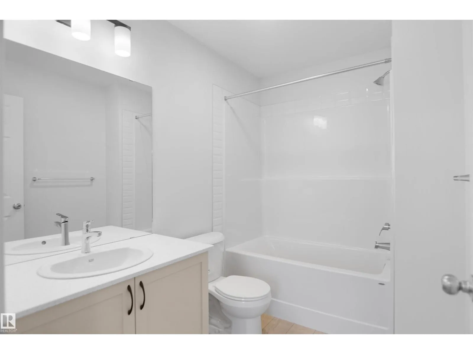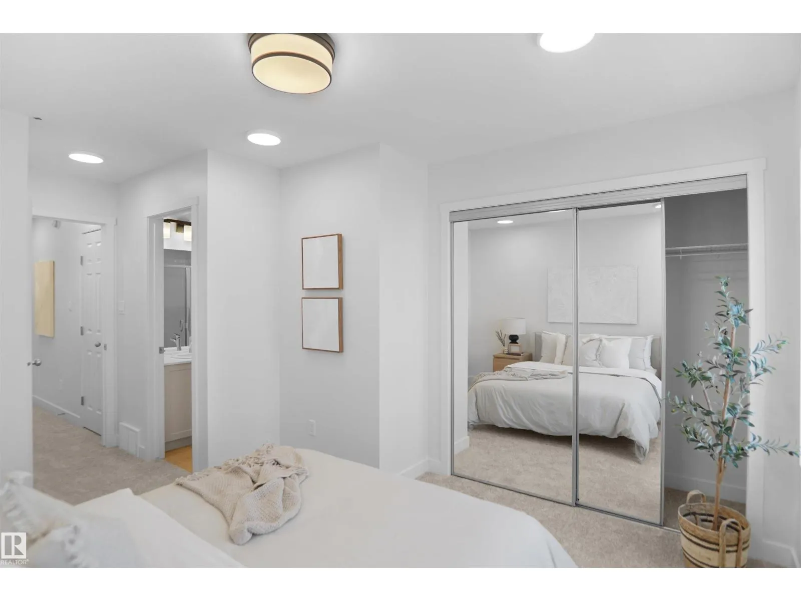 Welcome to this brand new half duplex, the âReimerâ model built by the award-winning Pacesetter Homes, located in one of Edmonton's newest west-end communities of Riverâs Edge. With over 1,280 sq. ft. of thoughtfully designed living space, this home is ideal for a young family or couple looking for modern style and functionality. The main floor features a versatile flex room or 3rd bedroom located conveniently near the garage entrance, complete with a full 3-piece bathroom perfect for guests or a home office setup. Upstairs on the second level, you'll find a contemporary kitchen with upgraded cabinetry, premium countertops, tile backsplash, and luxury vinyl plank flooring flowing seamlessly into the spacious great room, ideal for entertaining. The upper level offers 2 comfortable primary bedrooms and 2 full bathrooms, including a well-appointed primary suite. Additional features include a single oversized attached garage and modern finishes throughout. *** under construction , complete by August 2026 *** (id:27476)