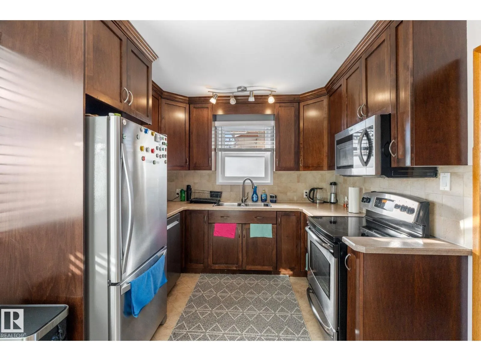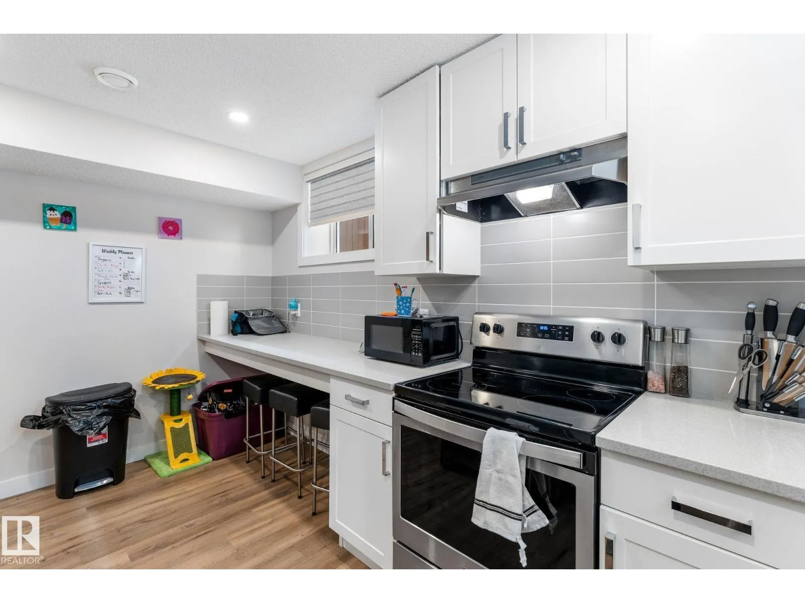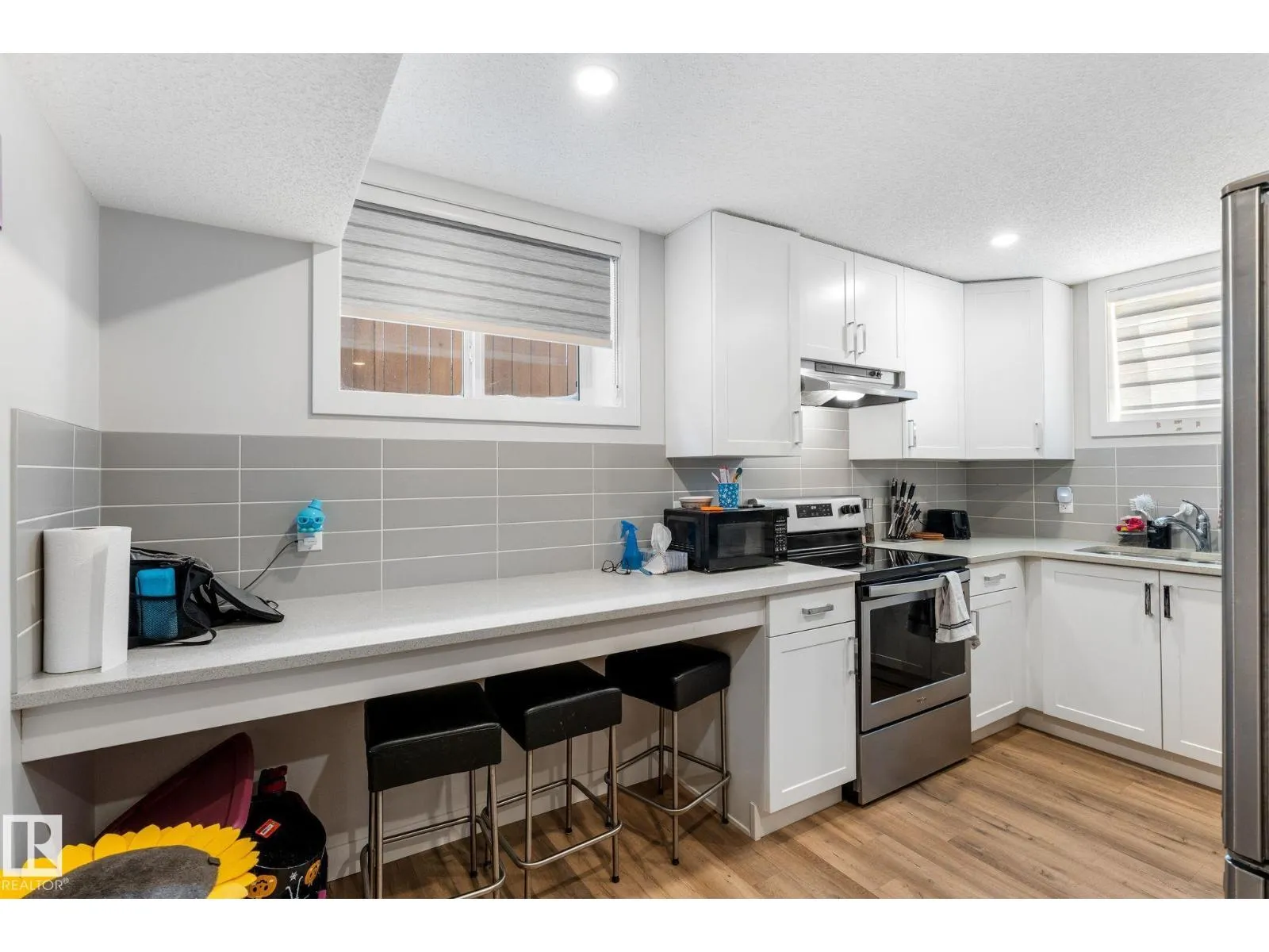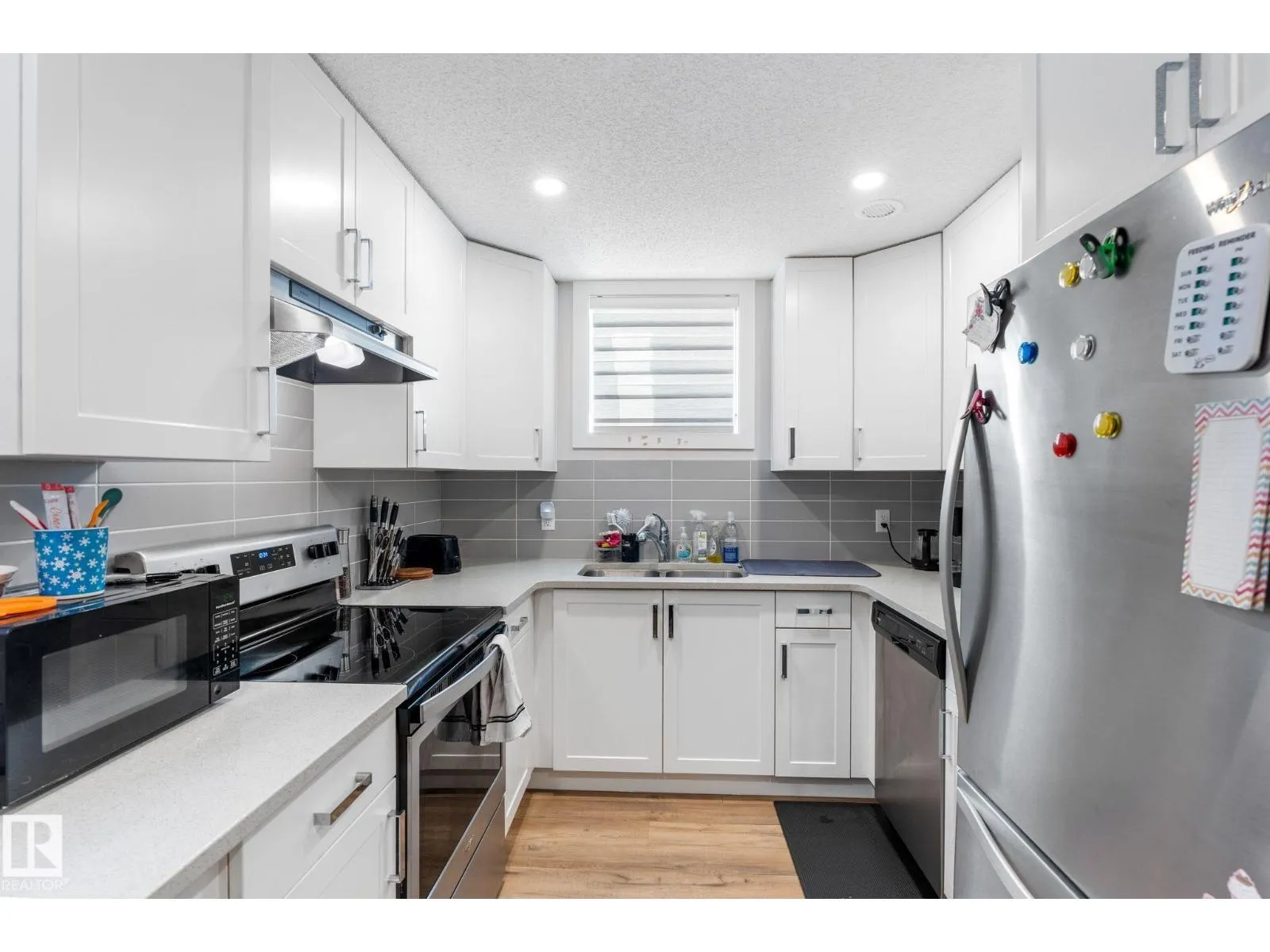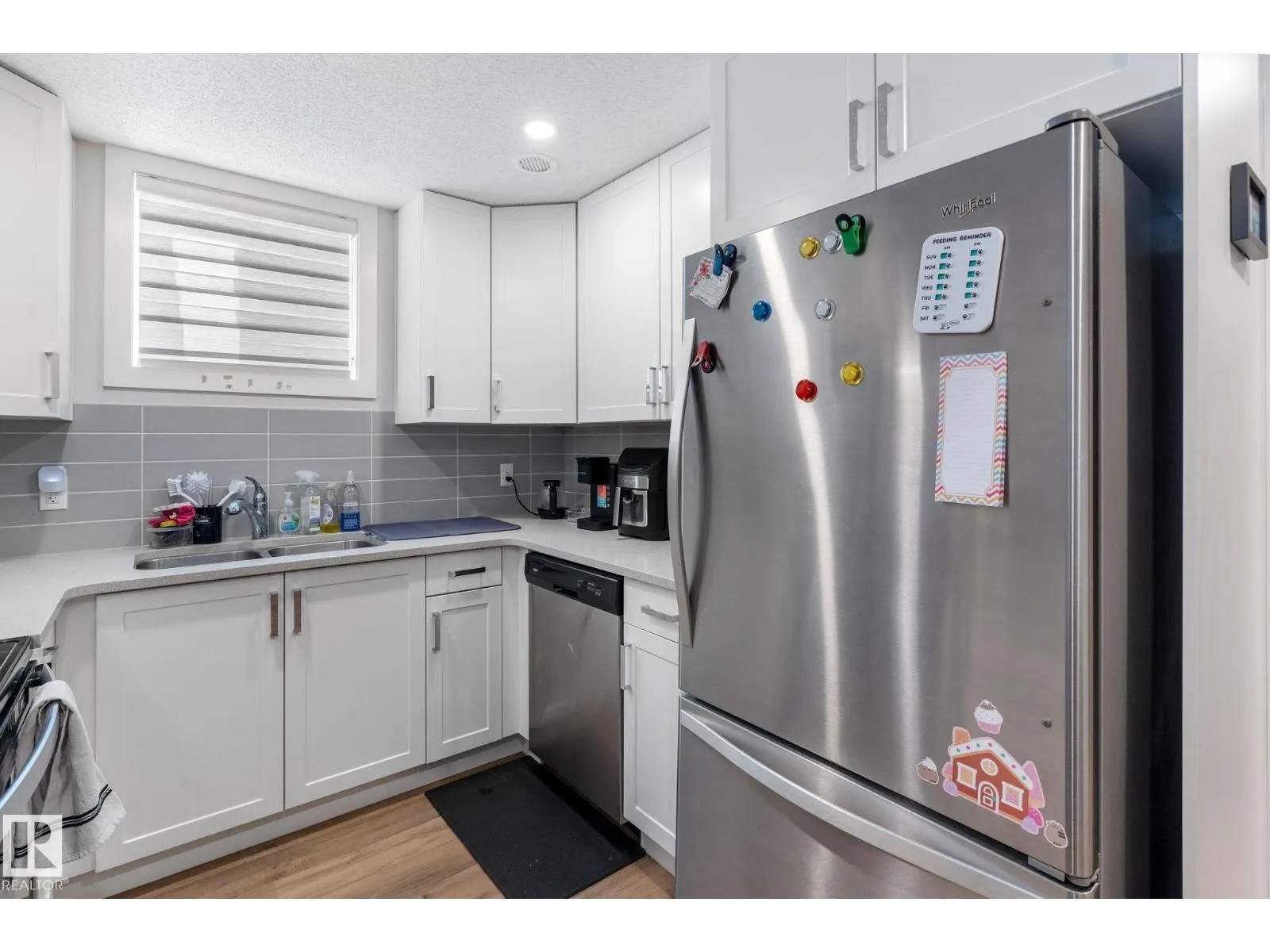 Well maintained bungalow with a legal basement suite offering great flexibility for extended family or rental income. The main floor features a bright living room with large front window, dining area with built in cabinetry, and an updated kitchen with wood cabinets, tile flooring, and newer appliances. There are three bedrooms on the main level along with a renovated full bathroom with soaker tub and stone countertops. Windows and exterior doors were replaced in 2013. The basement suite was professionally developed by Timber Haus in 2019 and includes a white kitchen with quartz counters and eating bar, vinyl plank flooring, two bedrooms including one with walk in closet, and added sound insulation in the ceiling. Additional upgrades include furnaces, electrical, hot water tanks, and 50 year shingles. Oversized double detached garage. Convenient location close to walking trails and amenities. (id:27476)