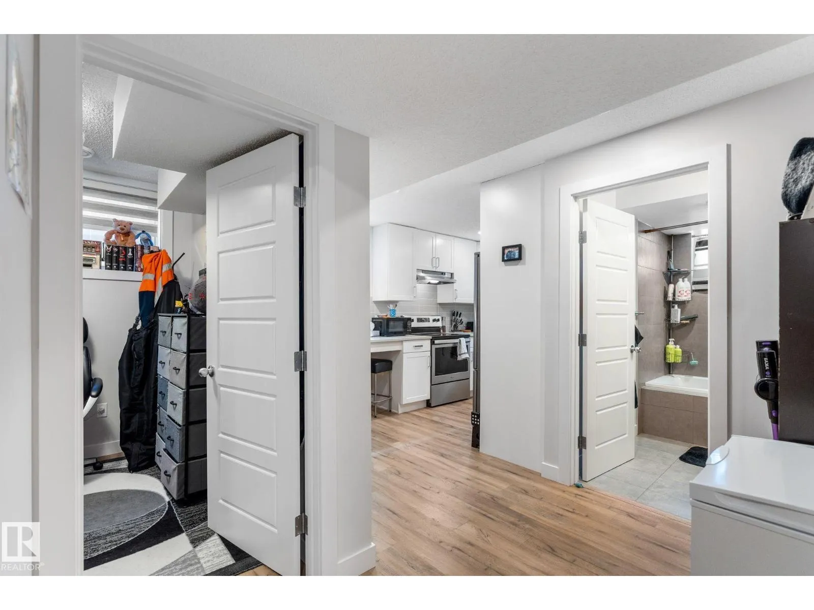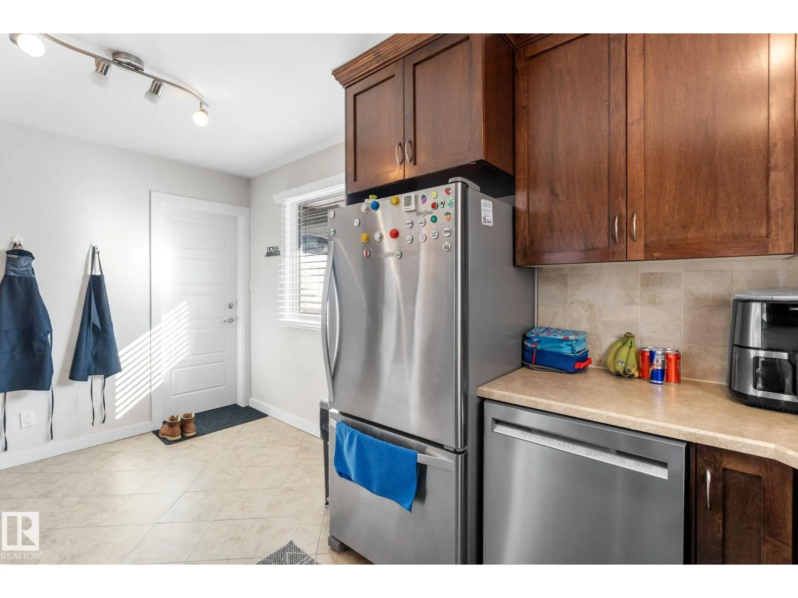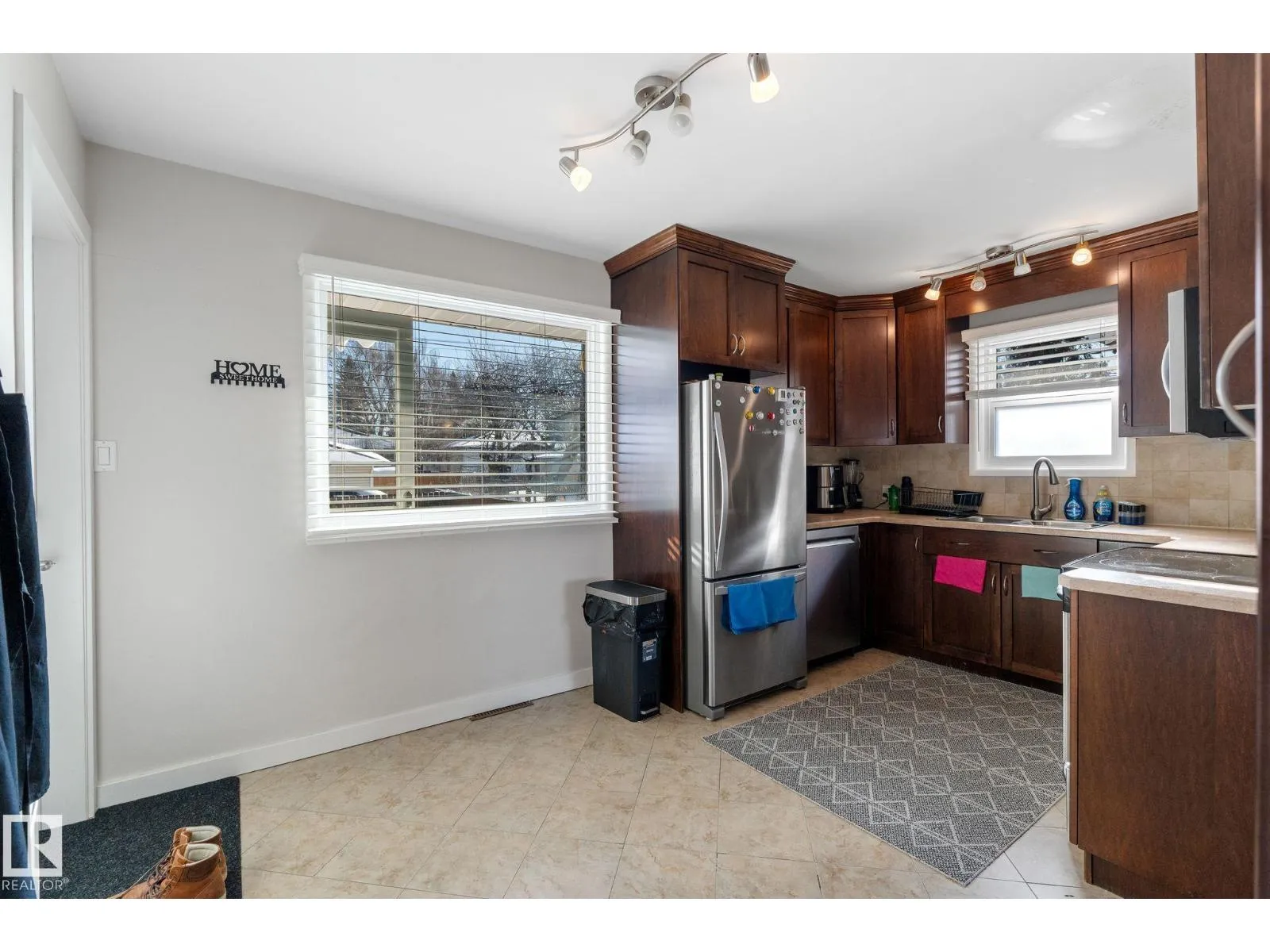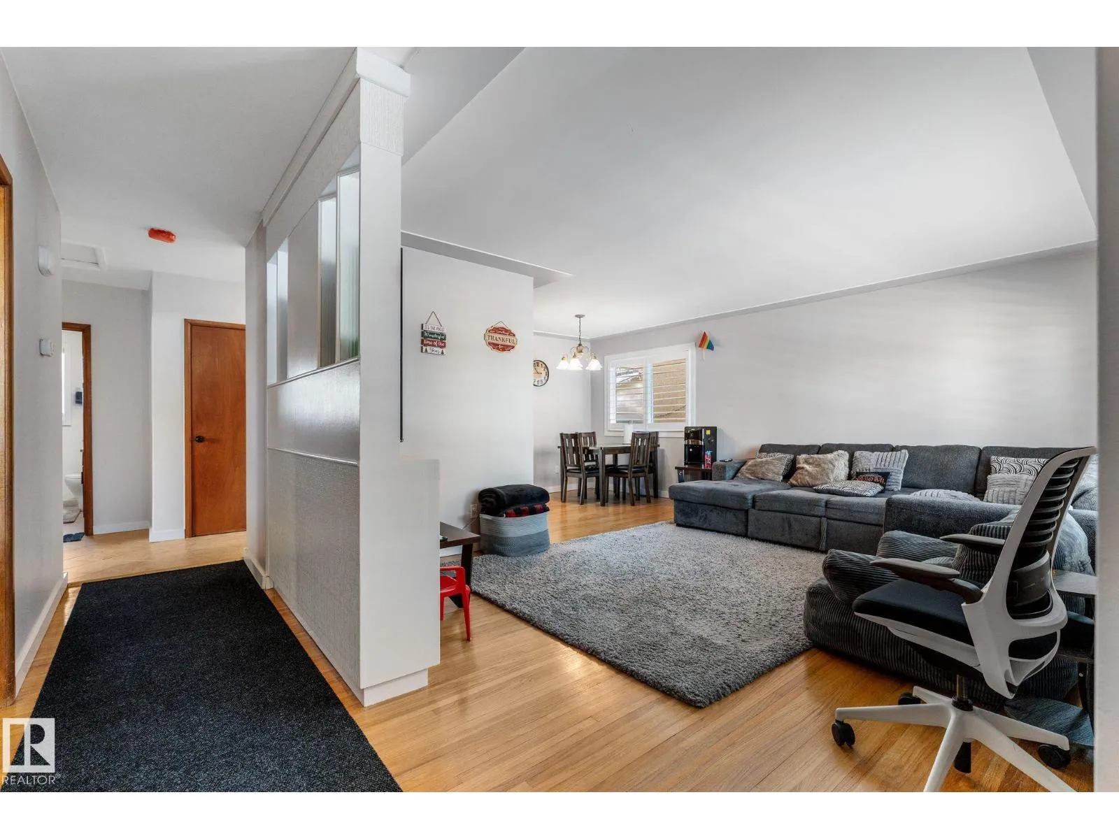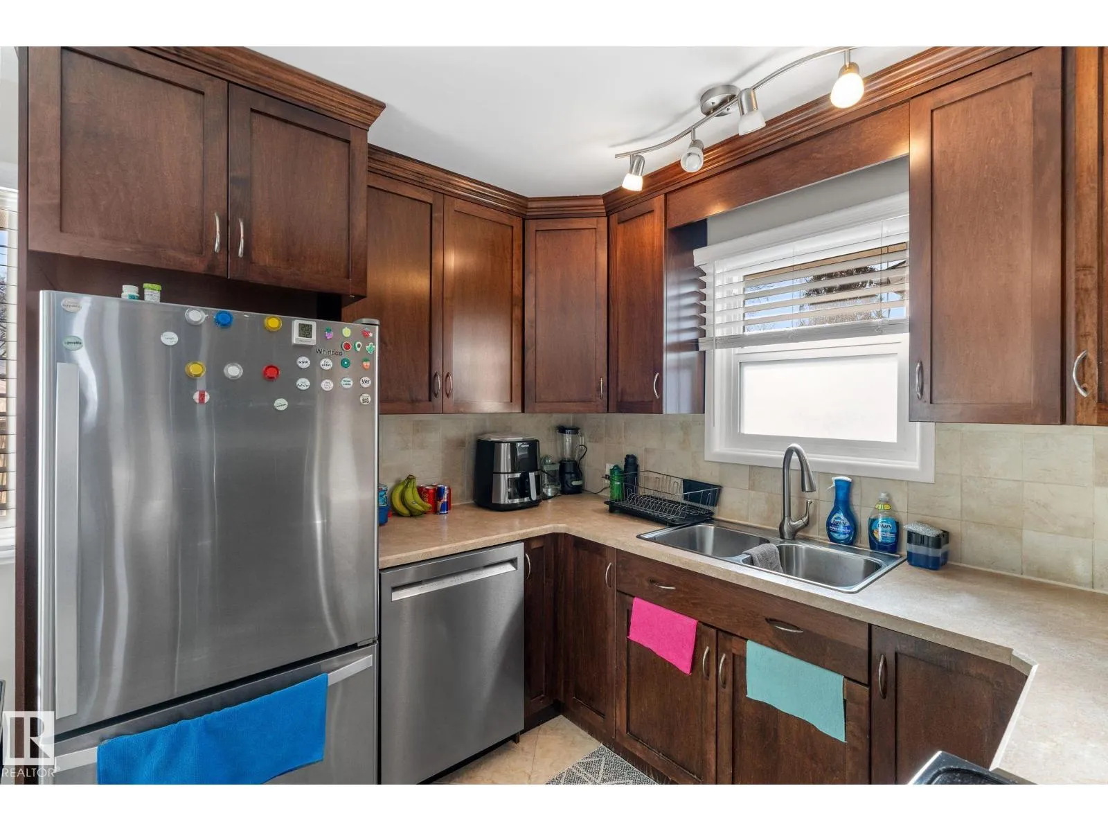 Well maintained bungalow with a legal basement suite offering great flexibility for extended family or rental income. The main floor features a bright living room with large front window, dining area with built in cabinetry, and an updated kitchen with wood cabinets, tile flooring, and newer appliances. There are three bedrooms on the main level along with a renovated full bathroom with soaker tub and stone countertops. Windows and exterior doors were replaced in 2013. The basement suite was professionally developed by Timber Haus in 2019 and includes a white kitchen with quartz counters and eating bar, vinyl plank flooring, two bedrooms including one with walk in closet, and added sound insulation in the ceiling. Additional upgrades include furnaces, electrical, hot water tanks, and 50 year shingles. Oversized double detached garage. Convenient location close to walking trails and amenities. (id:27476)