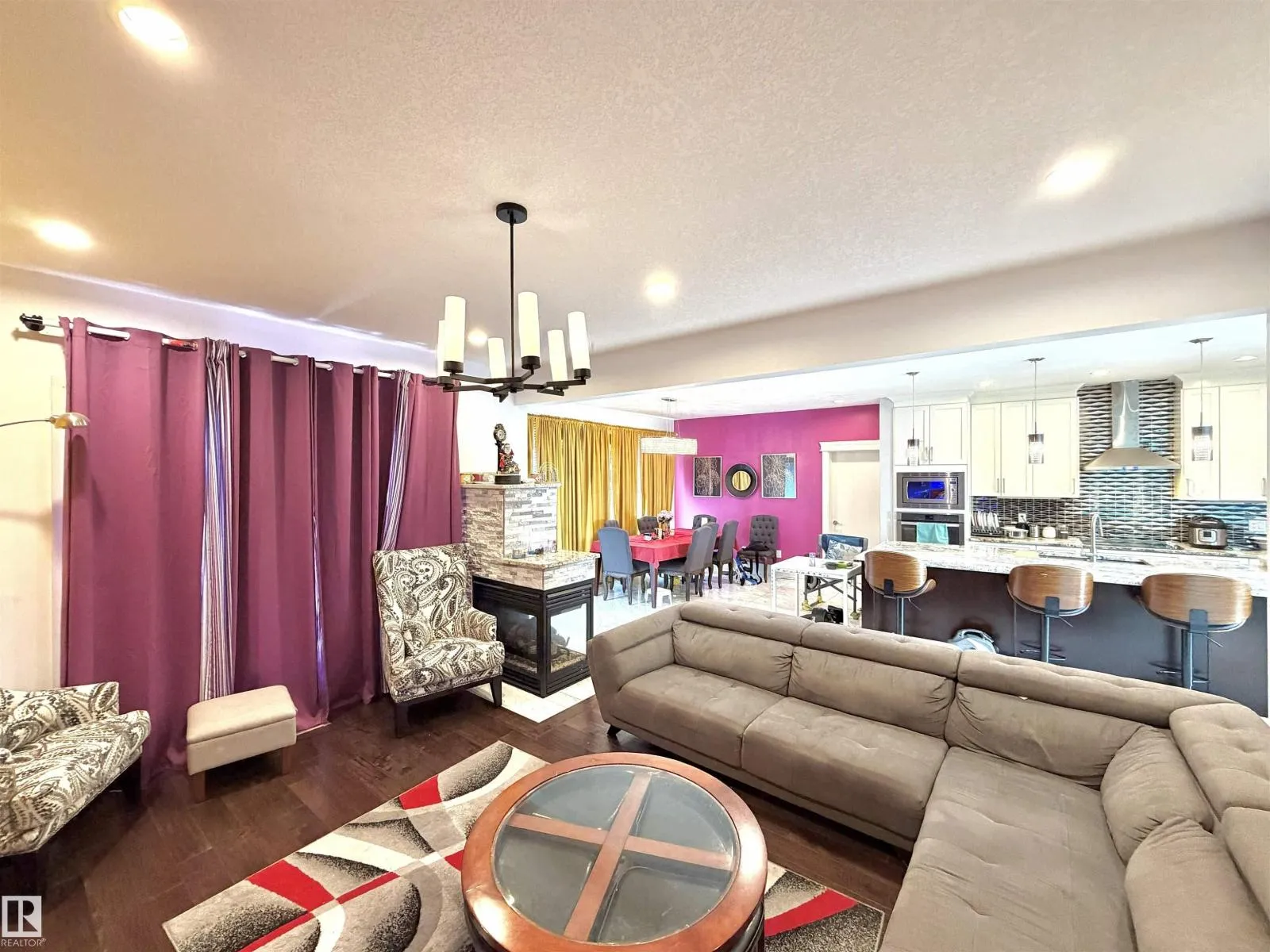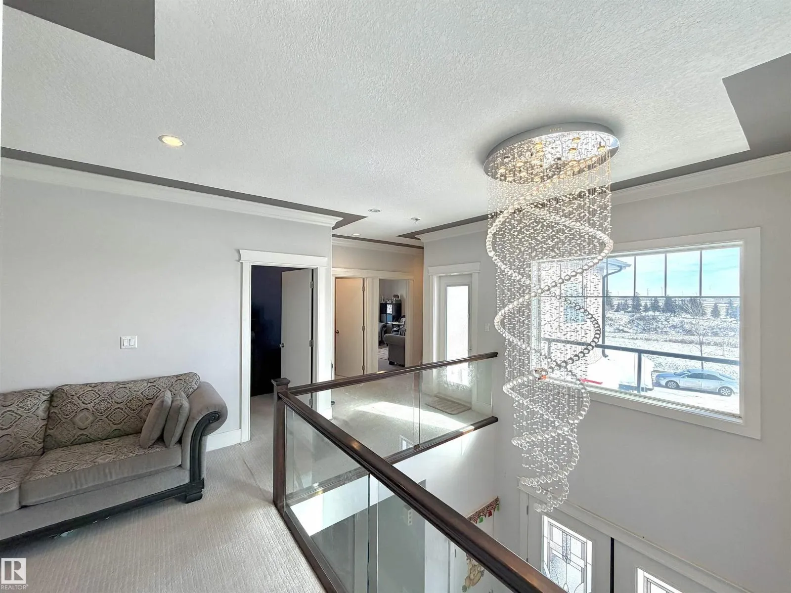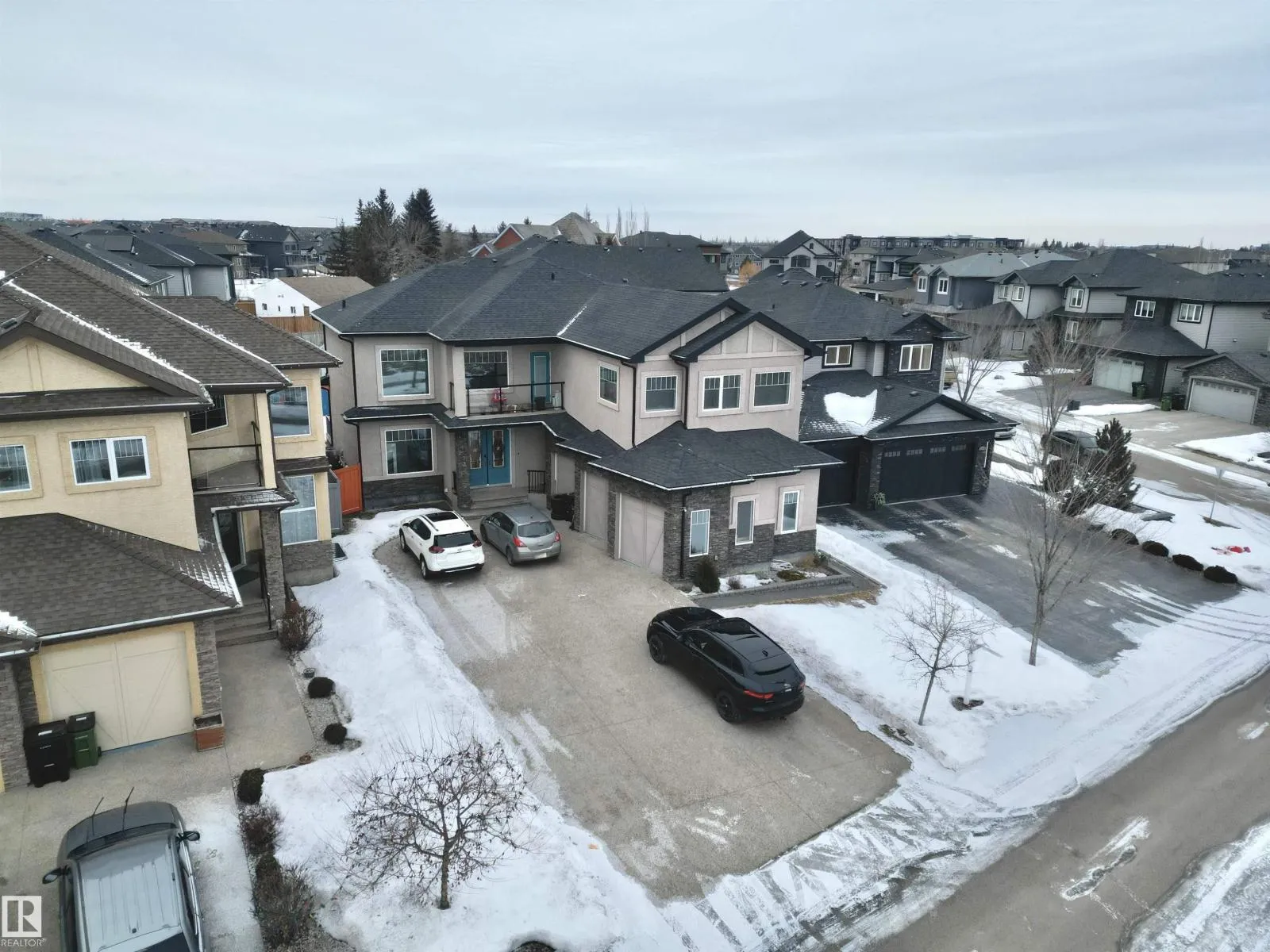 TRIPLE ATTACHED GARAGE | SEPARATE ENTRANCE | 2 FURNACES | CENTRAL A/C. This 3,328 sq ft above-grade home offers exceptional space and functionality. Grand foyer with soaring ceilings, custom tile, upgraded lighting, and glass-railing staircase. Open-concept main floor with spacious living and dining areas featuring a see-through fireplace. Gourmet kitchen includes large granite island, high-gloss cabinetry, stainless steel appliances, and ample storage. Main floor bedroom with 4-pc ensuite plus additional 3-pc bath. Upstairs features bonus room with balcony access, laundry, and 3 spacious bedrooms. The primary retreat boasts a 5-piece spa-inspired ensuite with Jacuzzi tub, standing shower, and custom walk-in closet. Fully finished basement with separate entrance includes kitchen, 3 bedrooms, separate laundry, 4-pc ensuite, and 3-pc bath. Walking distance to ravine trail, close to Kâ9 and high school, the airport, and quick access to Anthony Henday Drive. (id:27476)