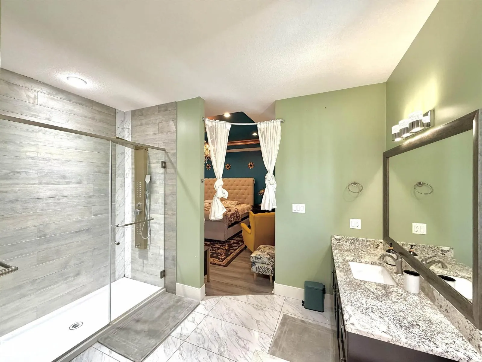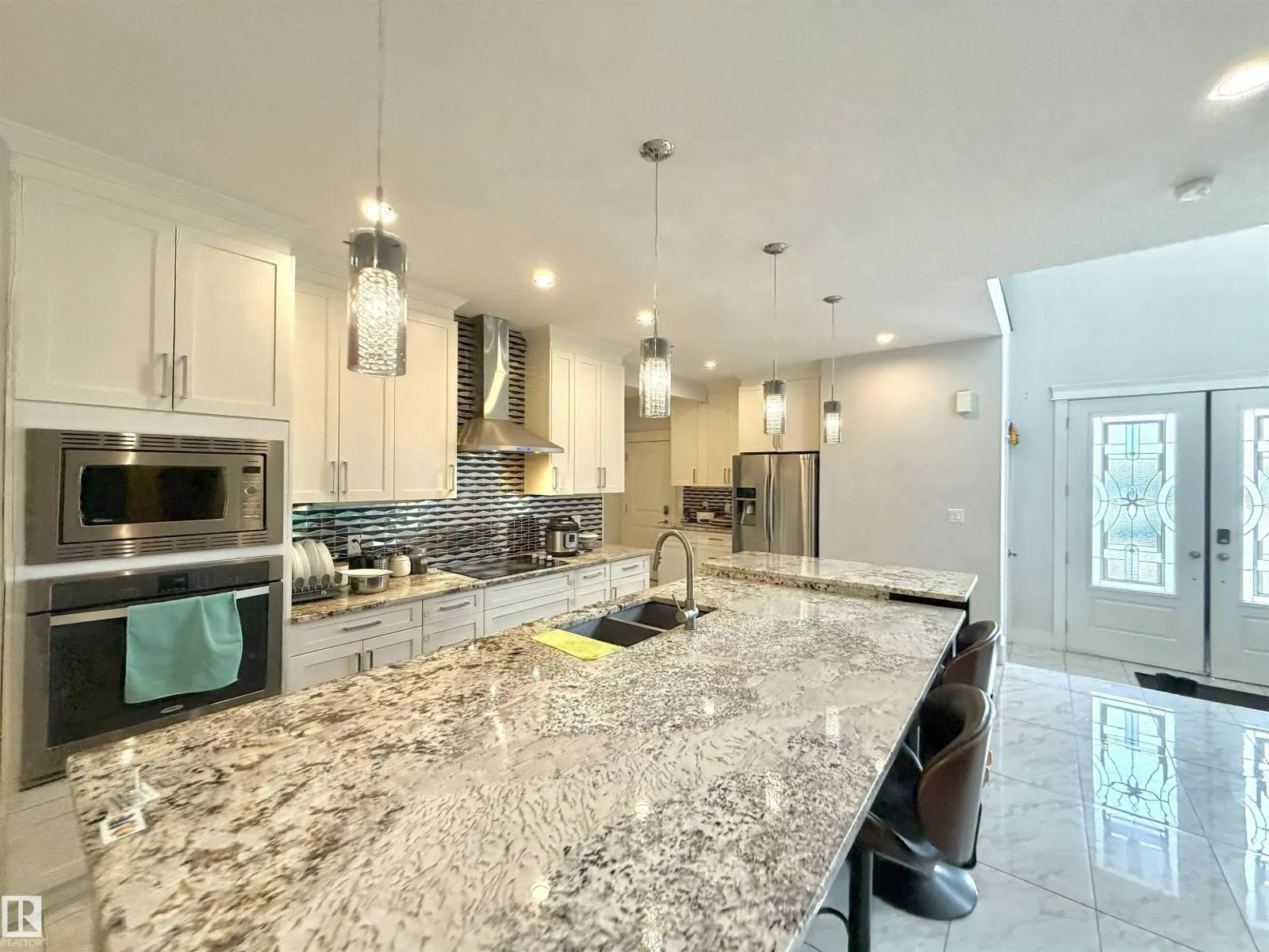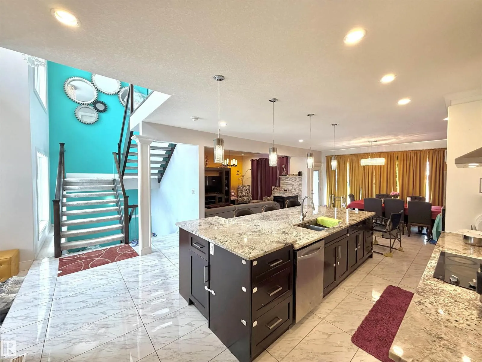 TRIPLE ATTACHED GARAGE | SEPARATE ENTRANCE | 2 FURNACES | CENTRAL A/C. This 3,328 sq ft above-grade home offers exceptional space and functionality. Grand foyer with soaring ceilings, custom tile, upgraded lighting, and glass-railing staircase. Open-concept main floor with spacious living and dining areas featuring a see-through fireplace. Gourmet kitchen includes large granite island, high-gloss cabinetry, stainless steel appliances, and ample storage. Main floor bedroom with 4-pc ensuite plus additional 3-pc bath. Upstairs features bonus room with balcony access, laundry, and 3 spacious bedrooms. The primary retreat boasts a 5-piece spa-inspired ensuite with Jacuzzi tub, standing shower, and custom walk-in closet. Fully finished basement with separate entrance includes kitchen, 3 bedrooms, separate laundry, 4-pc ensuite, and 3-pc bath. Walking distance to ravine trail, close to Kâ9 and high school, the airport, and quick access to Anthony Henday Drive. (id:27476)