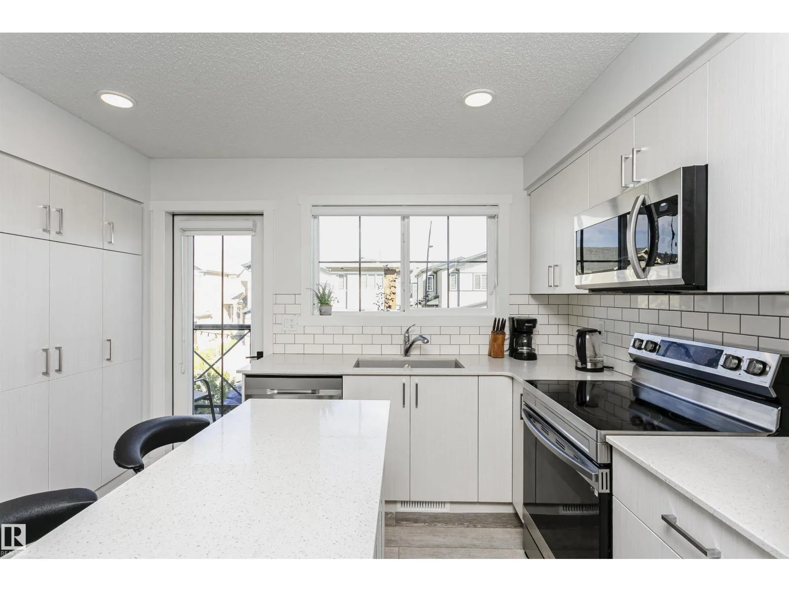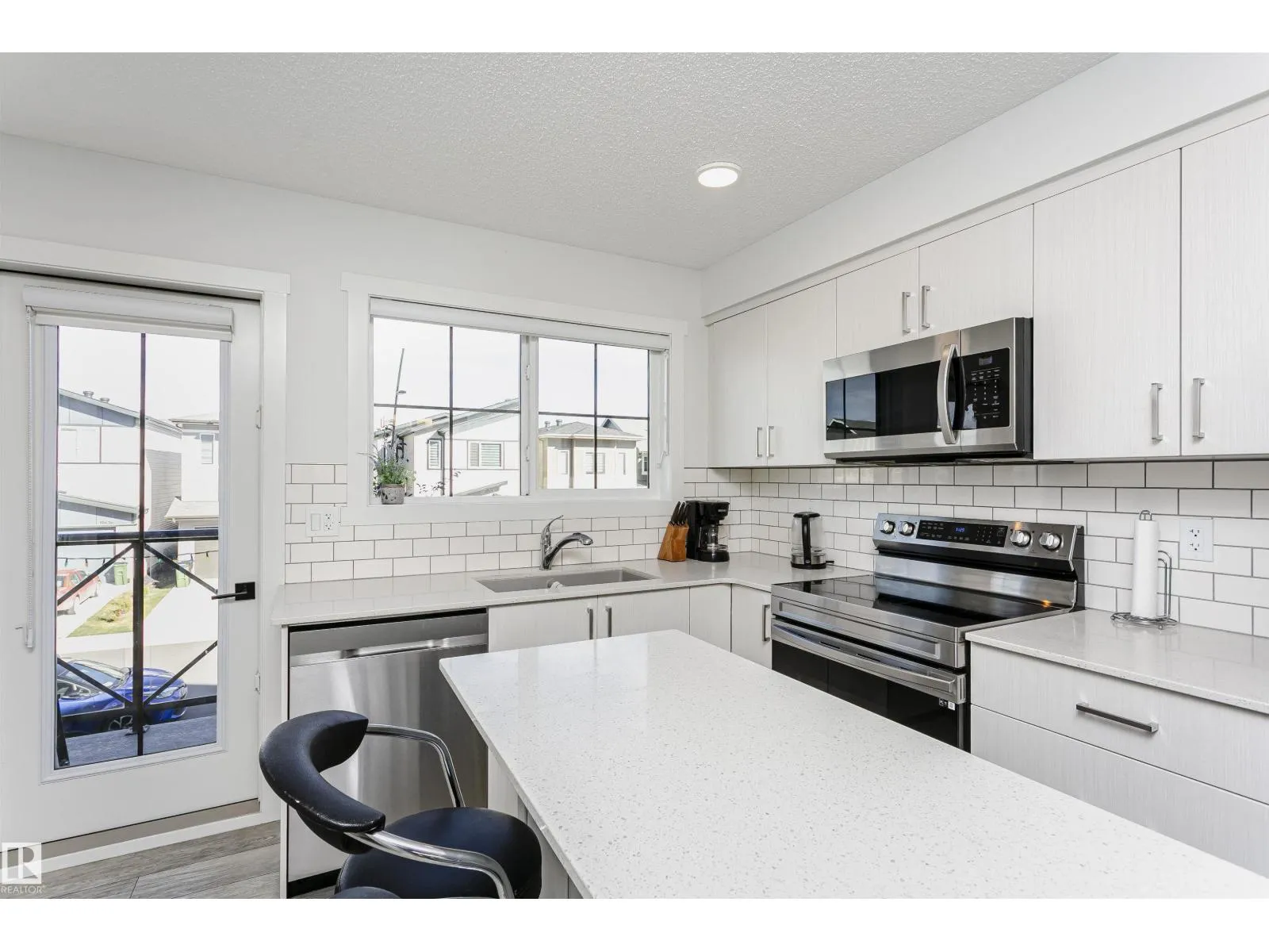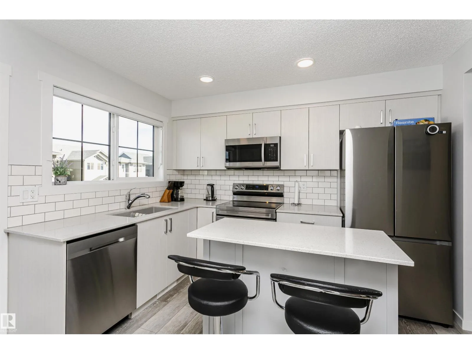 Discover the perfect blend of style, space, and convenience in this stunning END-UNIT townhouse located in a vibrant Southwest Edmonton community. The lower-level DEN offers ideal space for a home office, playroom, or guest area. An OVERSIZED ATTACHED GARAGE provides ample parking and storage, plus a convenient half bath. The open-concept second floor features a modern kitchen with sleek countertops, stainless steel appliances, and generous cabinetry flowing into bright living and dining areas. Upstairs includes TWO FULL BATHROOMS, including a private ENSUITE for the primary bedroom, and a spacious second bedroom. Enjoy NO CONDO FEES, full landscaping, and a CONCRETE PATIO â perfect for first-time buyers, downsizers, or investors. (id:27476)