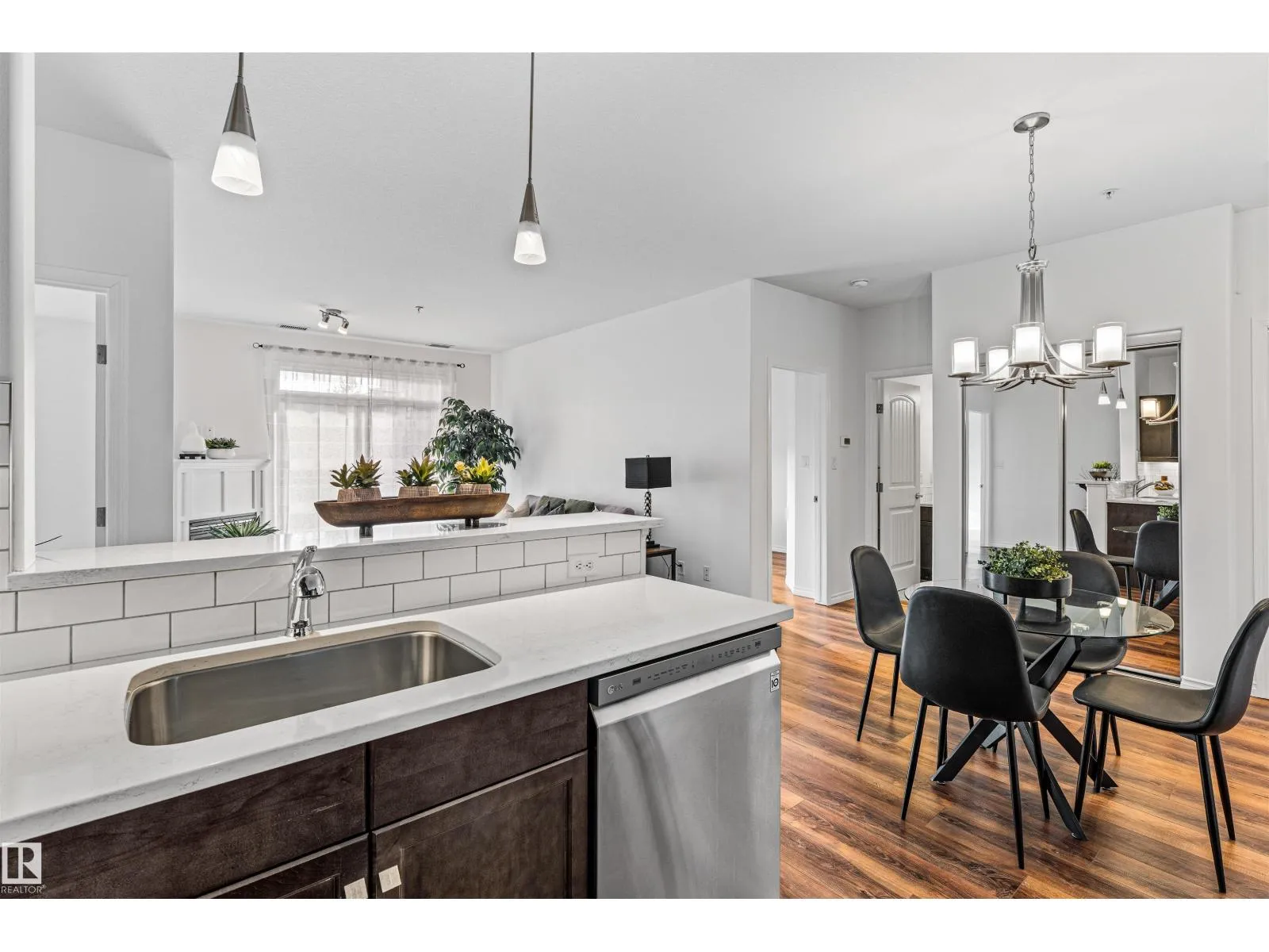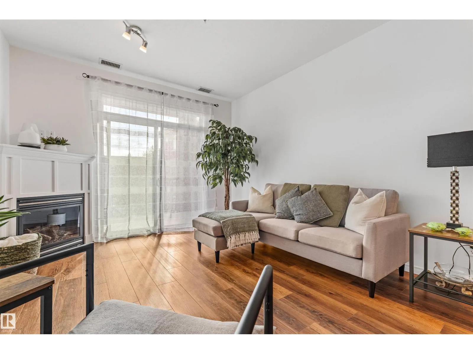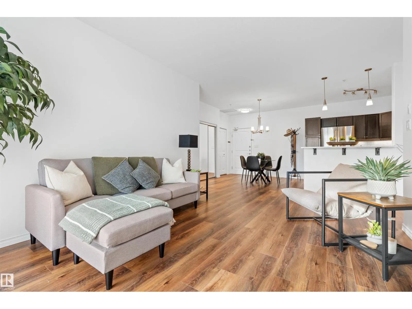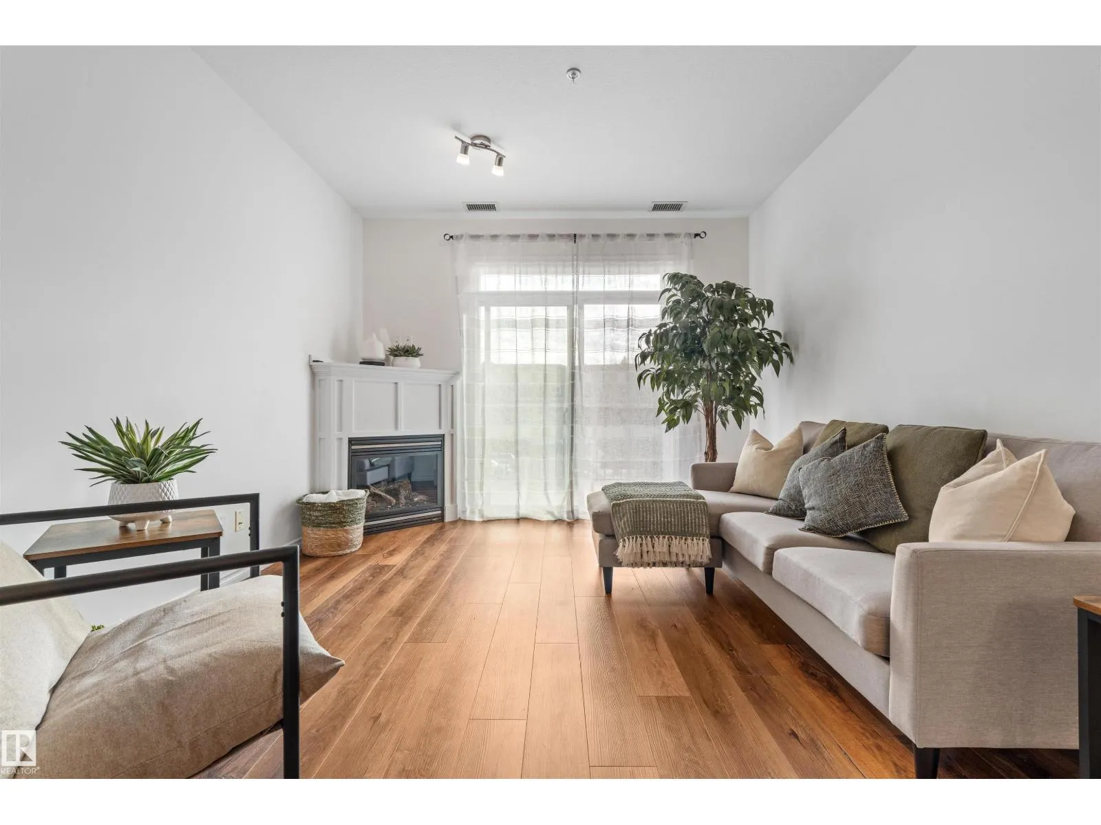 Welcome to Traditions at Riverside. This well-maintained 2 BED, 2 BATH south-facing condo is filled with natural light. The open-concept layout features stone countertops in the kitchen and bathrooms, a huge primary bedroom with ensuite, plus a second bedroom and full bath. Enjoy the convenience of IN-SUITE laundry with added shelving. Other perks include A/C, a good sized balcony and gas BBQ hookup. Building amenities include a social room, theatre, exercise room, guest suite, WARM WATER car wash bay, visitor parking, and secured underground parking. This unit comes with 2 titled parking stallsâone underground near the elevator with a storage cage, and one above ground. Included in the storage cage are two shelving units, tarps x2, bike hooks and extra reno supplies. Condo Fee covers all utilities except power. Perfect for first-time buyers, downsizers, or investorsâthis condo offers comfort, convenience, and exceptional value. (Bedroom and Deck pictures are virtually decorated) (id:27476)