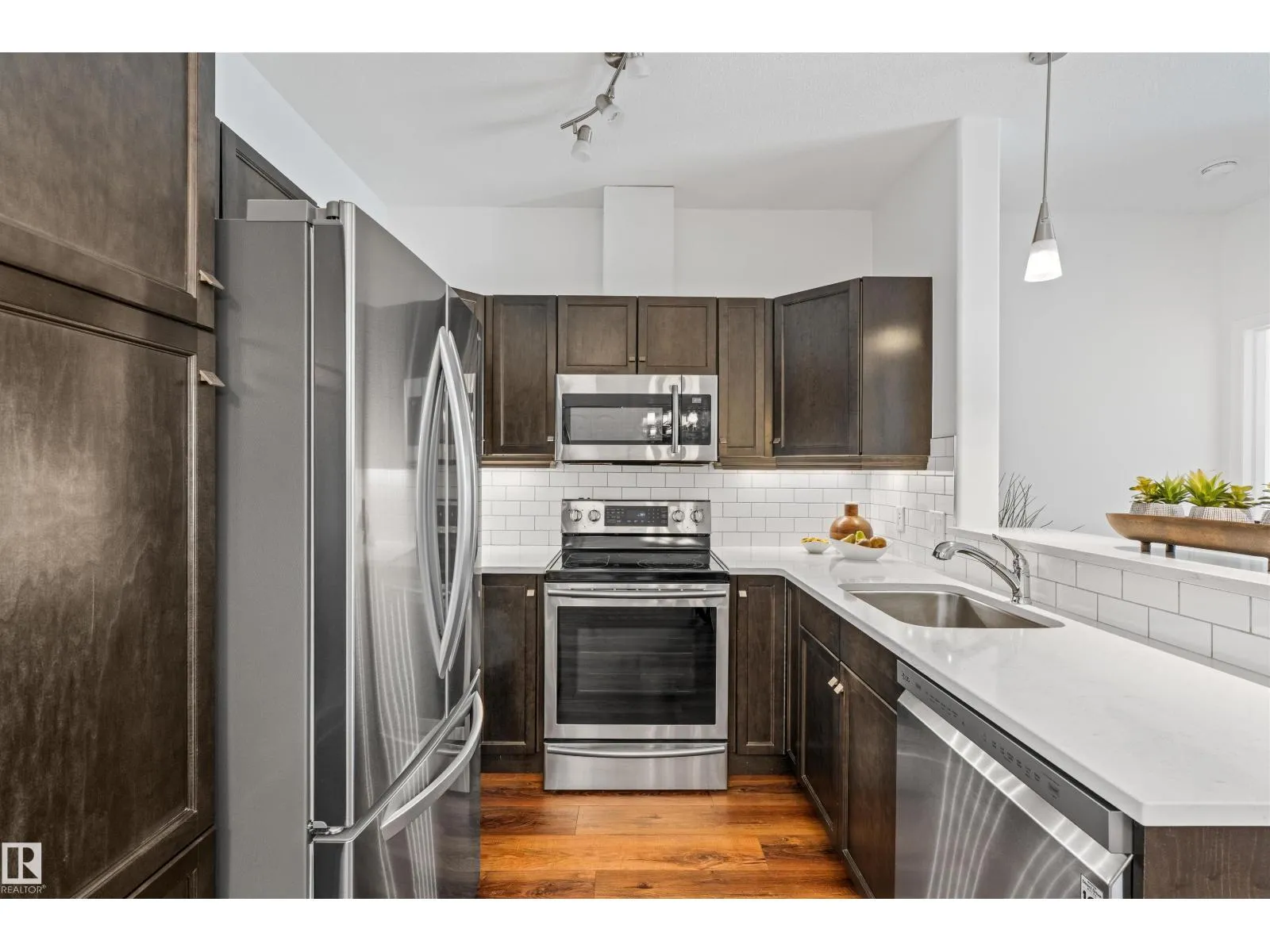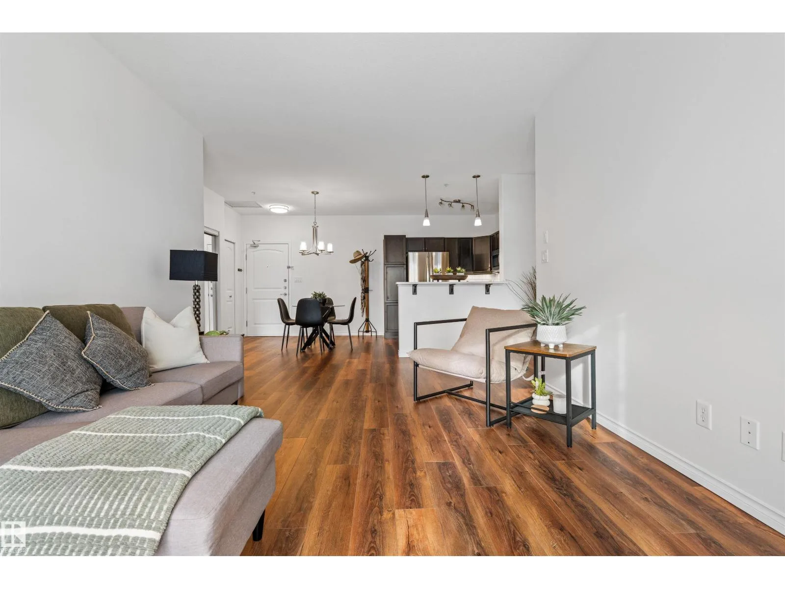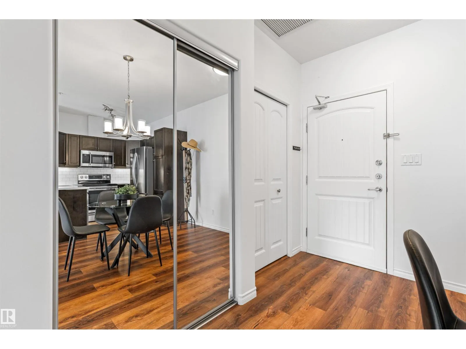 Welcome to Traditions at Riverside. This well-maintained 2 BED, 2 BATH south-facing condo is filled with natural light. The open-concept layout features stone countertops in the kitchen and bathrooms, a huge primary bedroom with ensuite, plus a second bedroom and full bath. Enjoy the convenience of IN-SUITE laundry with added shelving. Other perks include A/C, a good sized balcony and gas BBQ hookup. Building amenities include a social room, theatre, exercise room, guest suite, WARM WATER car wash bay, visitor parking, and secured underground parking. This unit comes with 2 titled parking stallsâone underground near the elevator with a storage cage, and one above ground. Included in the storage cage are two shelving units, tarps x2, bike hooks and extra reno supplies. Condo Fee covers all utilities except power. Perfect for first-time buyers, downsizers, or investorsâthis condo offers comfort, convenience, and exceptional value. (Bedroom and Deck pictures are virtually decorated) (id:27476)