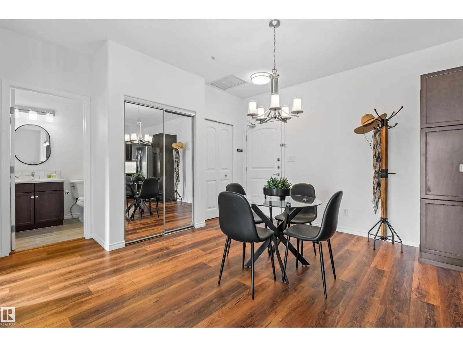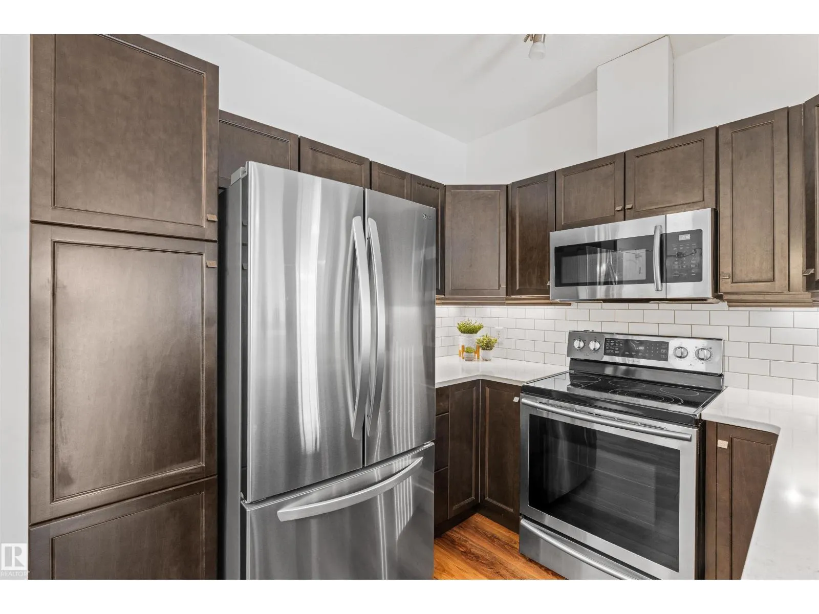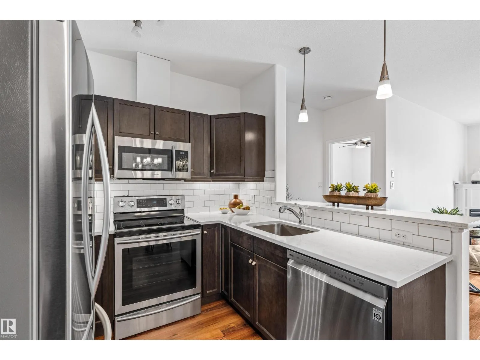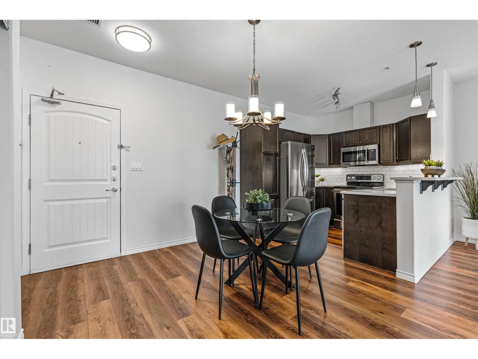 Welcome to Traditions at Riverside. This well-maintained 2 BED, 2 BATH south-facing condo is filled with natural light. The open-concept layout features stone countertops in the kitchen and bathrooms, a huge primary bedroom with ensuite, plus a second bedroom and full bath. Enjoy the convenience of IN-SUITE laundry with added shelving. Other perks include A/C, a good sized balcony and gas BBQ hookup. Building amenities include a social room, theatre, exercise room, guest suite, WARM WATER car wash bay, visitor parking, and secured underground parking. This unit comes with 2 titled parking stallsâone underground near the elevator with a storage cage, and one above ground. Included in the storage cage are two shelving units, tarps x2, bike hooks and extra reno supplies. Condo Fee covers all utilities except power. Perfect for first-time buyers, downsizers, or investorsâthis condo offers comfort, convenience, and exceptional value. (Bedroom and Deck pictures are virtually decorated) (id:27476)