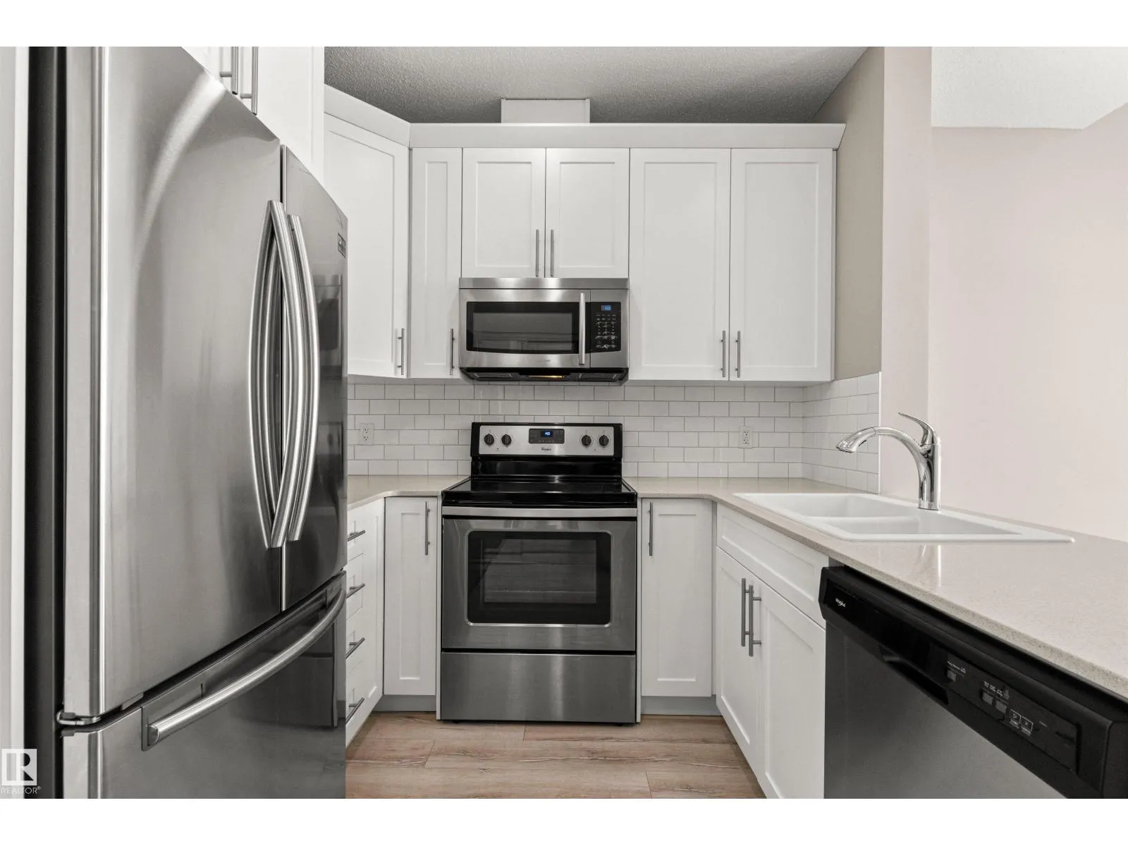 TOP FLOOR, LIKE NEW 1 Bedroom/ 1 Bathroom condo offering CLEAN, MODERN FINISHES. This WELL-DESIGNED unit features an OPEN-CONCEPT layout with HIGH VAULTED CEILINGS and durable WIDE VINYL PLANK FLOORING throughout. The CONTEMPORARY KITCHEN includes QUARTZ COUNTERTOPS, STAINLESS STEEL APPLIANCES, and ample CABINET SPACE. The SPACIOUS BEDROOM connects to a functional JACK & JILL BATHROOM, providing convenient access for both residents and guests. Additional features include PORTABLE A/C, LOW CONDO FEES, and access to a ROOFTOP PATIO. The building is PET FRIENDLY (subject to board approval). An excellent opportunity for FIRST-TIME BUYERS, DOWNSIZERS, or INVESTORS seeking a MOVE-IN READY property. Shopping, public transit and restaurants all just steps away! (id:27476)