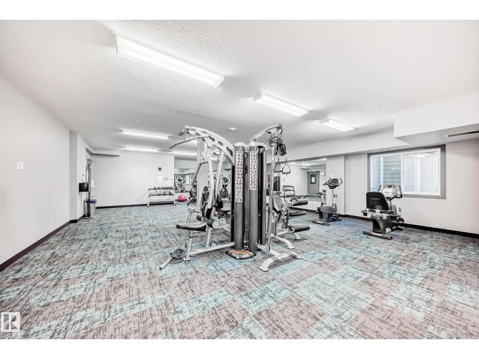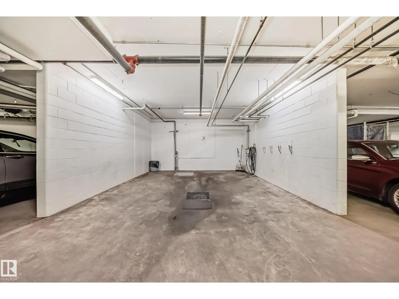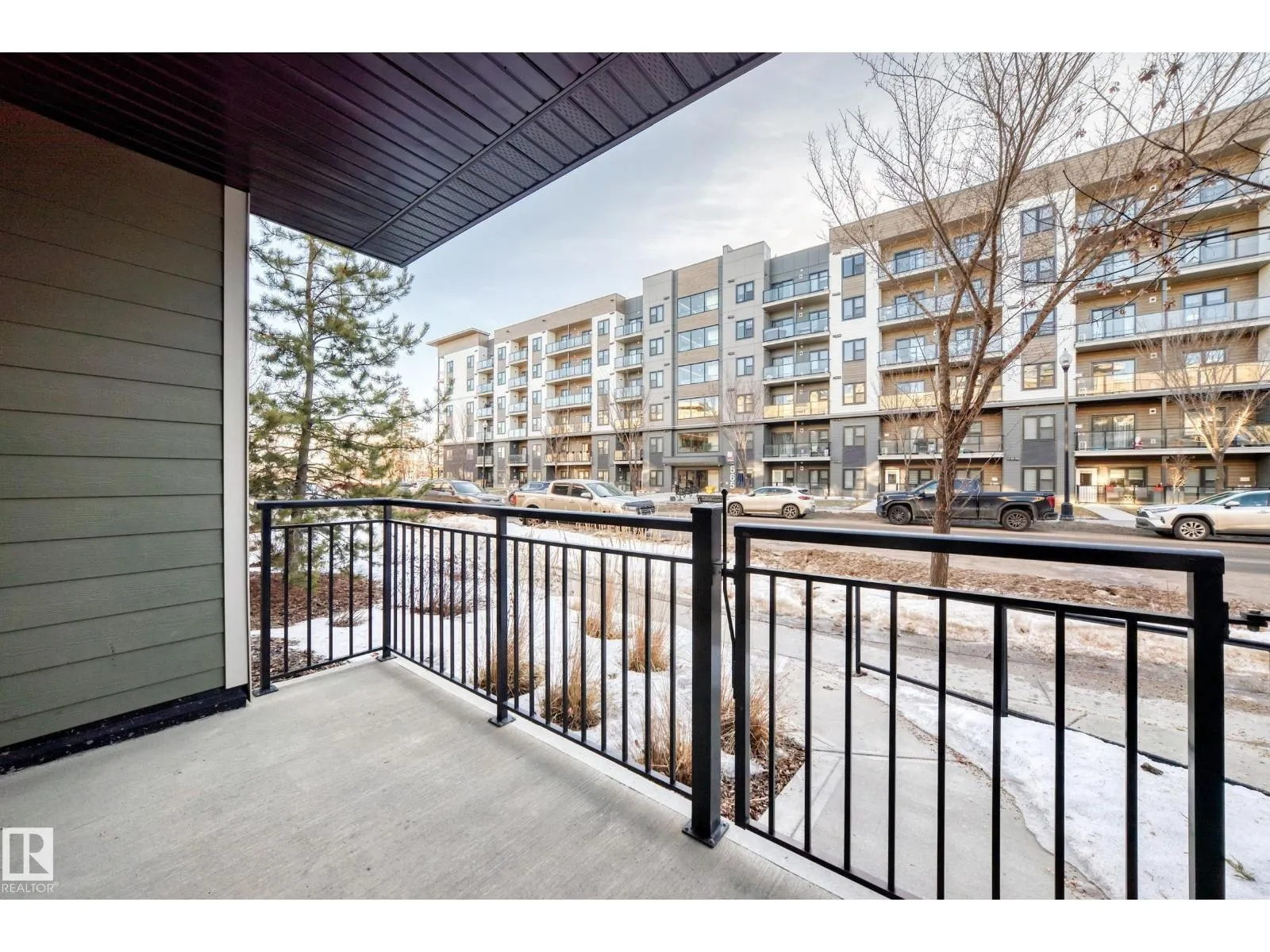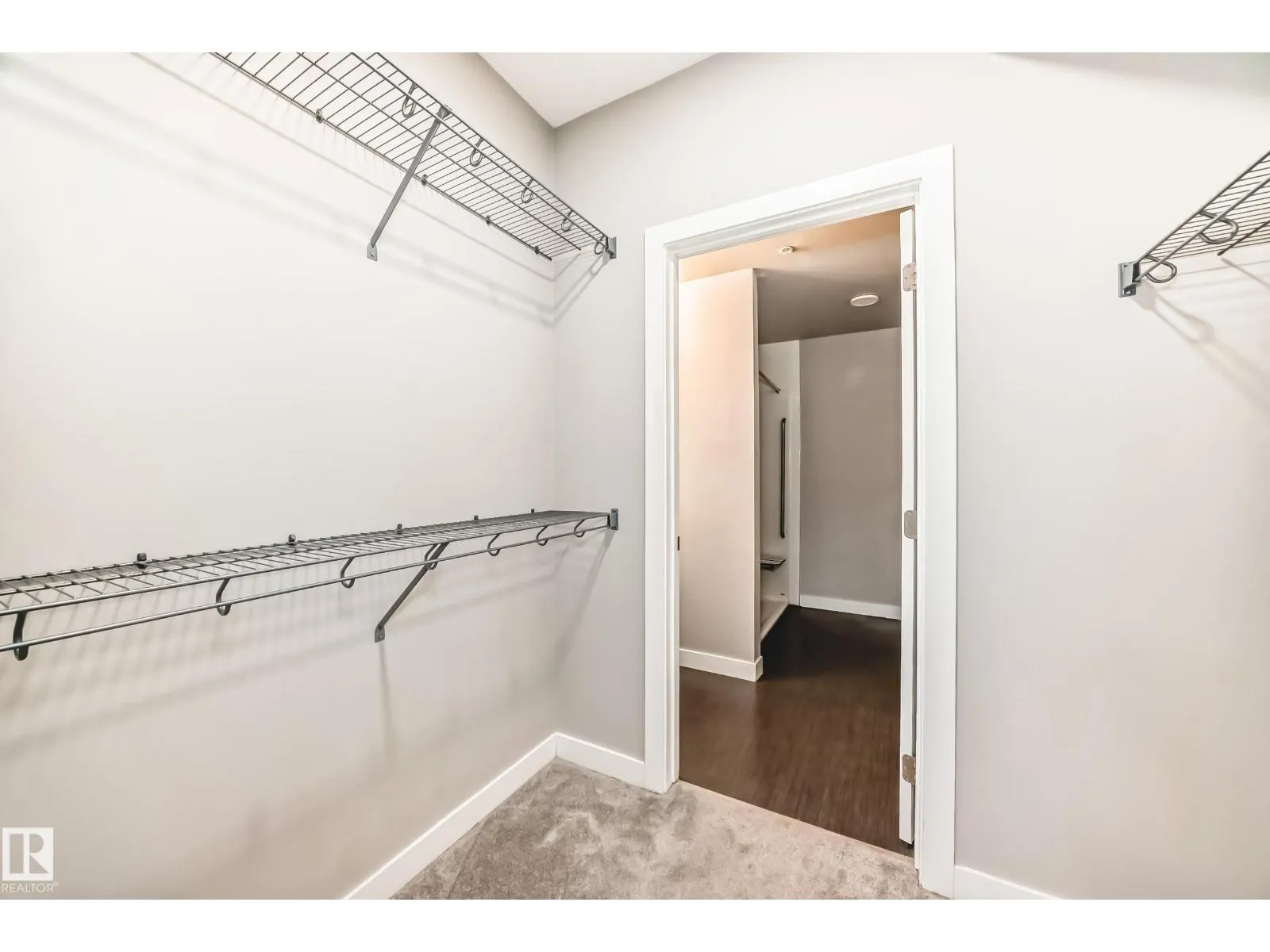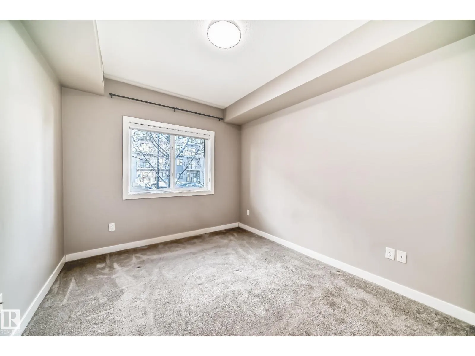 Welcome to this well-appointed 2 bed, 2 bath main-floor condo offering exceptional accessibility just steps from the elevator and lobby. Builder size is 1,000 sq ft with a smart layout that separates the bedrooms with a spacious central living area for added privacy. The primary suite features an accessible ensuite with roll-in shower. The kitchen showcases quartz countertops, soft-close cabinetry and modern finishes. Luxury vinyl plank flooring highlights the main areas, with carpet in the bedrooms. Enjoy in-suite laundry, energy-efficient heat pump heating and cooling, and included window coverings. The gated patio with BBQ gas hookup is perfect for entertaining and provides easy access to amenities and the beautiful walking trails of historic Griesbach. Fire-protectant treated building offers a games room, library, fitness centre, car wash bay and underground parking. (id:27476)