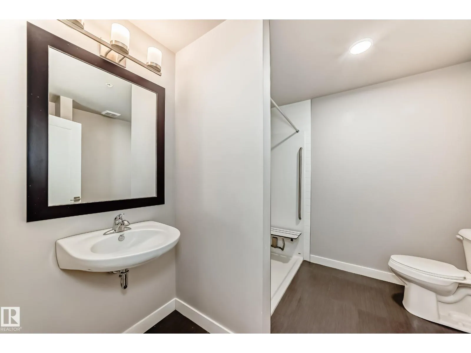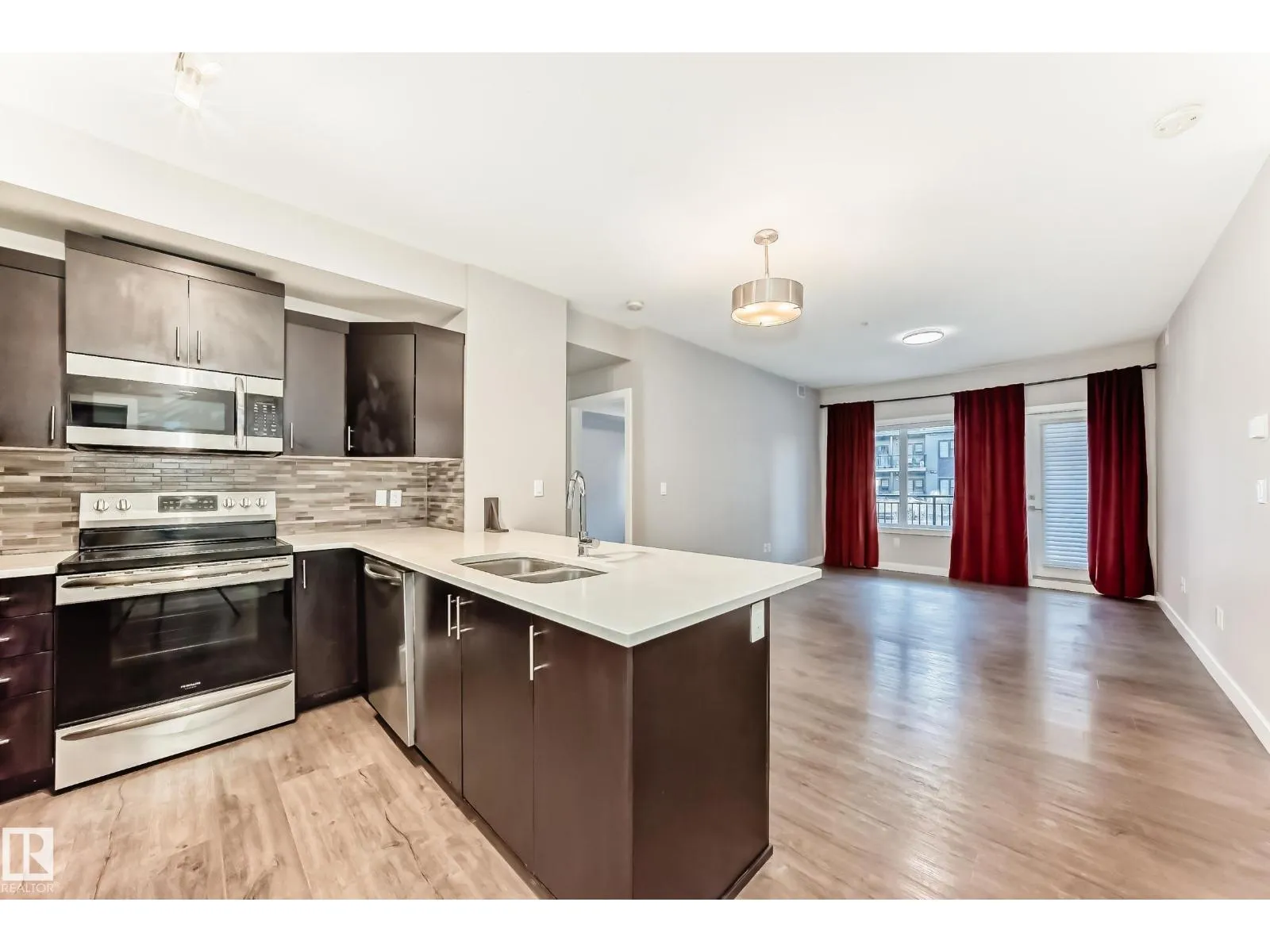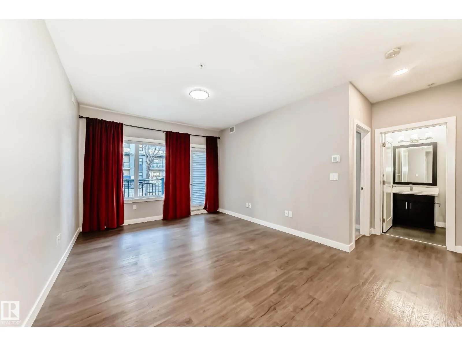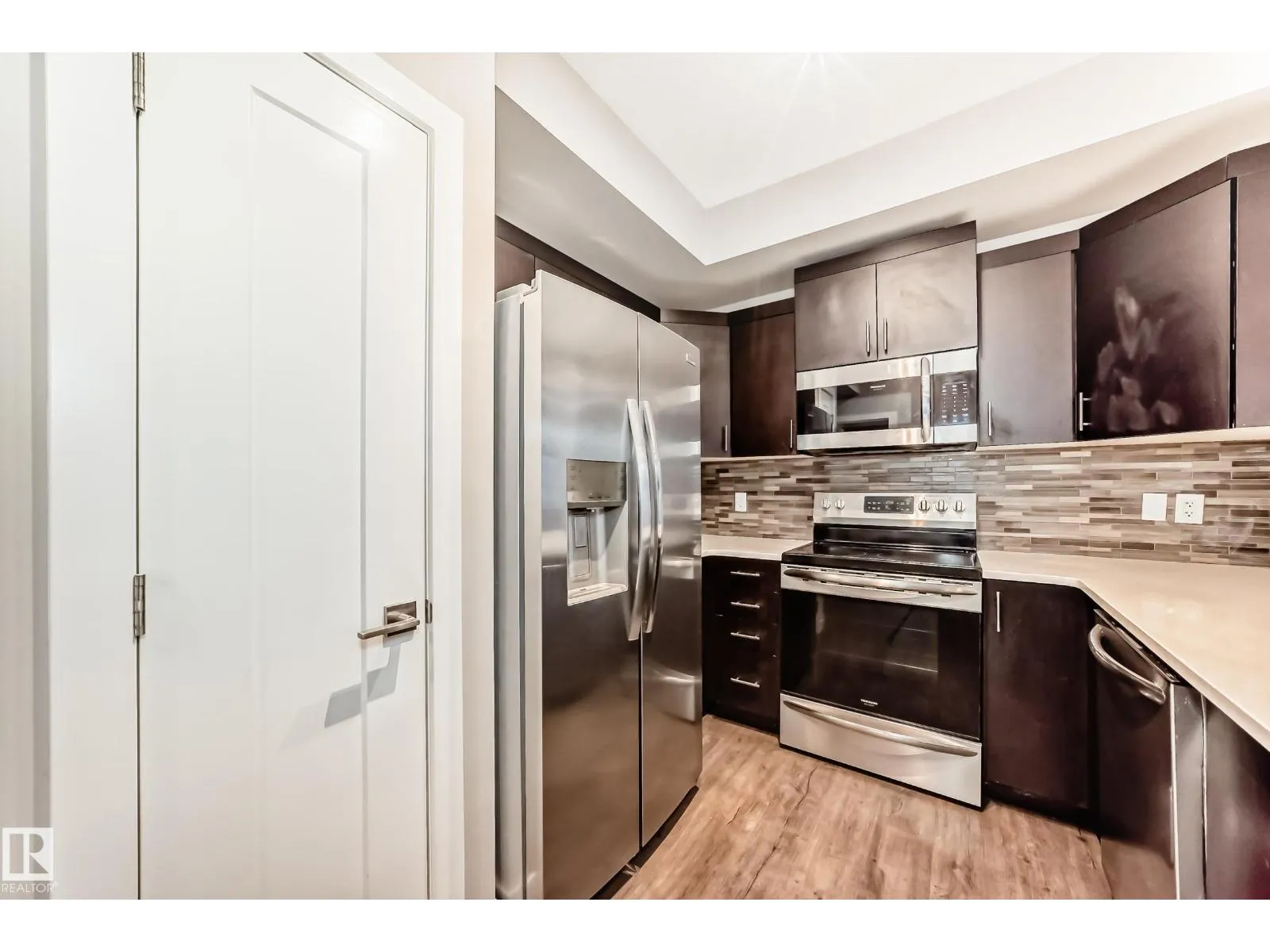 Welcome to this well-appointed 2 bed, 2 bath main-floor condo offering exceptional accessibility just steps from the elevator and lobby. Builder size is 1,000 sq ft with a smart layout that separates the bedrooms with a spacious central living area for added privacy. The primary suite features an accessible ensuite with roll-in shower. The kitchen showcases quartz countertops, soft-close cabinetry and modern finishes. Luxury vinyl plank flooring highlights the main areas, with carpet in the bedrooms. Enjoy in-suite laundry, energy-efficient heat pump heating and cooling, and included window coverings. The gated patio with BBQ gas hookup is perfect for entertaining and provides easy access to amenities and the beautiful walking trails of historic Griesbach. Fire-protectant treated building offers a games room, library, fitness centre, car wash bay and underground parking. (id:27476)