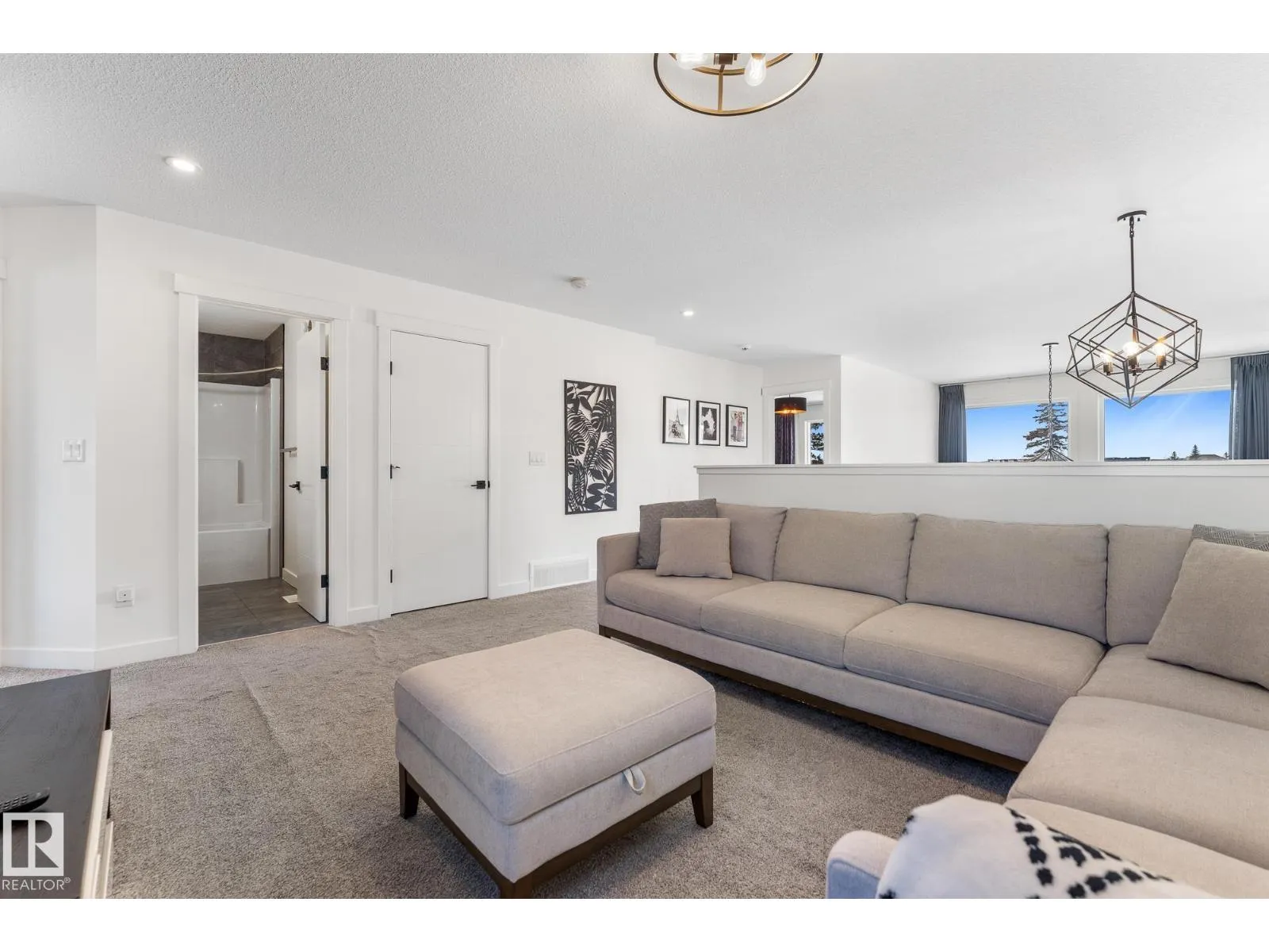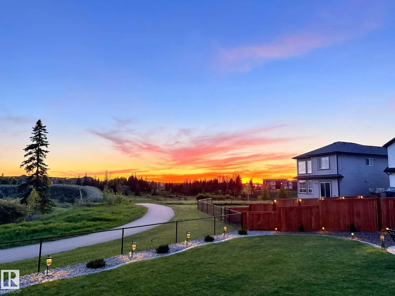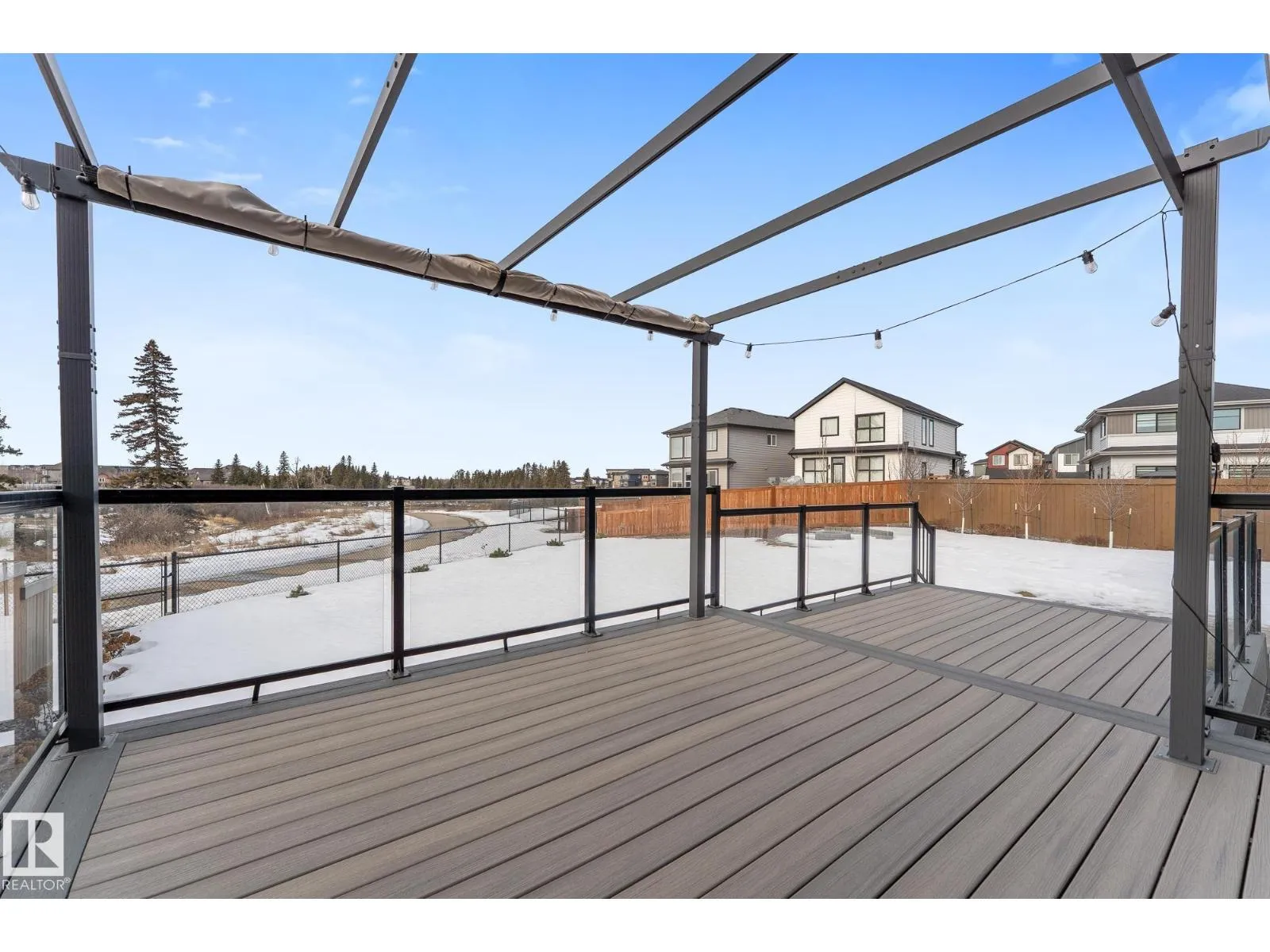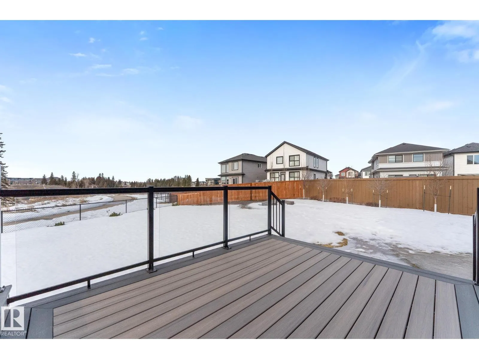 Cavanagh | 2,041 Sq Ft | Cul-de-Sac | Ravine Backing | Premium Oversized Lot | Backyard Dream Rare lot. Quiet cul-de-sac. Ravine views. Real value. Welcome to this exceptionally maintained 2,056 sq ft two-storey in Cavanagh, perfectly positioned on one of the largest lots in the community, backing directly onto a scenic ravine with no rear neighbours just privacy and open skies. Main floor features a private office (can be converted to bedroom easily), powder room & a dramatic open-to-below living room filled with natural light. The gourmet kitchen impresses with quartz countertops, gas stove, chimney hood fan, modern cabinetry, walk-through pantry, and a large island. Upstairs offers 3 bright bedrooms, including a spacious primary with walk-in closet, full bath, and bonus room. Fully finished backyard showcases a pergola-covered 28' wide composite deck, 30'paver pathway to fire pit, concrete edging, and blooming trees. Unspoiled basement with carpet laid. Central AC to keep cool in summer. (id:27476)