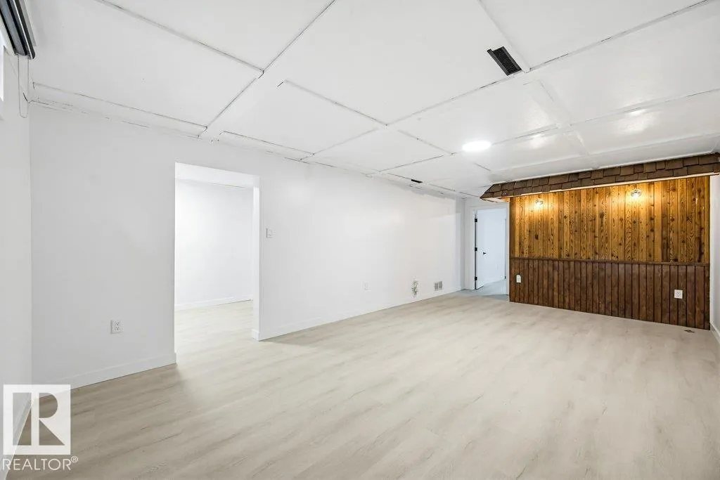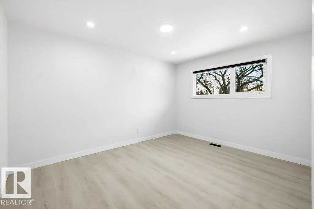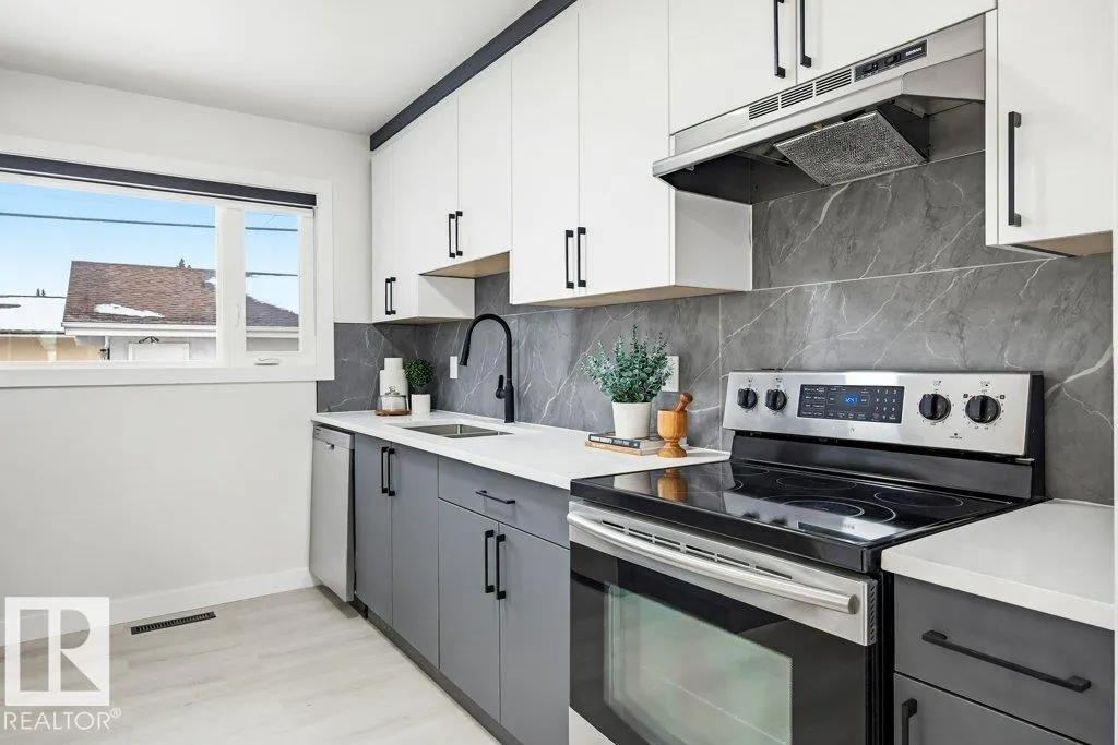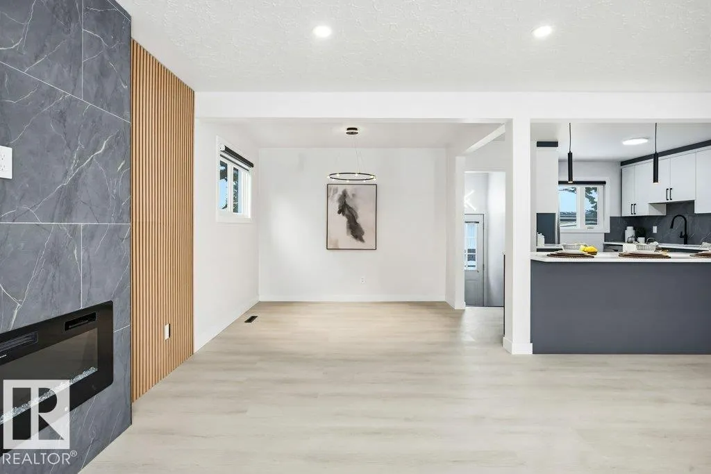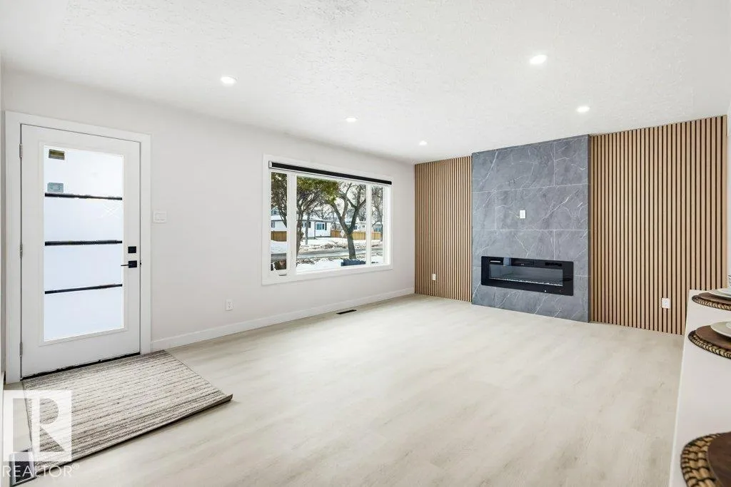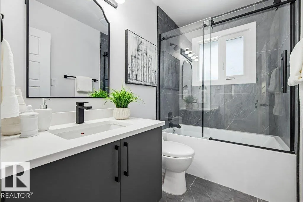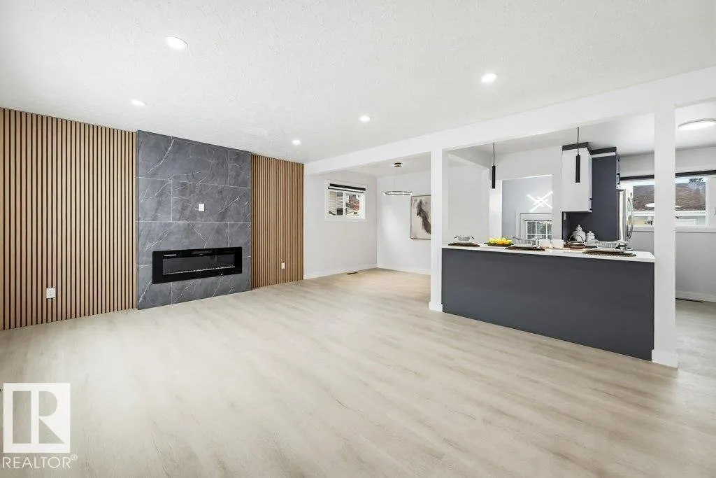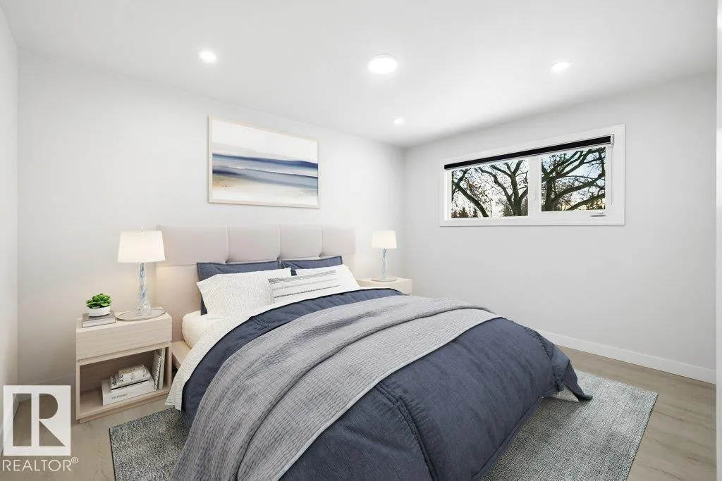 Welcome to Elmwood with this RENOVATED 4 bedroom | 2 full bathroom, open-concept bungalow. Designed for both comfort & style, this home is completely transformed & thoughtfully updated throughout featuring; new luxury vinyl plank flooring, new windows, modern baseboards & trim, upgraded interior doors, striking feature-wall fireplace, stylish lighting, fresh paint throughout, custom cabinetry, sleek zebra blinds, elegant quartz countertops & beautifully renovated bathrooms with new vanities/sinks/toilets. Enter the show-stopping kitchen featuring two-toned matte cabinetry, SS appliances & impressive 76â quartz island ideal for gatherings & everyday living. 3 sizeable main level bedrooms & trendy 4pc bath. Fully finished basement w/4th bedroom & gorgeous walk-through 3pc ensuite. Large rec room provides the perfect space for entertaining, relaxing, or hosting guests. Exterior upgrades complete the look w/freshly painted stucco, new siding, roof (2022), landscaping & refreshed garage. Just move in & enjoy! (id:27476)