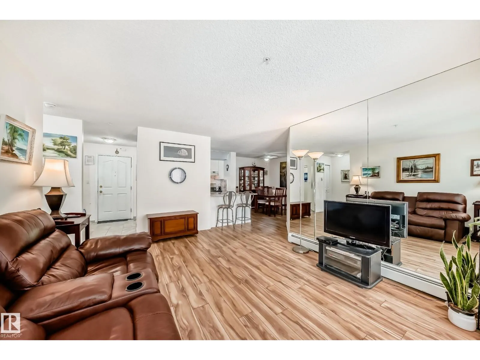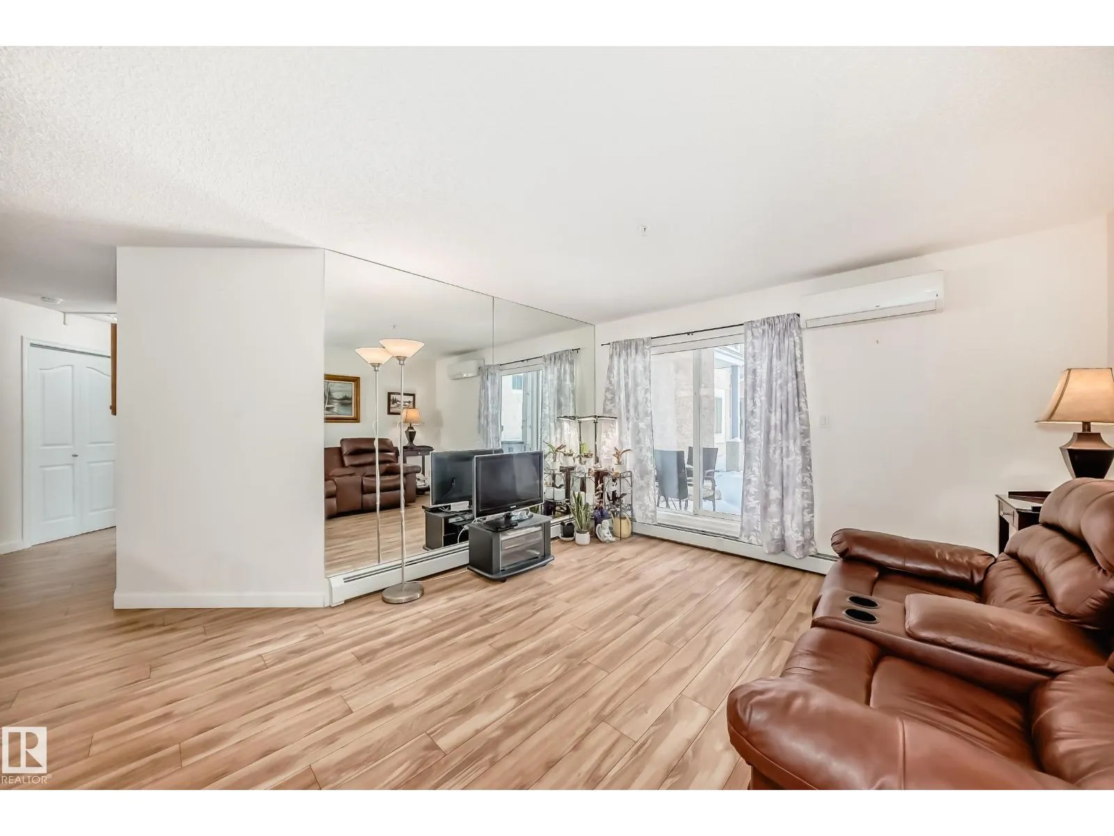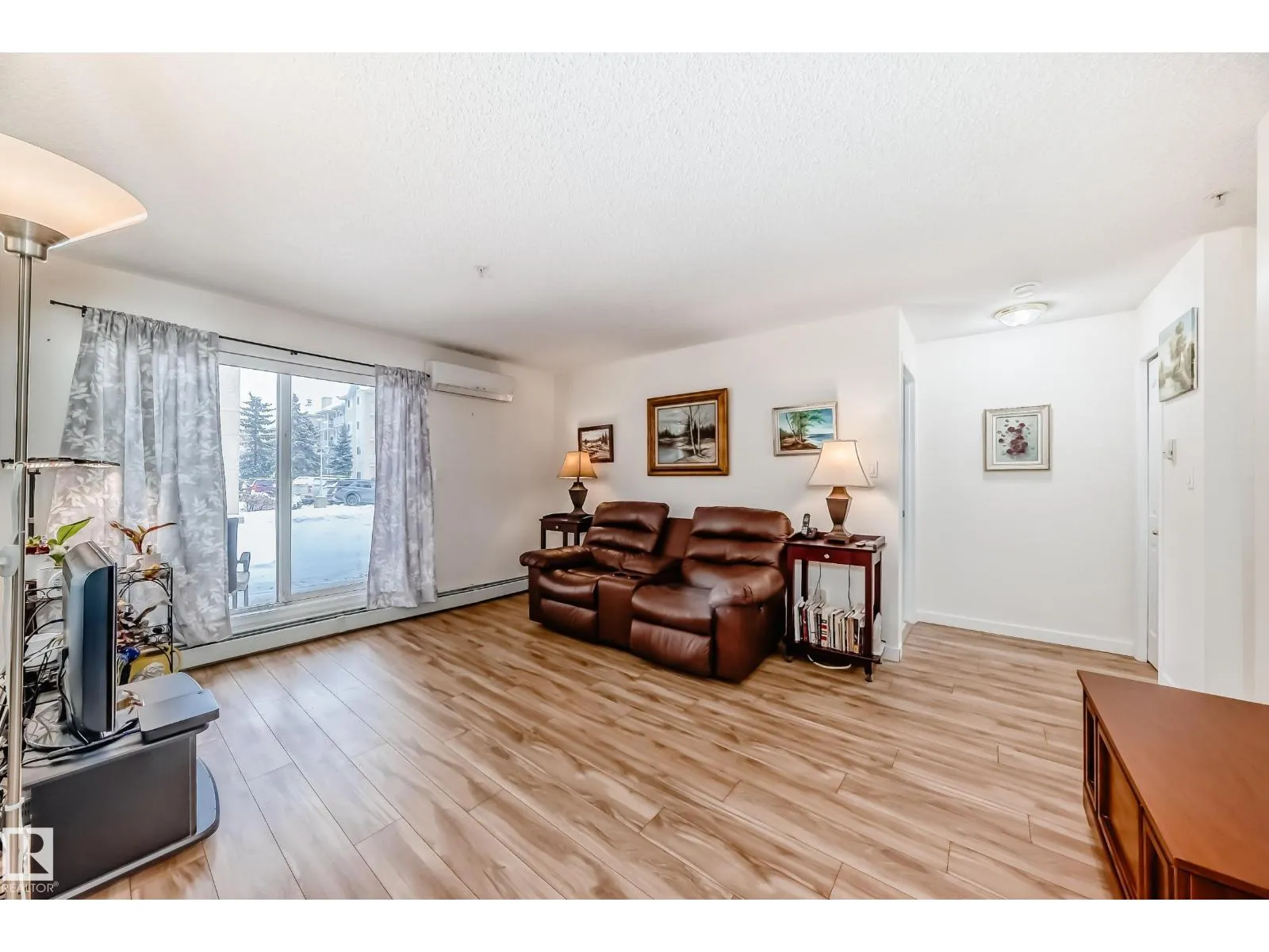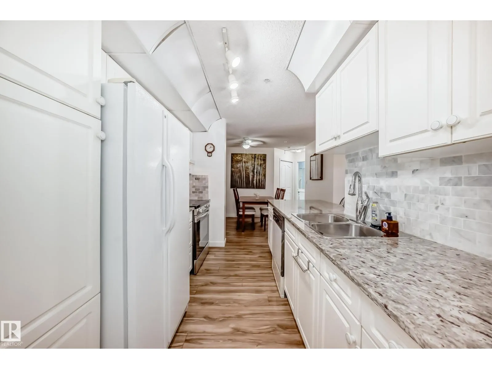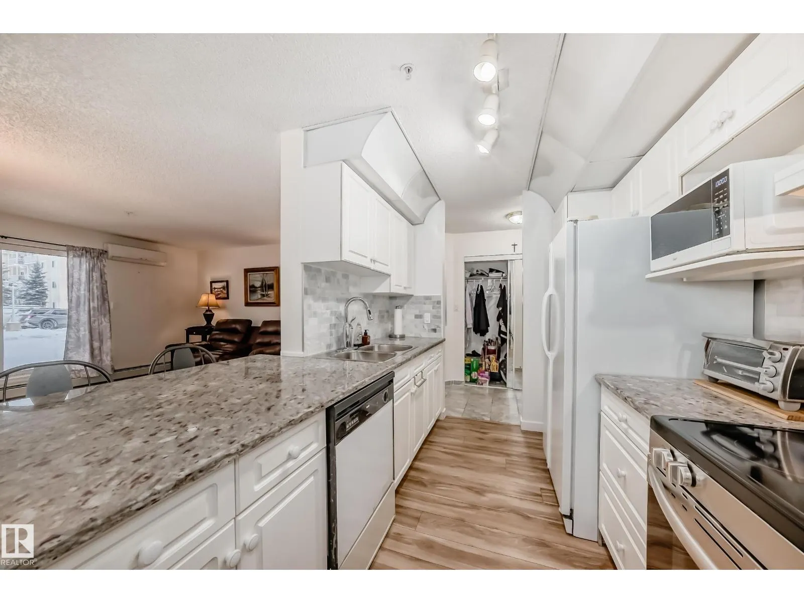 Welcome to this beautifully maintained 2 bed, 2 bath main-floor unit in Grande West in Terra Losa! From the moment you step inside, youâll feel at home. The bright galley kitchen features white cabinetry, newer granite countertops, updated backsplash, and a new stove. Warm wood-tone flooring flows seamlessly into the dining area and living room. The spacious primary bedroom offers a walk-through closet and private 3-piece ensuite, while the second bedroom and 4-piece bath are thoughtfully positioned on the opposite side for added privacy. Enjoy the convenience of in-suite laundry and a covered patio. Additional highlights include central A/C, in-suite and cage storage, and one titled underground heated parking stall. The building also offers a social room, third-floor library, and car wash. Ideally located near shopping, the seniors centre, public transit, and Terra Losa Lake â this is a wonderful place to call home! (id:27476)