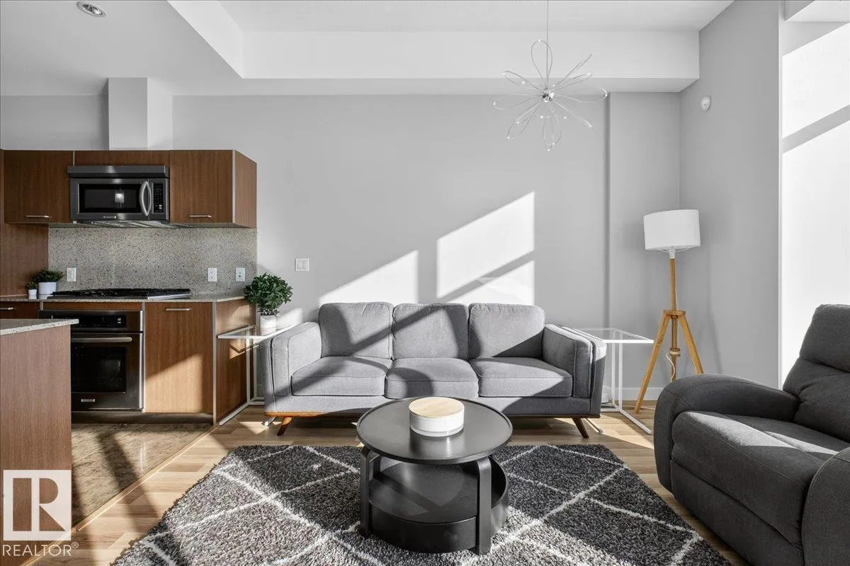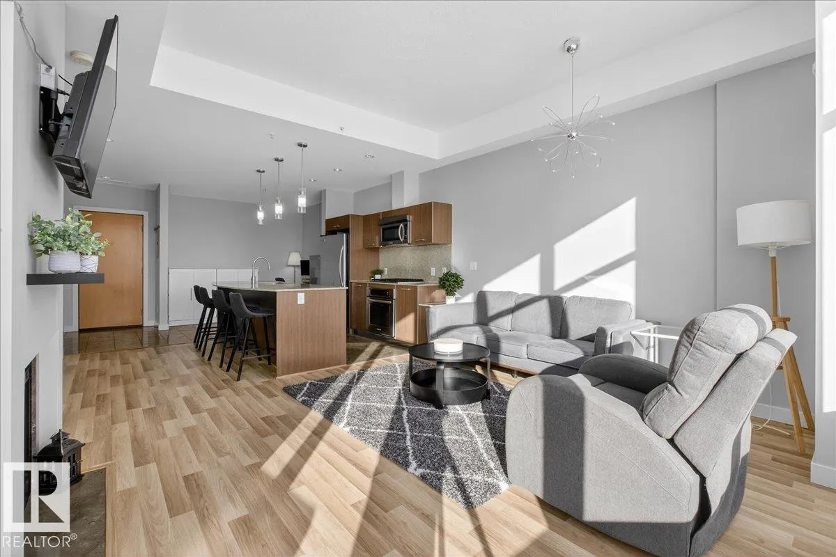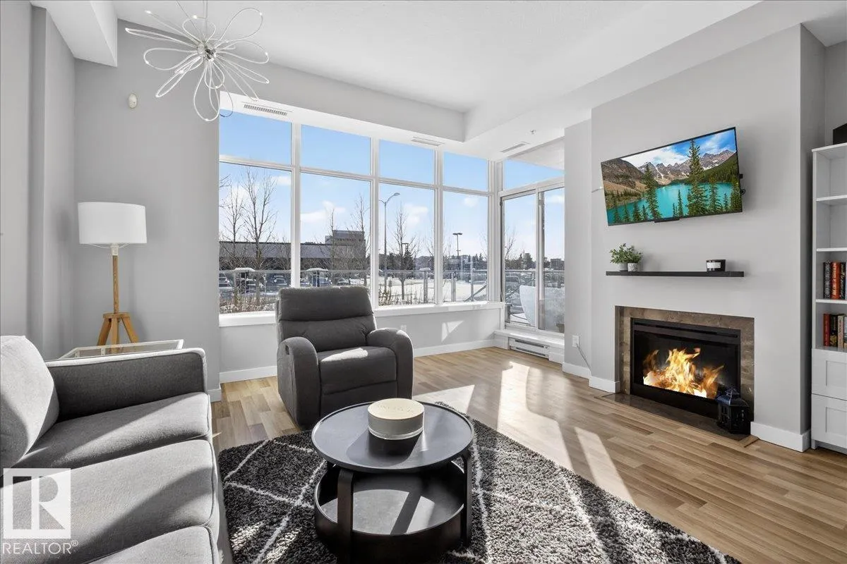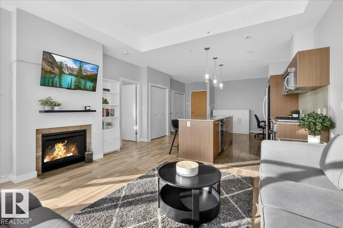 Welcome to Century Park! This concrete building offers excellent sound insulation and is ideally located within walking distance to LRT transit and shopping, and just minutes to South Common. This outstanding 1-bedroom south-facing condo features a bright, open-concept layout with laminate flooring, granite countertops, upgraded cabinets and faucets, KitchenAid stainless steel appliances including a gas stove top with built-in oven, marble finishes in the 4-piece bathroom, and a cozy electric fireplace. Enjoy access to the large south-facing patio from the great room, and take advantage of the beautifully maintained courtyard and nearby park for relaxing outdoor space. Includes titled heated underground parking and storage. Additional building amenities include a gym, making this a first-class unit in an unbeatable location! (id:27476)