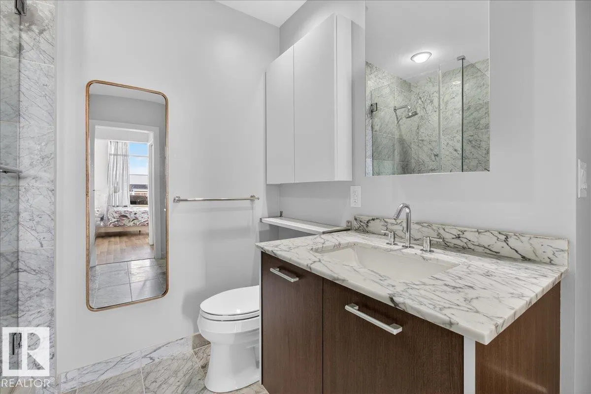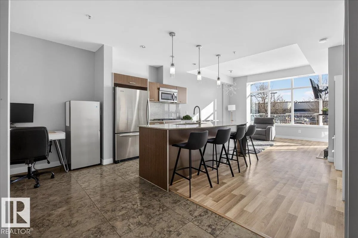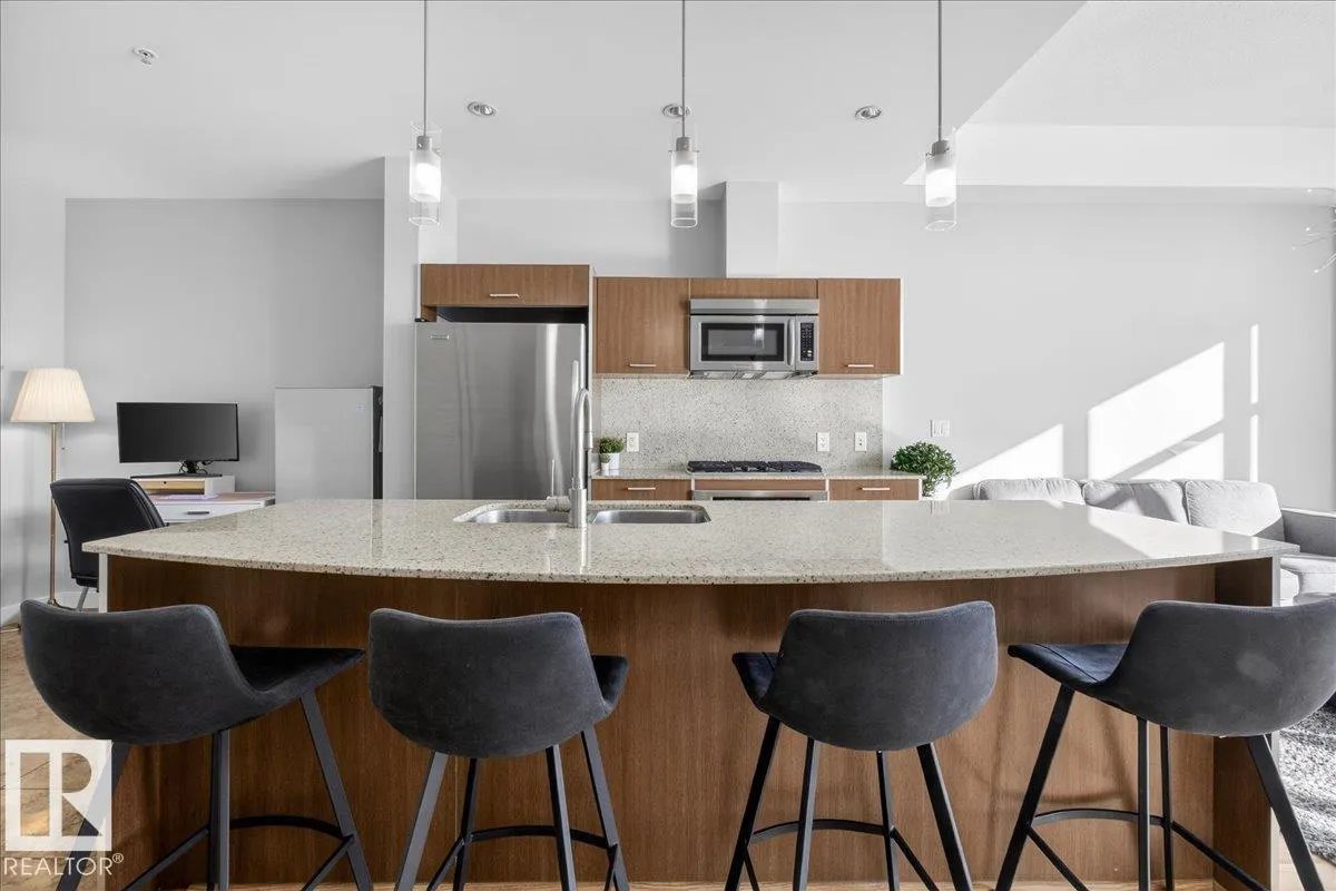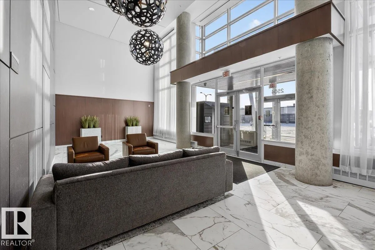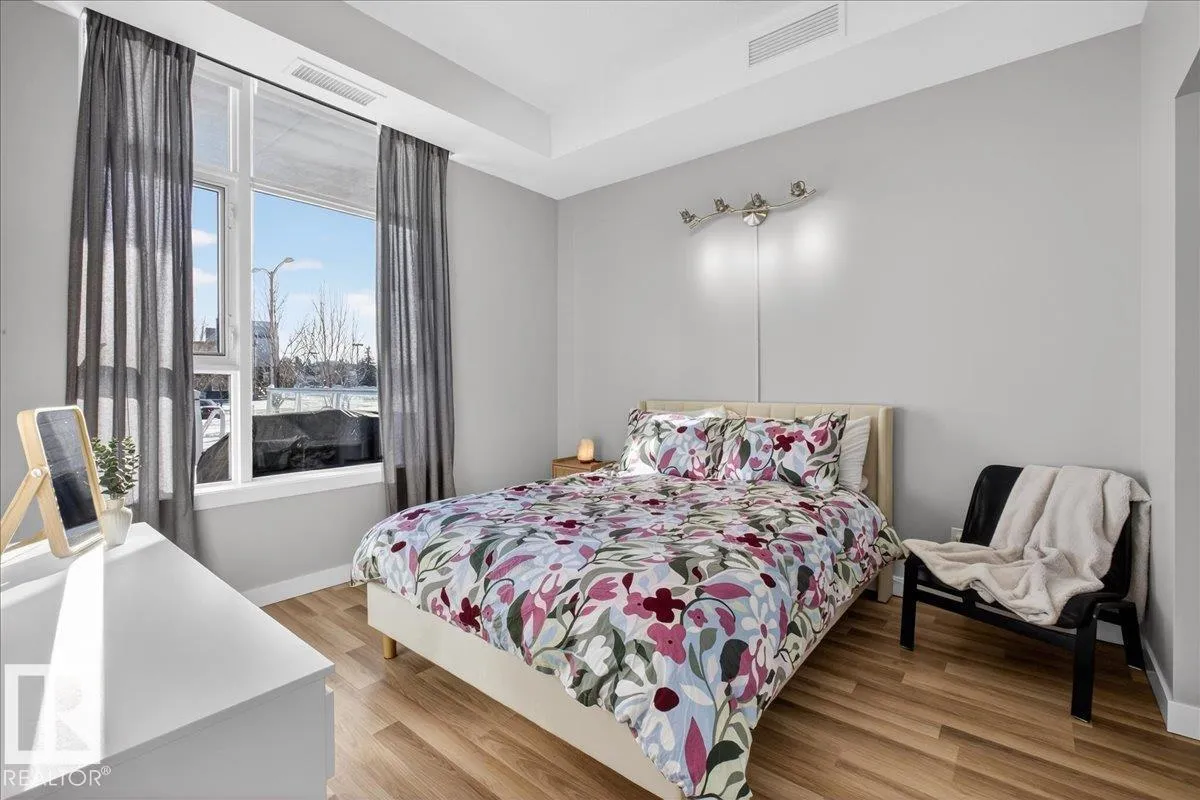 Welcome to Century Park! This concrete building offers excellent sound insulation and is ideally located within walking distance to LRT transit and shopping, and just minutes to South Common. This outstanding 1-bedroom south-facing condo features a bright, open-concept layout with laminate flooring, granite countertops, upgraded cabinets and faucets, KitchenAid stainless steel appliances including a gas stove top with built-in oven, marble finishes in the 4-piece bathroom, and a cozy electric fireplace. Enjoy access to the large south-facing patio from the great room, and take advantage of the beautifully maintained courtyard and nearby park for relaxing outdoor space. Includes titled heated underground parking and storage. Additional building amenities include a gym, making this a first-class unit in an unbeatable location! (id:27476)
