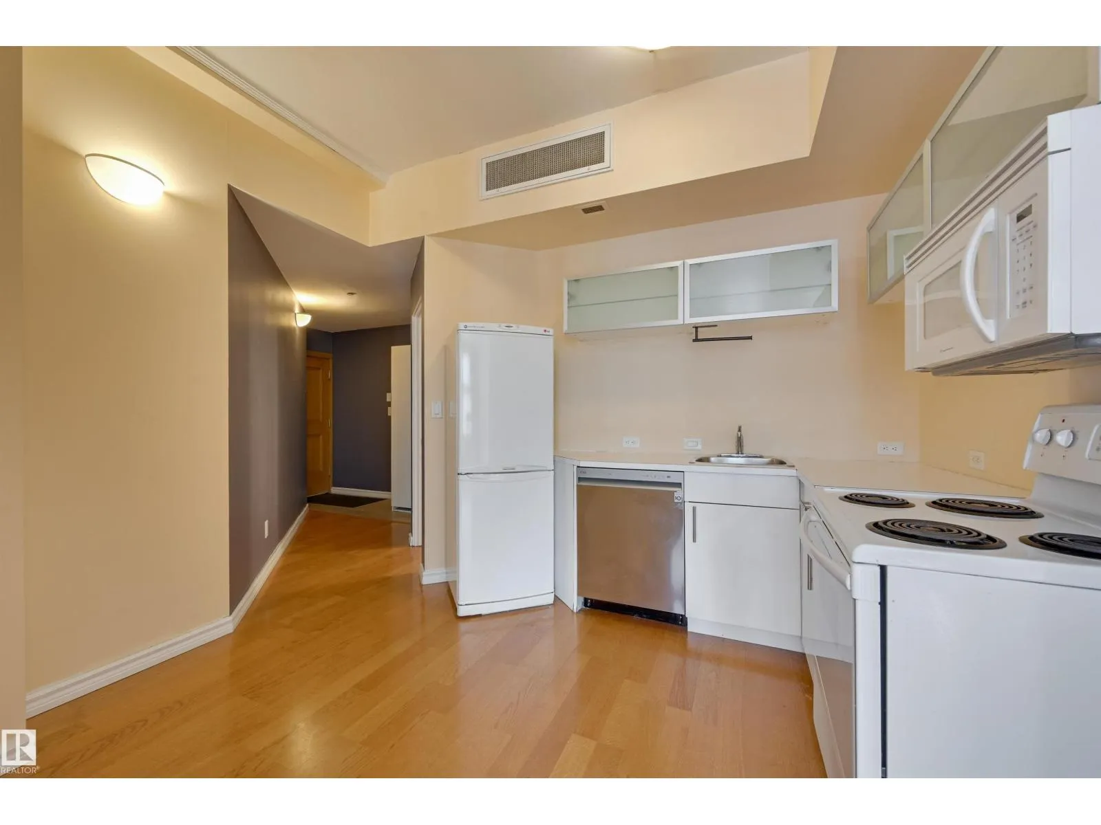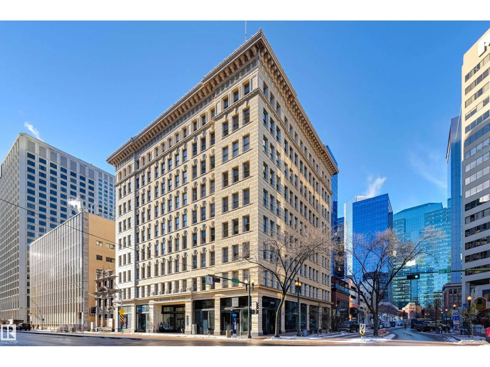 Experience timeless elegance in this top-floor corner loft within the historic McLeod Building. Built in 1915 and designated as a Provincial and Municipal resource, this concrete and steel landmark blends turn-of-the-century character with vibrant downtown living. Step into a sun-drenched space featuring soaring 10-foot ceilings, 7-foot windows, and dual South/West exposures. A loft style layout with open bedroom area, full bathroom with washing machine. The interior of the building preserves its heritage with oak-paneled doors, brass hardware, and marble-clad walls. Located in the heart of the city, you are steps away from the LRT, boutique shopping, and the best bistros and nightlife. This trendy loft is the ultimate find for anyone seeking a piece of architectural history with an urban pulse. (id:27476)