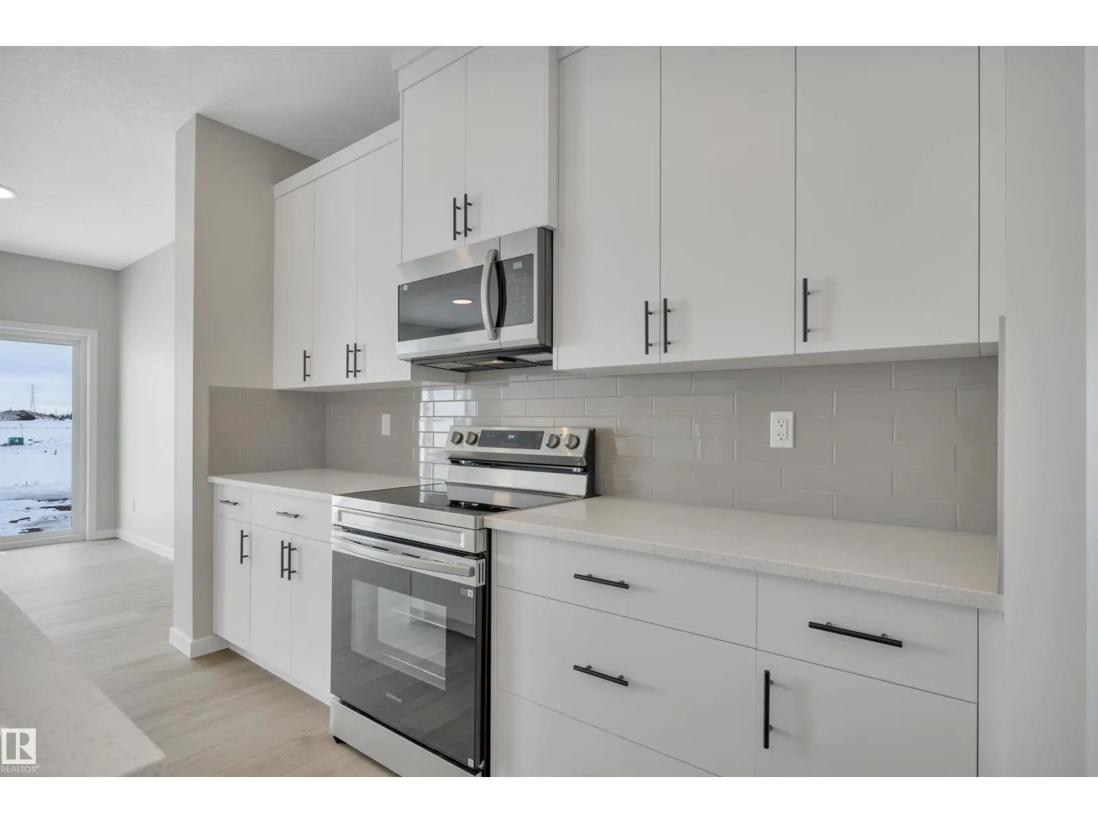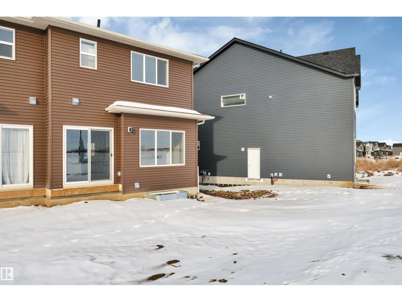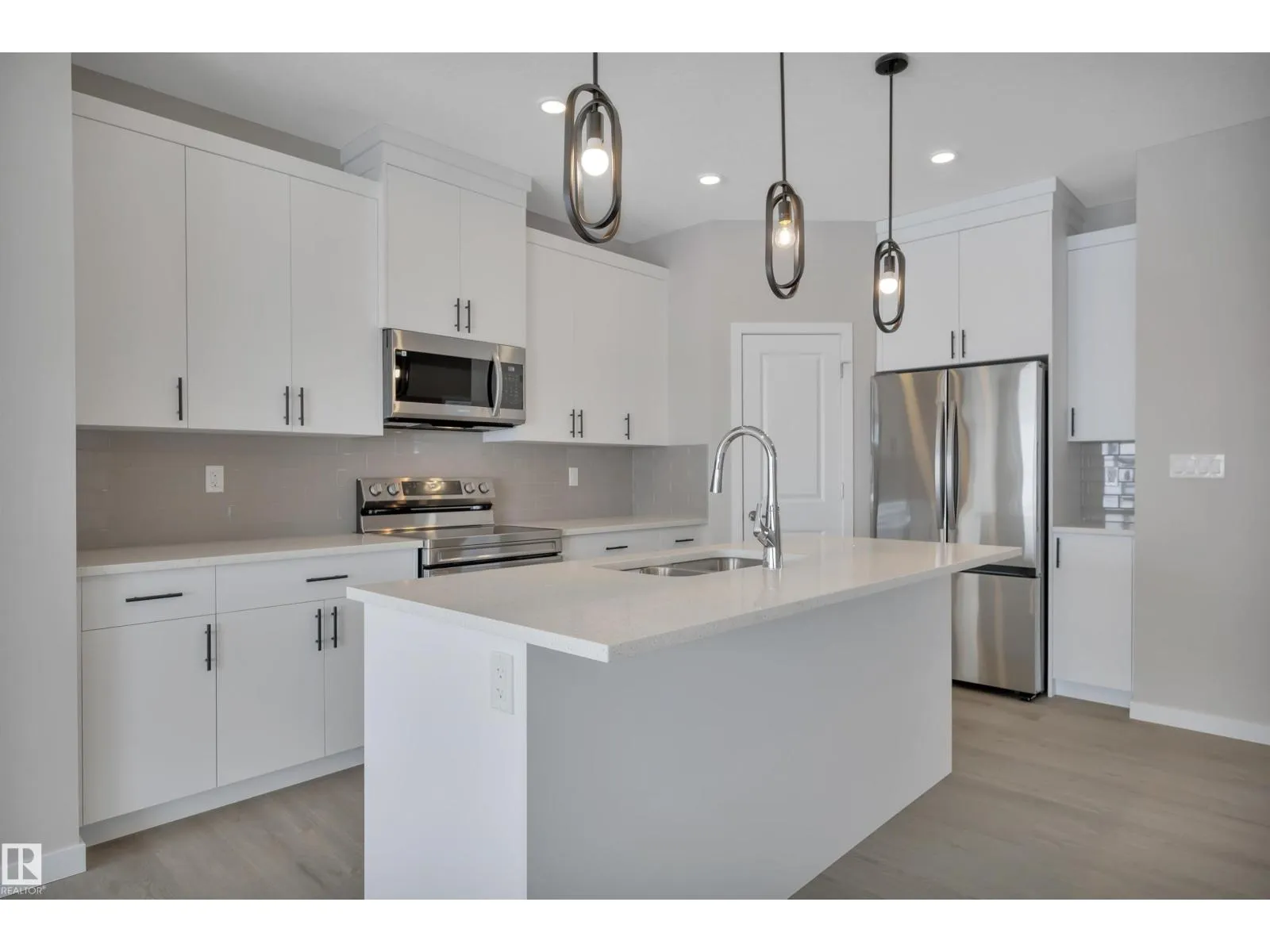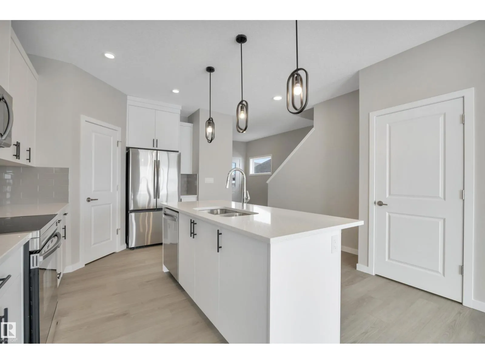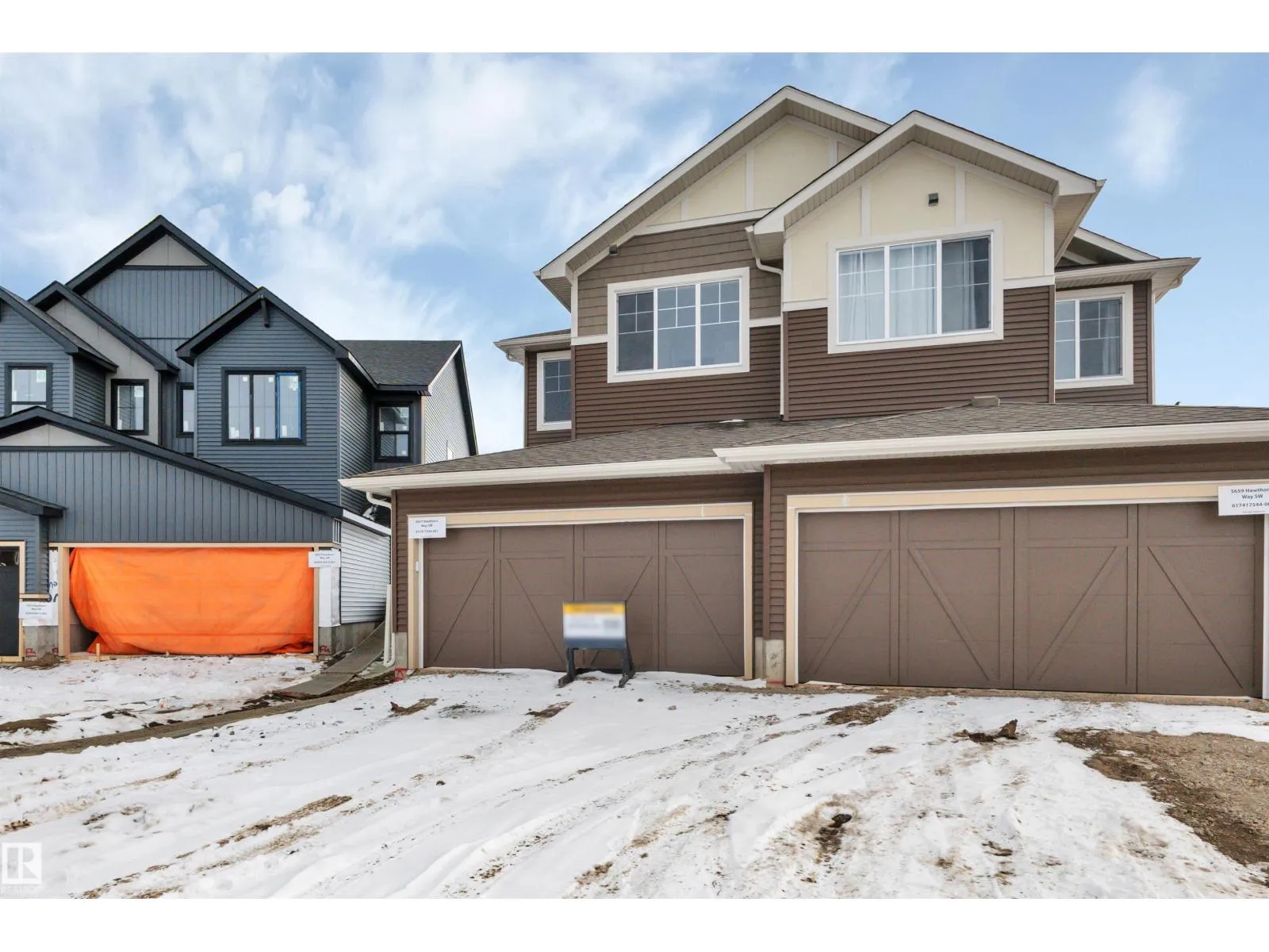 Welcome to sought after THE ORCHARDS and this BRAND NEW half duplex, with DOUBLE FRONT ATTACHED GARAGE and SEPARATE SIDE ENTRANCE. The Ashford by 35 yr builder Excel Homes offers a 2 storey at OVER 1600 sf of finished living space. Upon entering you're greeted with 9 FT CEILINGS, LVP flooring, open concept kitchen with STAINLESS STEEL APPLIANCES, QUARTZ COUNTERTOPS, PENDANT LIGHTING, adjacent nook and opening to the LARGE living area. Plenty of LIGHT in this home with all the windows. Half bath completes the main. Upstairs is carpeted, full main bath up, SPACIOUS Primary bedroom with full 4 piece ensuite, large walk in closet, 2 more LARGE bedrooms and laundry room finishes the upper floor. Home is GREEN BUILT, with tankless water system, HRV, Ecobee thermostat, upgraded insulation, energy star appliances, low E windows, low VOC paint, solar panel rough-in FRONT/BACK LANDSCAPING! Close to all amenities, Anthony Henday, public transportation, SOUTH COMMON, DON'T DELAY call this your new HOME TODAY! (id:27476)