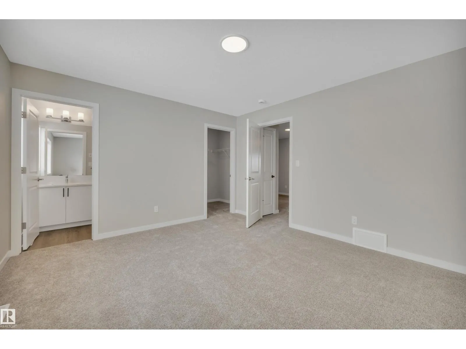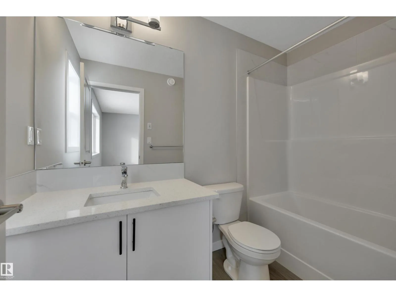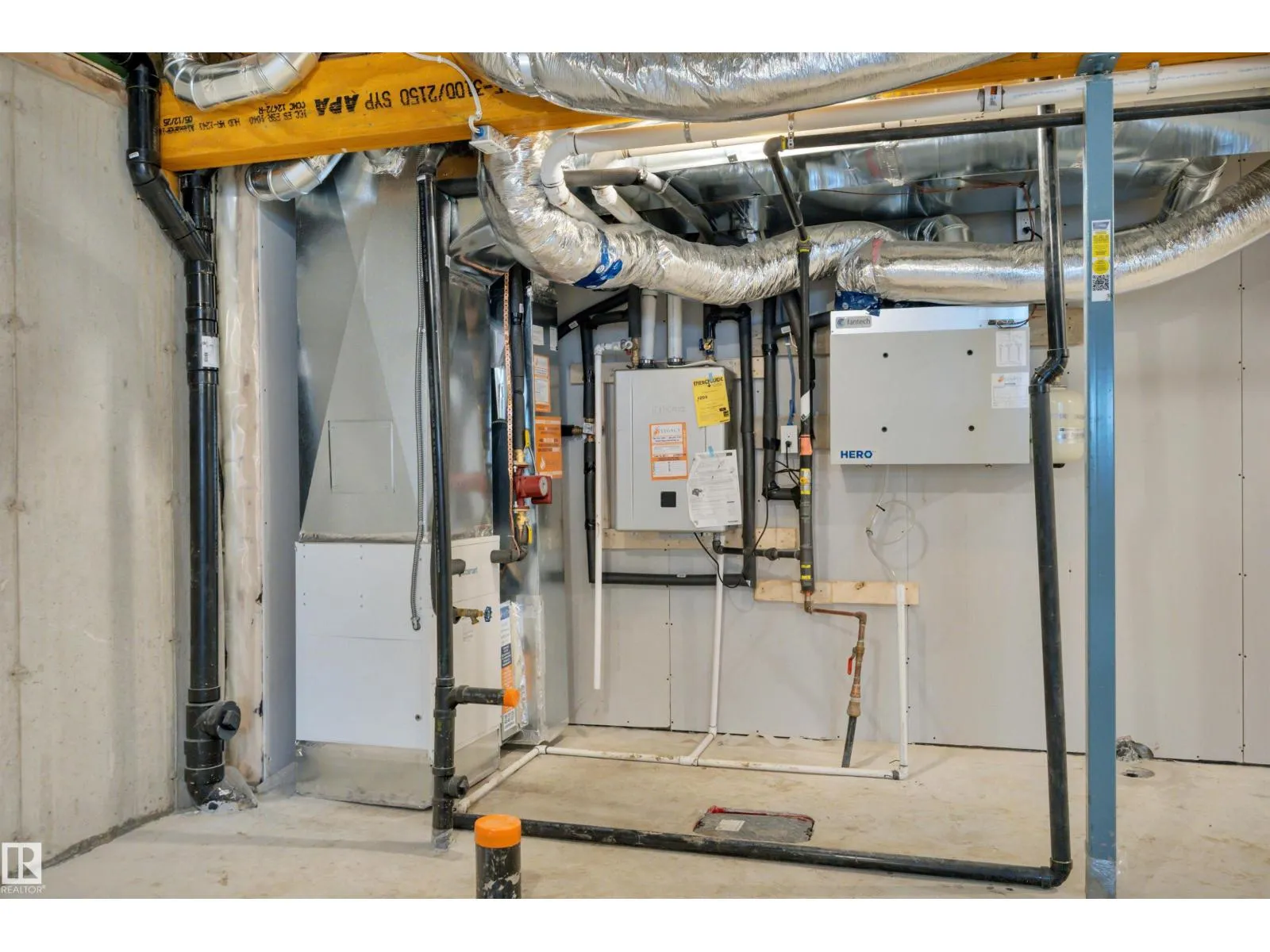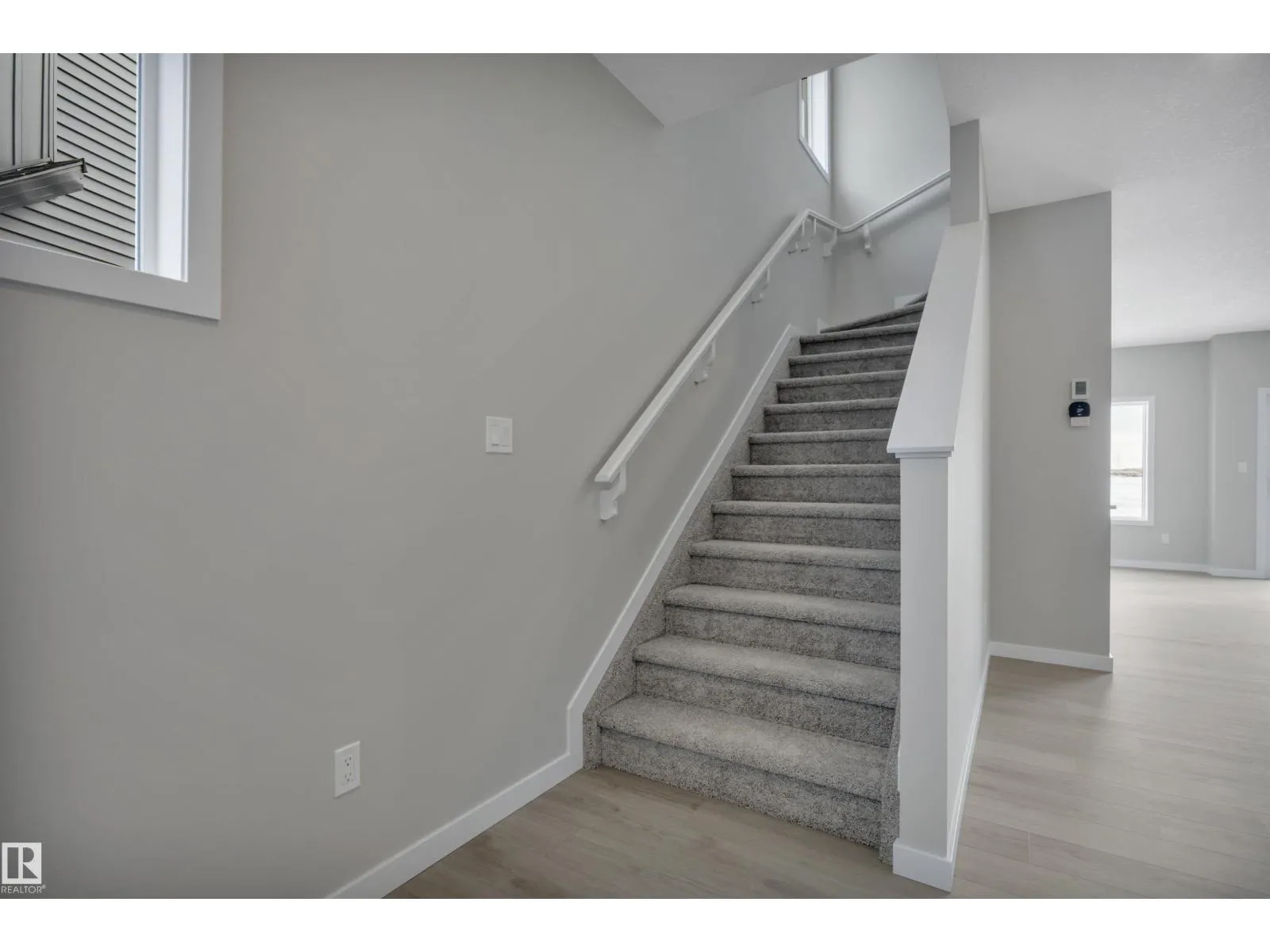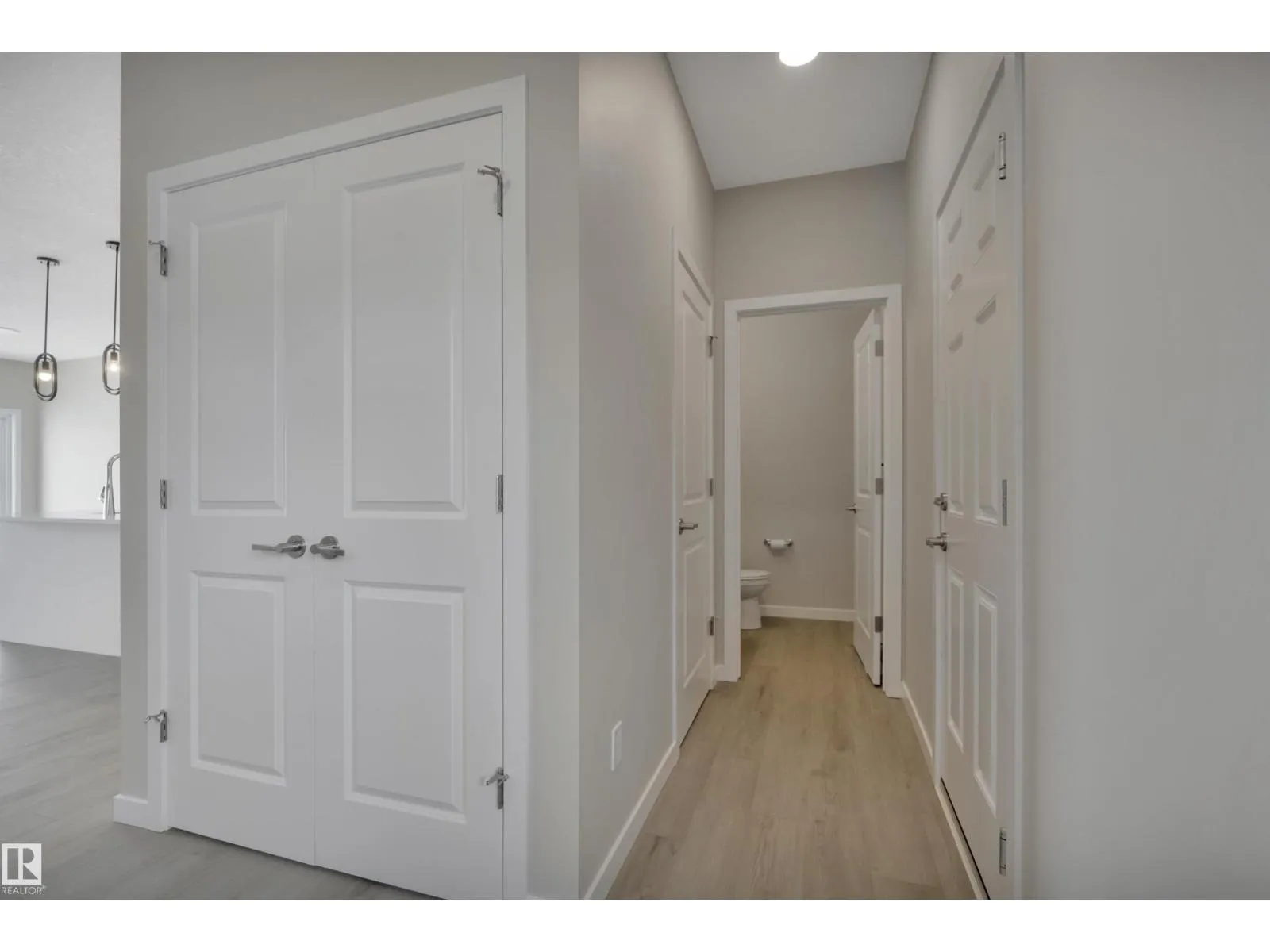 Welcome to sought after THE ORCHARDS and this BRAND NEW half duplex, with DOUBLE FRONT ATTACHED GARAGE and SEPARATE SIDE ENTRANCE. The Ashford by 35 yr builder Excel Homes offers a 2 storey at OVER 1600 sf of finished living space. Upon entering you're greeted with 9 FT CEILINGS, LVP flooring, open concept kitchen with STAINLESS STEEL APPLIANCES, QUARTZ COUNTERTOPS, PENDANT LIGHTING, adjacent nook and opening to the LARGE living area. Plenty of LIGHT in this home with all the windows. Half bath completes the main. Upstairs is carpeted, full main bath up, SPACIOUS Primary bedroom with full 4 piece ensuite, large walk in closet, 2 more LARGE bedrooms and laundry room finishes the upper floor. Home is GREEN BUILT, with tankless water system, HRV, Ecobee thermostat, upgraded insulation, energy star appliances, low E windows, low VOC paint, solar panel rough-in FRONT/BACK LANDSCAPING! Close to all amenities, Anthony Henday, public transportation, SOUTH COMMON, DON'T DELAY call this your new HOME TODAY! (id:27476)