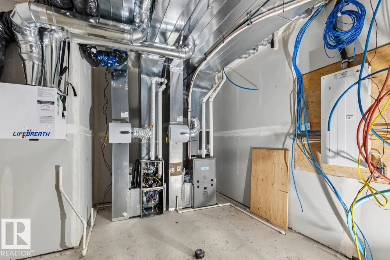 Thoughtfully designed one of a kind luxurious home in a highly desirable neighbourhood. Premium materials with meticulous construction, this unique two and a half storey home has been crafted with energy efficiency and the future in mind. Main floor features a Den/Office, half bathroom, and a custom kitchen with cabinetry designed for built in appliances. Second floor offers a primary bedroom with a luxurious ensuite and a large walk in closet with custom built-ins. Two additional bedrooms with walk in closets, a five piece main bathroom, large laundry room with cabinets with a sink. Fall in love with the third floor cathedral ceiling family room with access to your large Rooftop Patio with Downtown Skyline views. A half bathroom completes the third level. Basement is partially finished and roughed in for potential future development including a second furnace and HVAC, mechanical room drywalled, Framing and Plumbing drainage complete. Tankless water heater, 200A elect. service, landscaping and A.C incld. (id:27476)