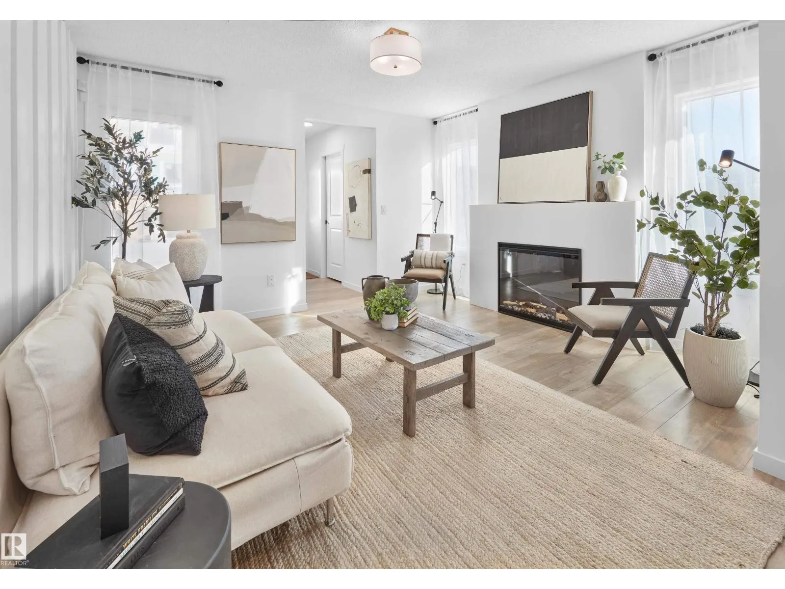 Welcome home to this brand new row house unit the âSage â Built by StreetSide Developments and is located in one of South West Edmonton's newest premier communities of Desrochers. With almost 1100 square Feet, it comes with front yard landscaping and a single over sized rear detached parking pad. This opportunity is perfect for a young family or young couple. Your main floor is complete with upgrade luxury Vinyl Plank flooring throughout the great room and the kitchen. Highlighted in your new kitchen are upgraded cabinet and a tile back splash. The upper level has 3 bedrooms and 2 full bathrooms. This home also comes with a unfinished basement perfect for a future development. ***Home is under construction and the photos are of the show home colors and finishing's may vary, will be complete by June and photos will be updated *** (id:27476)