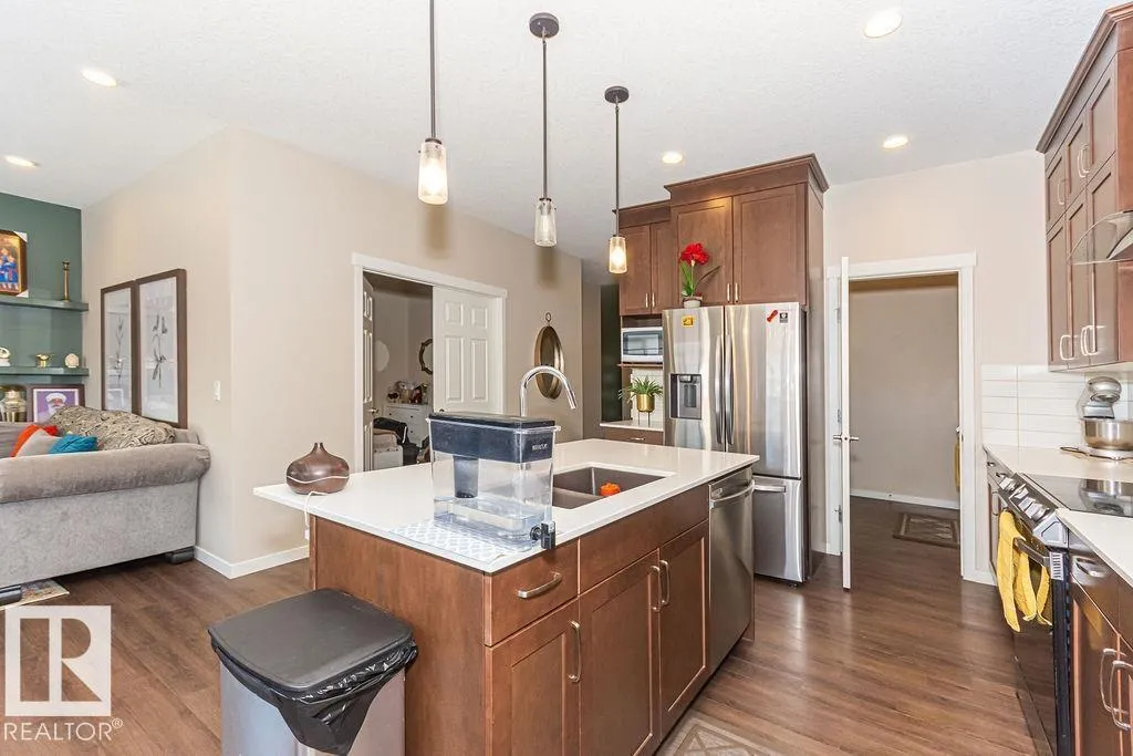 This exquisite former 2 storey SHOWHOME in Laurel will leave you breathless. Designed w/ elegance & functionality, offering 7 bdrms & 5 bths and over 3600 square foot of living space. Entering you will be greeted by the Stunning open-to-below iving area, dining room, main-floor bedroom with full bath, stylish chefâs kitchen, and HUGE SPICE KITCHEN with SS appliances to-the-ceiling cabinetry & plenty of storage. The family room with fireplace overlooking the back yard completes the main floor. Upstairs, the primary suite impresses w/ coffered ceilings, spacious walk-in closet & luxurious 5pc ensuite. Plus second bdrm w/ its own 4pc ensuite, additional bedroom & bathroom, laundry room & large bonus room for family movie nights or a play area. The basement hosts a SECOND kitchen, SECOND living space, 2 bedrooms with separate laundry, and stainless appliances, perfect for multigenerational families. This home is a must see! (id:27476)