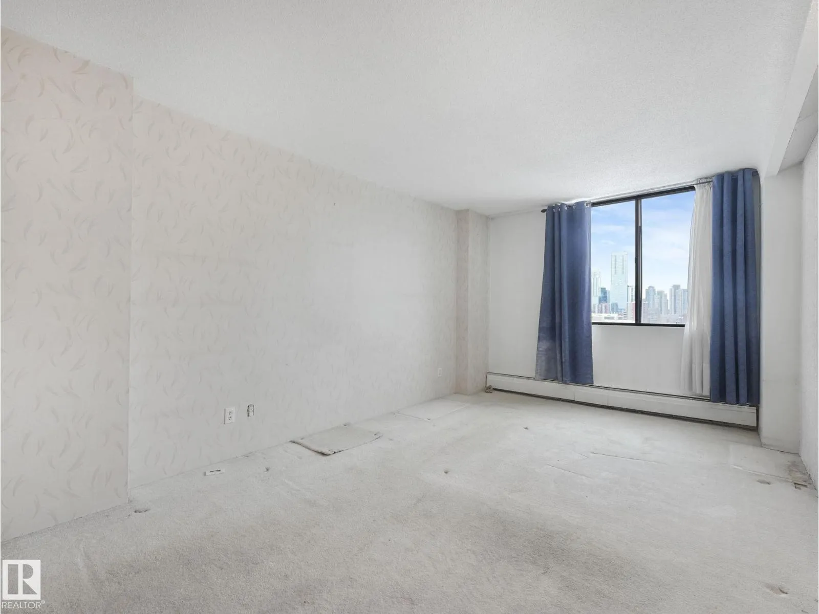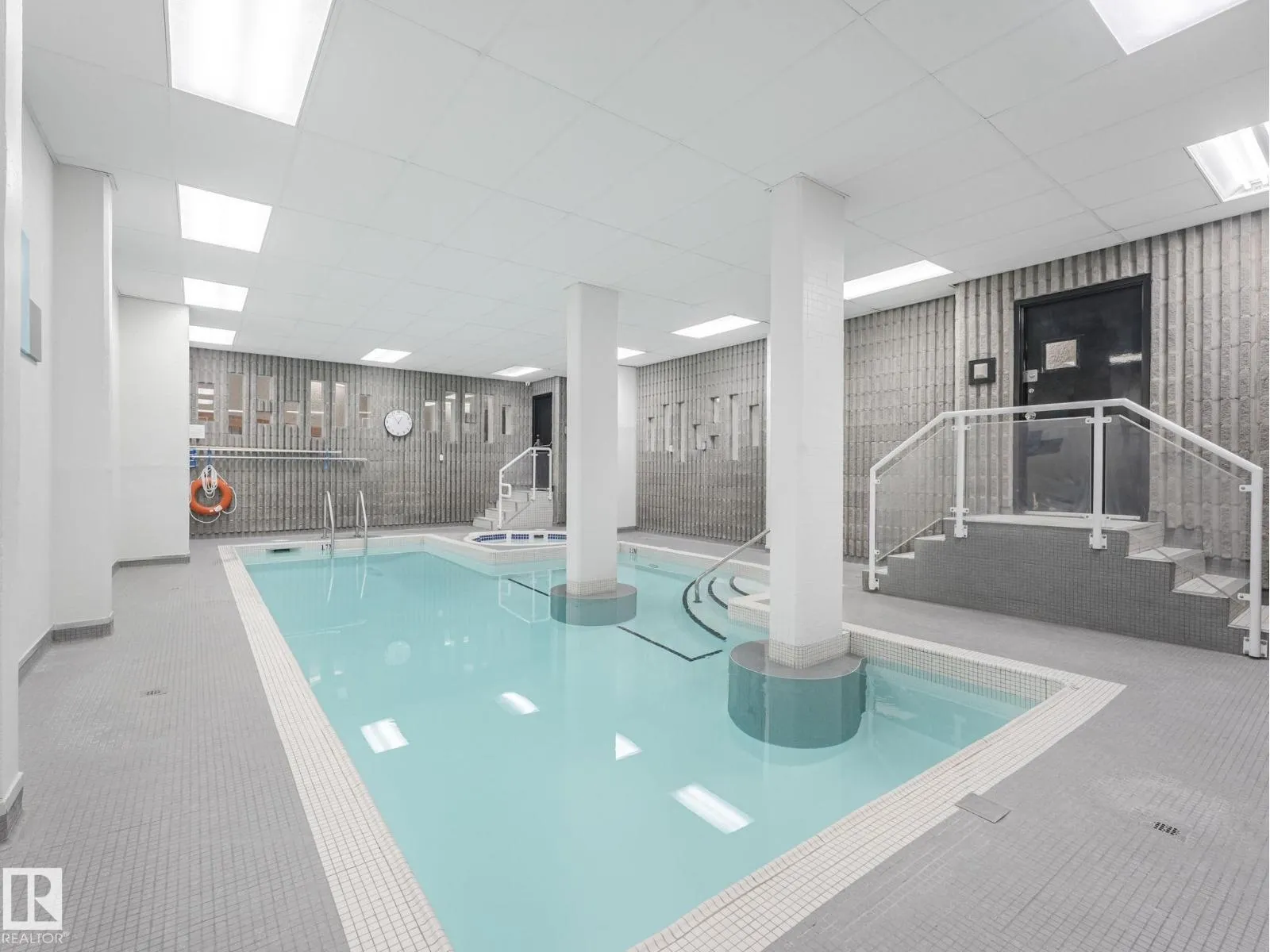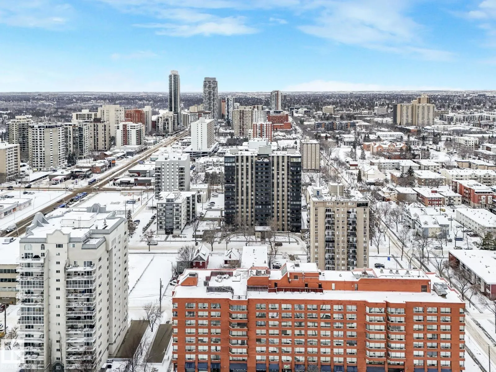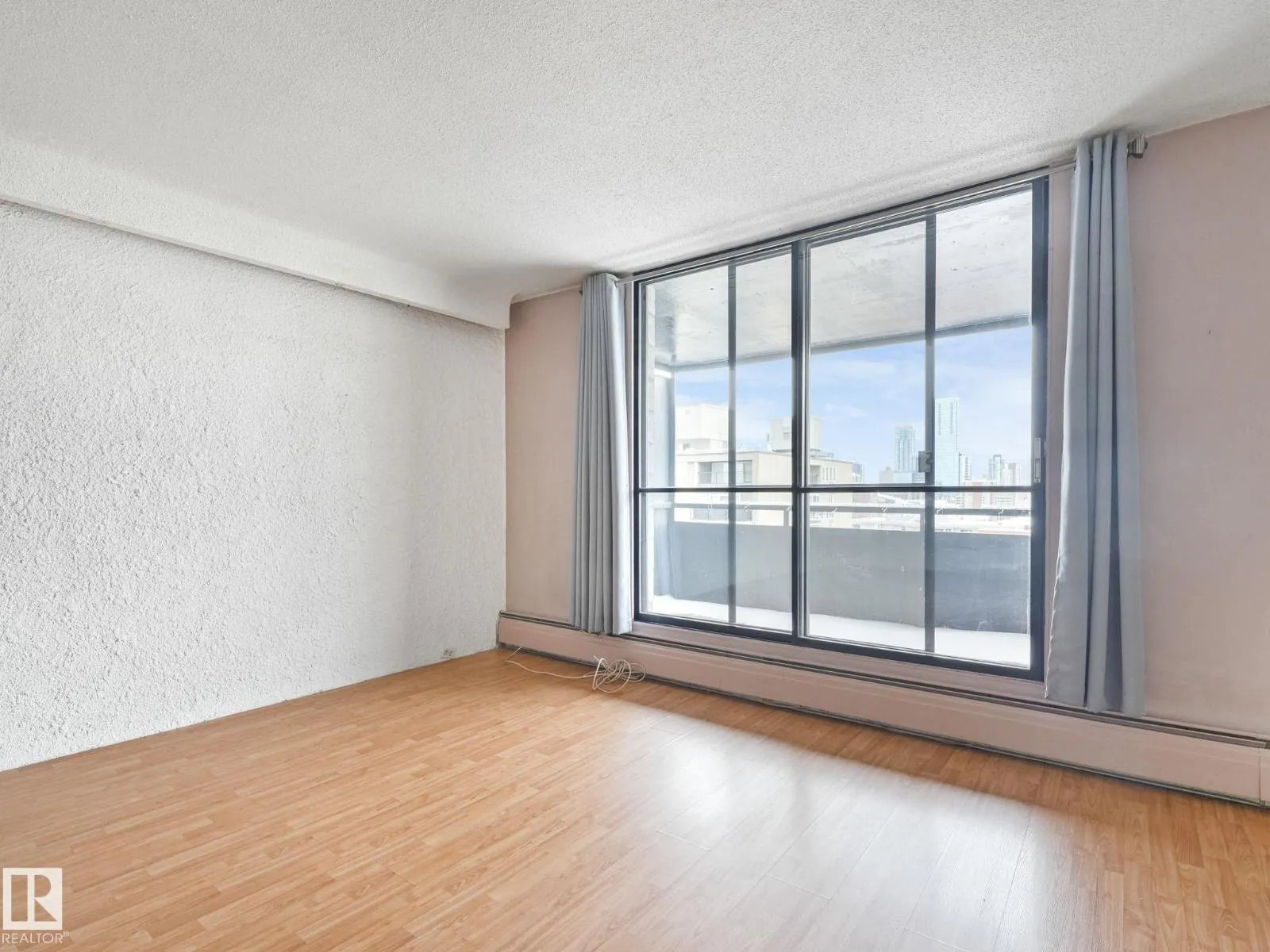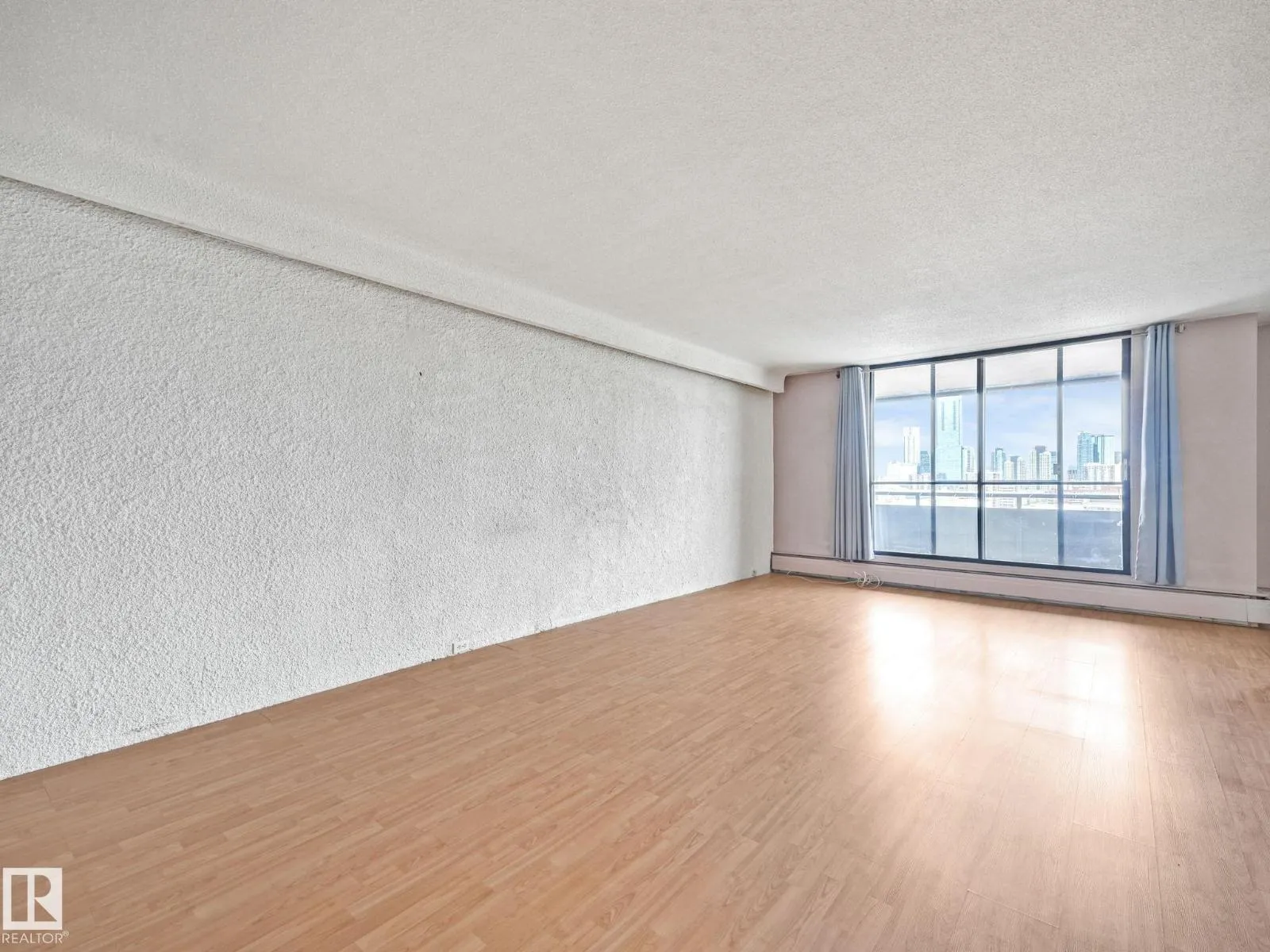 Make yourself at home at HYDE PARK, where exceptional resort-style amenities elevate everyday living. Enjoy access to an indoor & outdoor pool, hot tub, dry & steam saunas, fitness centre, tennis court, games/social room, guest suite, and a outdoor patio with BBQ space. This 14th-floor, east-facing unit offers 1,000 sq. ft. with 2 bedrooms & 1.5 bathrooms. The main bath has been updated with a high-end walk-in tub, shower surround & modern faucet. The rest of the unit is ready for a full renovation & offers an excellent opportunity to customize to your vision. A generously sized living room, galley kitchen & in-suite laundry provide for optimum comfort. Step outside to the expansive balcony & take in the stunning downtown skyline views. The property also includes one heated underground parking stall and a separate indoor storage cage for added convenience. Ideally located just steps from Jasper Ave & the River Valley, youâll have easy access to shops, cafés, nightlife & Edmontonâs trail system. (id:27476)