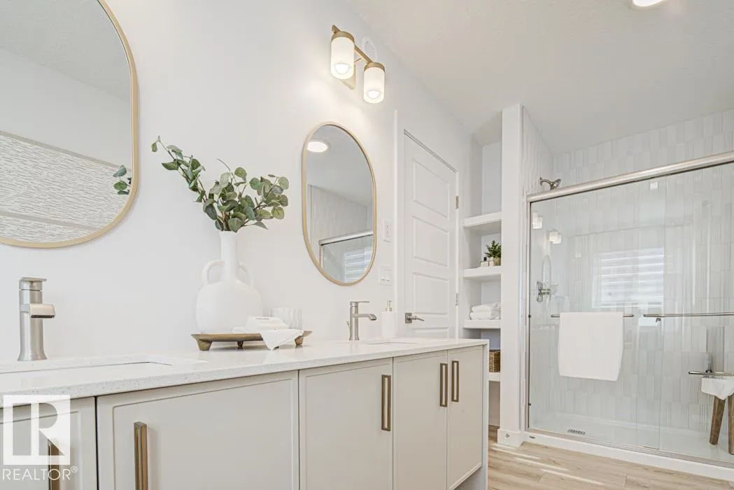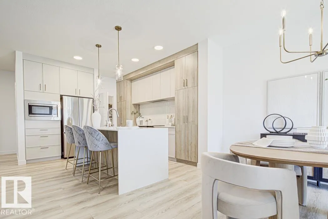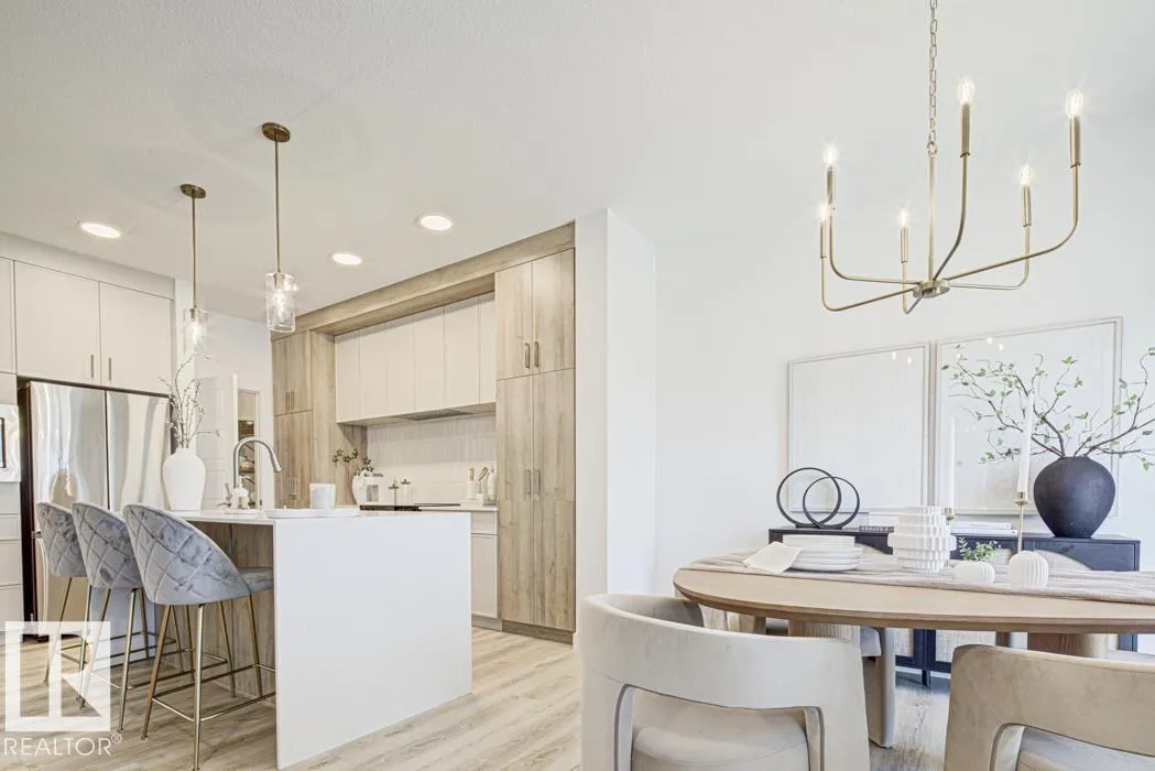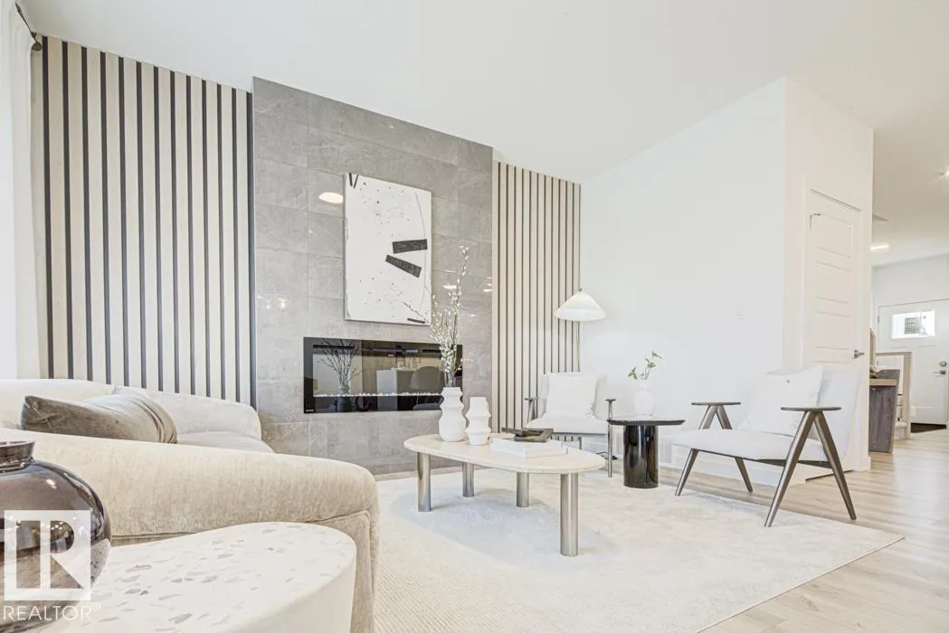 Built by Sterling Homes, this beautifully designed front-attached home in Marquis blends modern comfort with an effortless, family-friendly layout in a peaceful community surrounded by nature. Triple-pane windows and 9â ceilings brighten the main floor, where a welcoming foyer flows into a stunning rear-living space anchored by an electric fireplace. The kitchen offers designer appeal with quartz countertops, a spacious island with pendant lighting, ceiling-height cabinetry, and a full-height tile backsplash. A generous walk-through pantry connects directly to the mudroom and oversized garage for easy grocery drop-offs. Upstairs, the bright primary suite features a substantial walk-in closet and a finished ensuite with double sinks and a glass-door shower. A central bonus room creates a versatile second living space, joined by two additional bedrooms and upper-floor laundry. This home delivers style and function in one of Northeast Edmontonâs most up-and-coming neighborhoods. (id:27476)