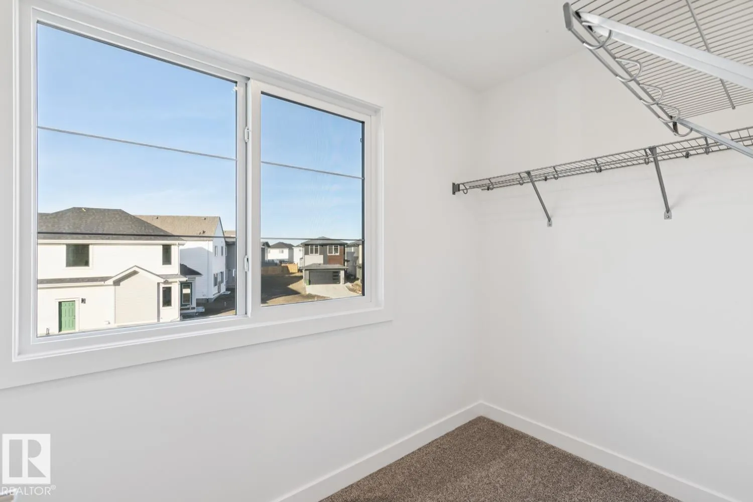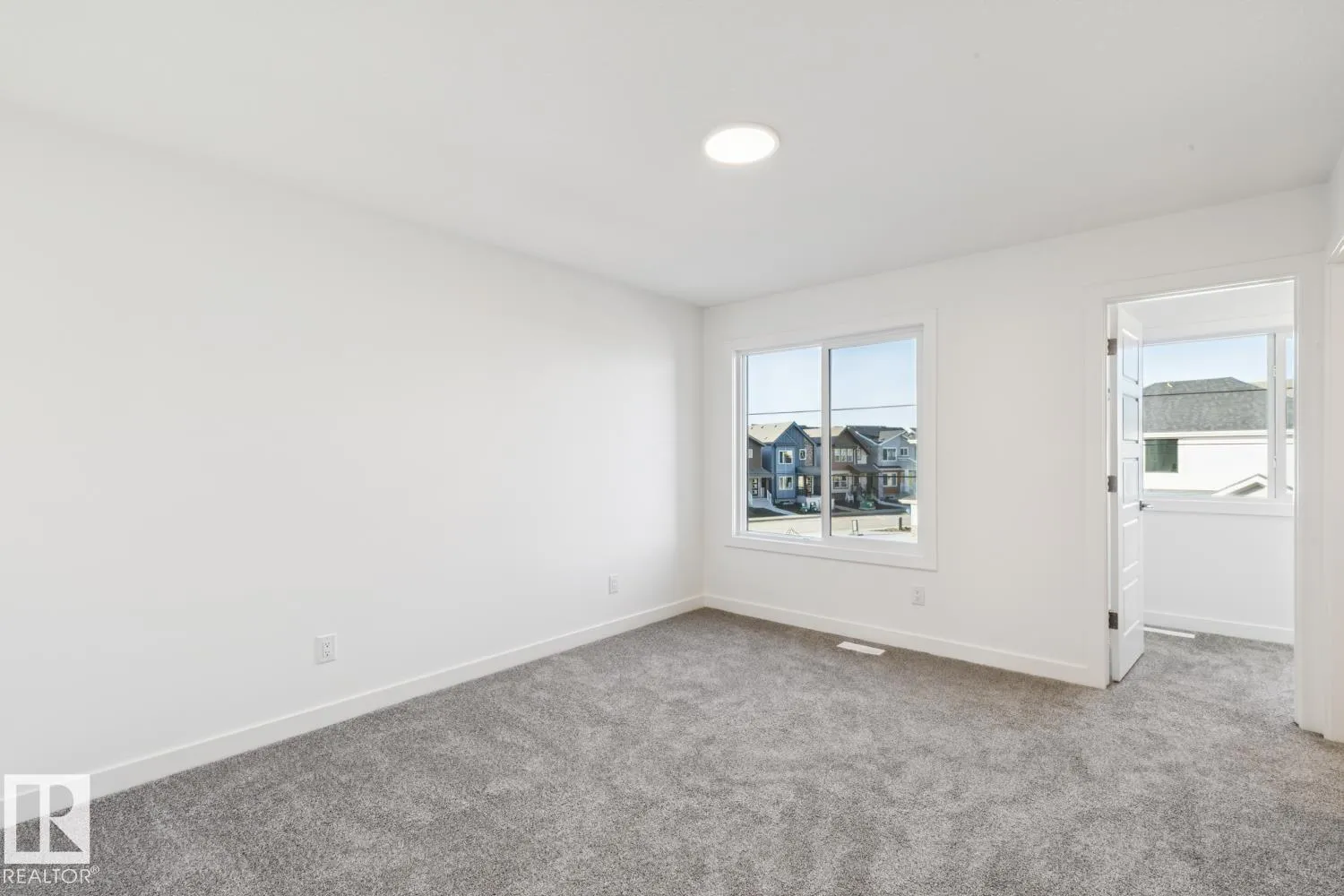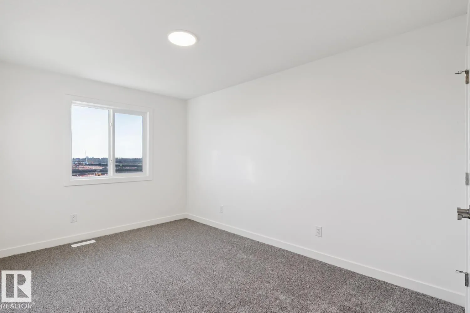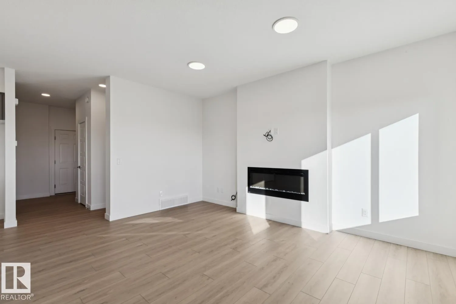 Built by Sterling Homes, this bright front-attached home in Rivers Edge blends modern style with a family-friendly layout near scenic river valley trails. Triple pane windows and 9â ceilings enhance the open main floor, where a welcoming foyer leads to a spacious great room with electric fireplace and large rear windows. The kitchen features quartz countertops, a generous island with seating, upgraded cabinetry, full-height backsplash, built-in microwave, chimney hood fan, and corner pantry. Upstairs offers a central bonus room, upper laundry, and a primary suite with walk-in closet and 4-piece ensuite with double sinks and glass shower. Complete with luxury vinyl plank flooring, upgraded railings, separate side entrance, double attached garage with floor drain, and basement rough-ins. (id:27476)