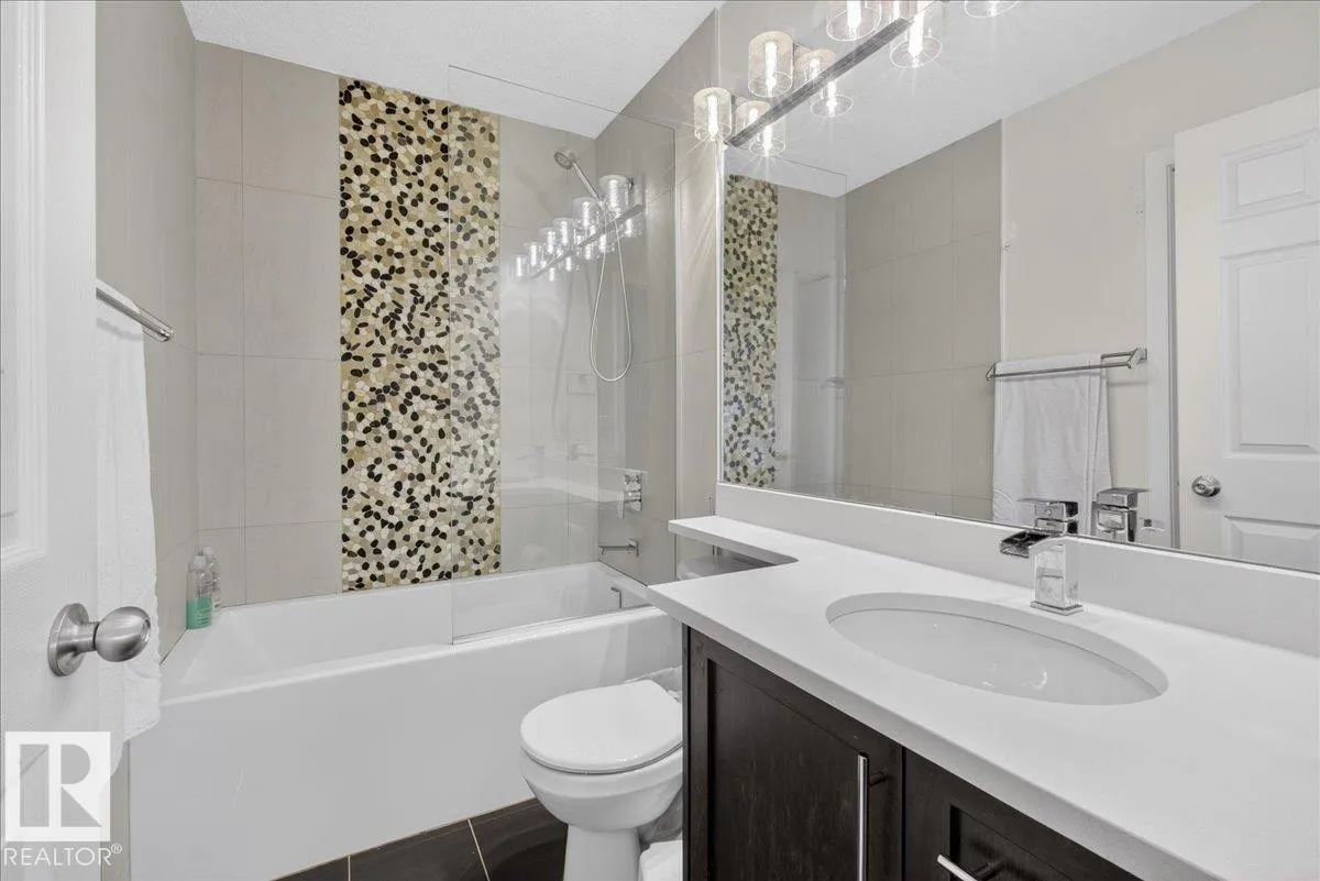 Nestled in a quiet keyhole crescent in Terwillegar Towne, sits this fully finished 2-storey home on an oversized pie lot. The main floor welcomes you with a spacious living room, kitchen and half bathroom. Here dinner is prepared, homework is solved, and movie night is never without fresh popcorn. Upstairs you will find 3 bedrooms and 2 updated bathrooms, including the beautifully tiled shower in the master ensuite. The fully finished basement includes a 4th bedroom complete with its own ensuite, laundry room, and living room/gym/office/playroom. The corner-wall storage unit can be removed to create more room for activities. Outside, find the west facing Pie shaped yard fully landscaped and complete with playhouse, shed, insulated Double garage and a sizeable deck ready for grilling season. Recent work includes: NEW ROOF with added insulation. This home is walking distance to incredible parks, schools, shopping, Terwillegar Rec Centre and the cities freeways. When can we move you in? (id:27476)