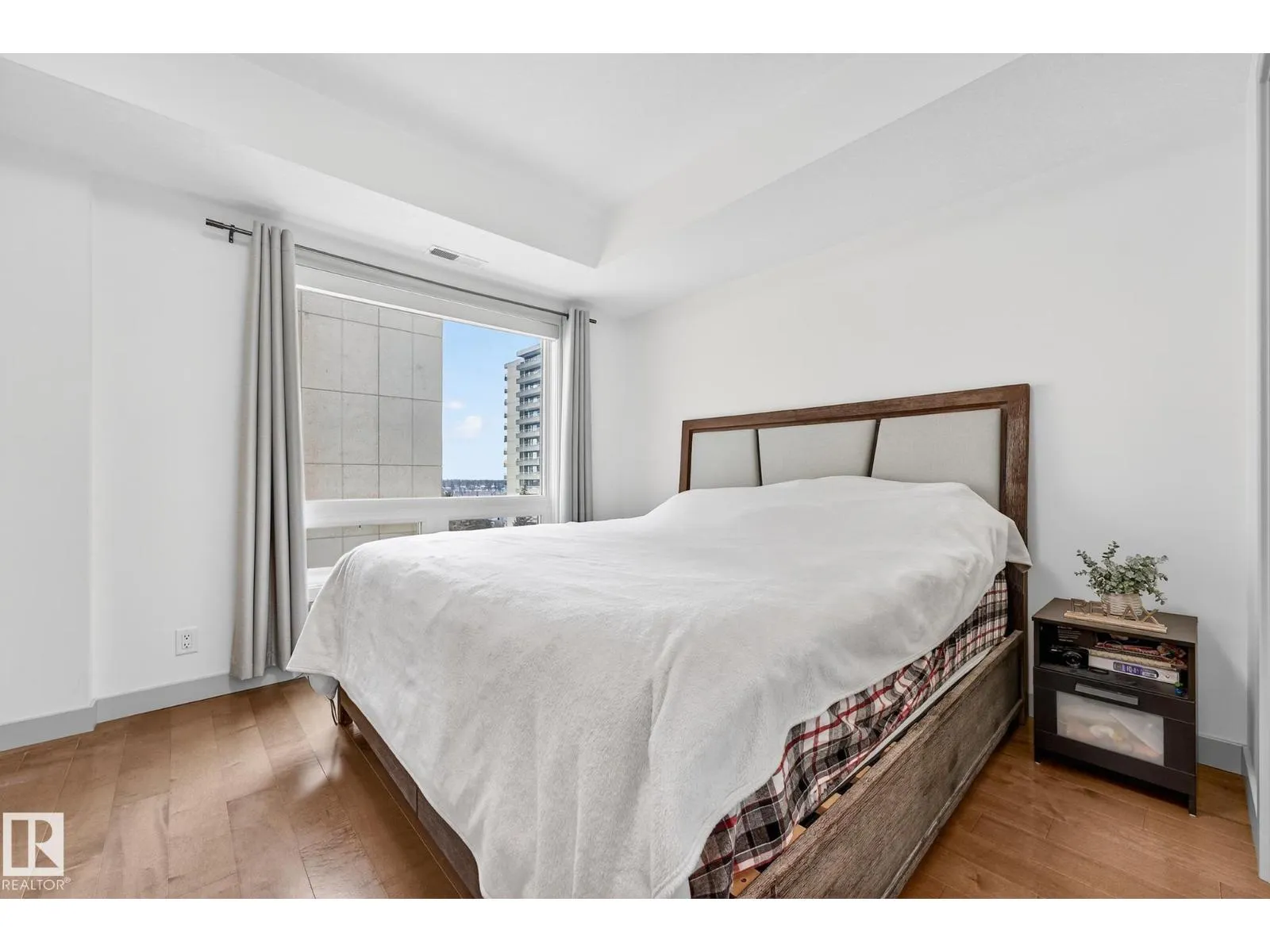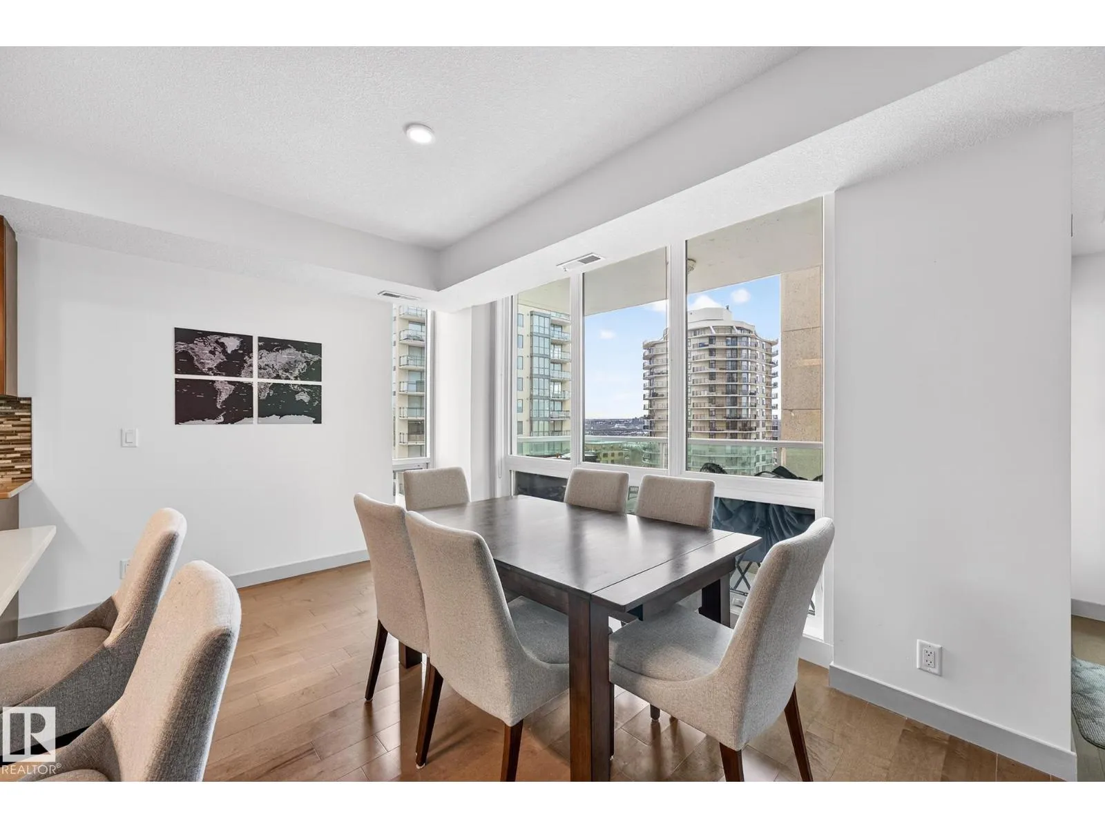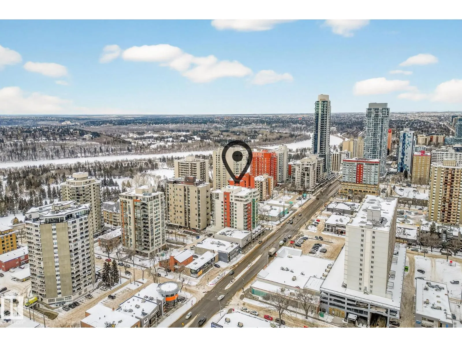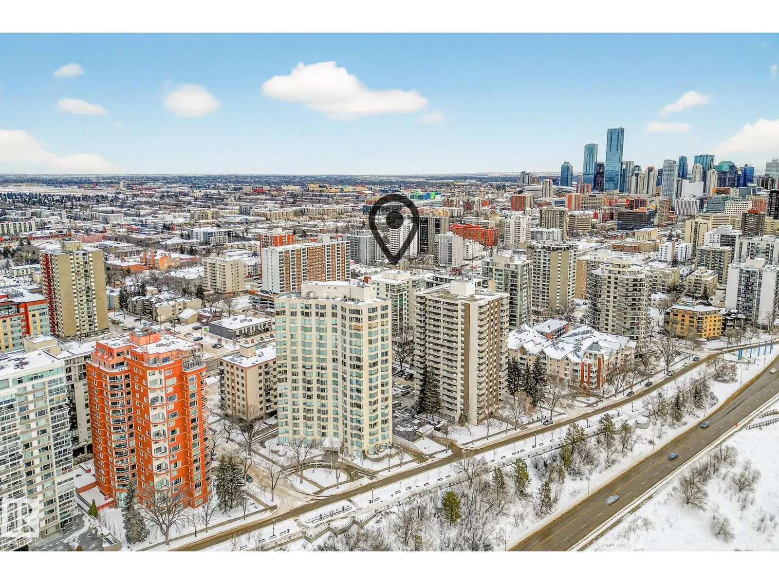 Enjoy URBAN LIVING in this 1223 sq.ft 2 BED+VERSATILE DEN & 2 BATH AIR-CONDITIONED CORNER UNIT in the SERENITY, one of Edmonton's most desirable CONCRETE & STEEL buildings. Located just off of Jasper Ave, you are steps to the river valley, Victoria Promenade, coffee shops, fabulous dining, shopping and close to the U of A & so much more. With FLOOR TO CEILING WINDOWS, this BRIGHT, MODERN open layout home with 9 FT CEILINGS offers PHENOMENAL DOWNTOWN & RIVER VALLEY VIEWS. The spacious front foyer leads to the EXPANSIVE living & dining room with SOUTH facing windows & balcony with river valley views. The sleek kitchen features espresso cabinets, s/s appliances, quartz counters & a huge island. Both bedrooms are an opposite sides of the unit for added privacy & the primary bedroom has a large walk-in closet & 3pc ensuite. Rounding off the unit is a 4pc bath, INSUITE LAUNDRY, and a den that can be utilized as a home office or storage room. AND it comes with TWO TITLED UNDERGROUND PARKING STALLS! (id:27476)