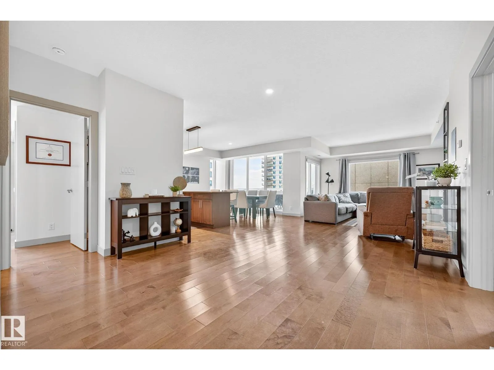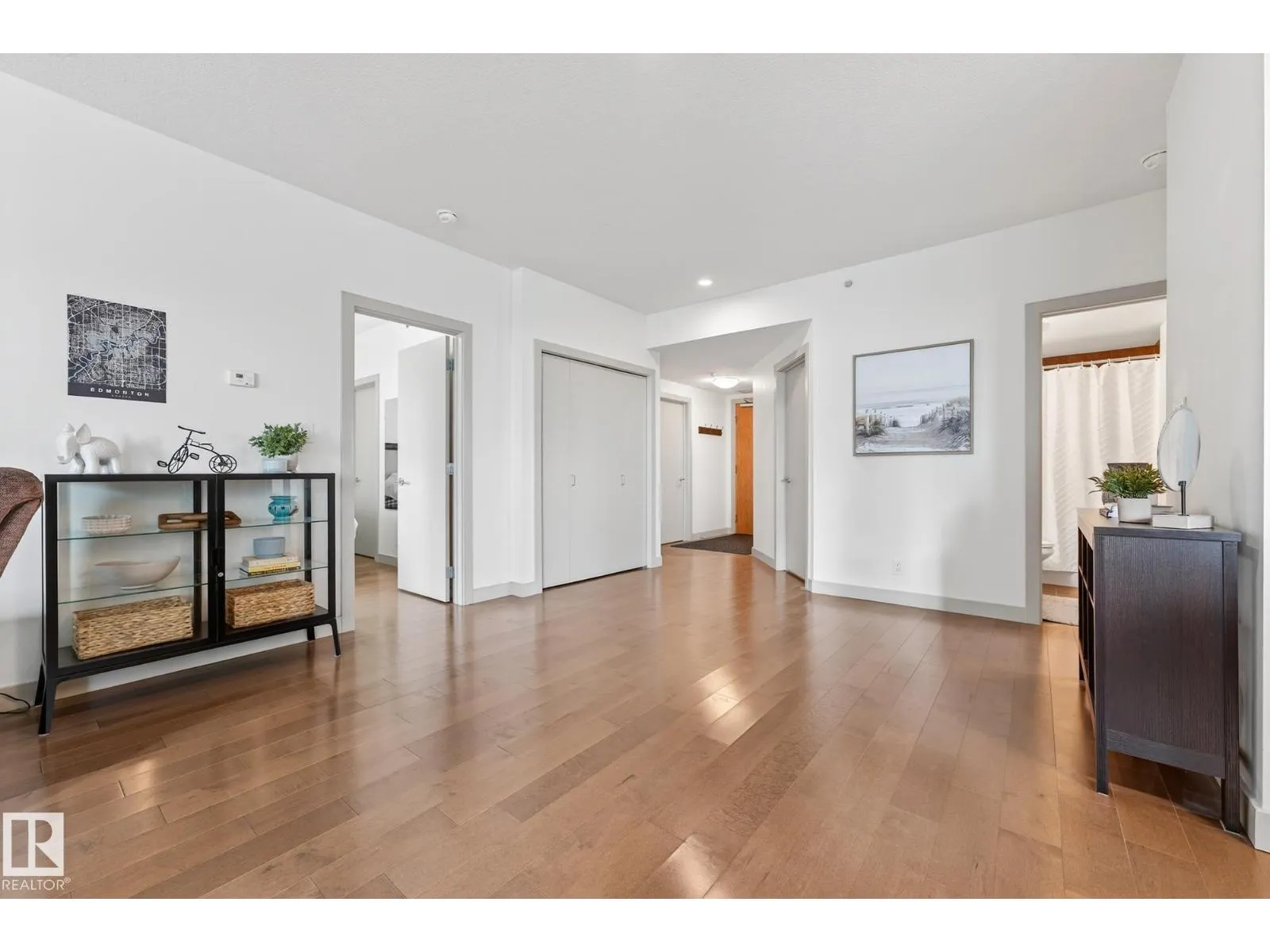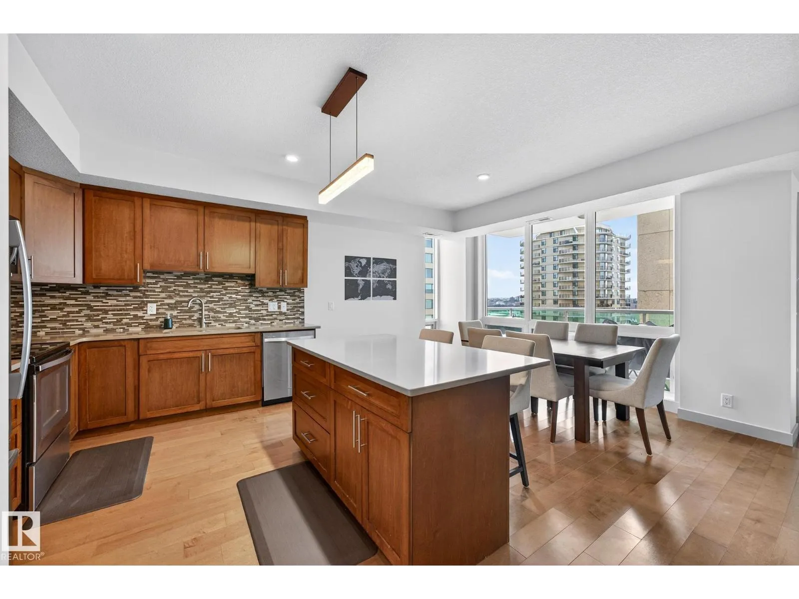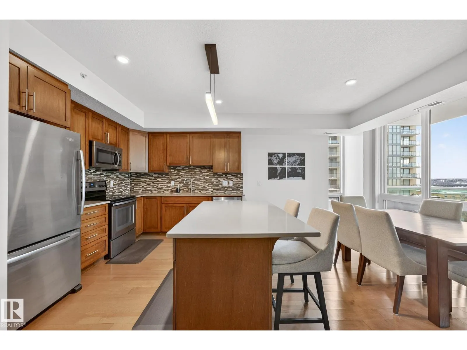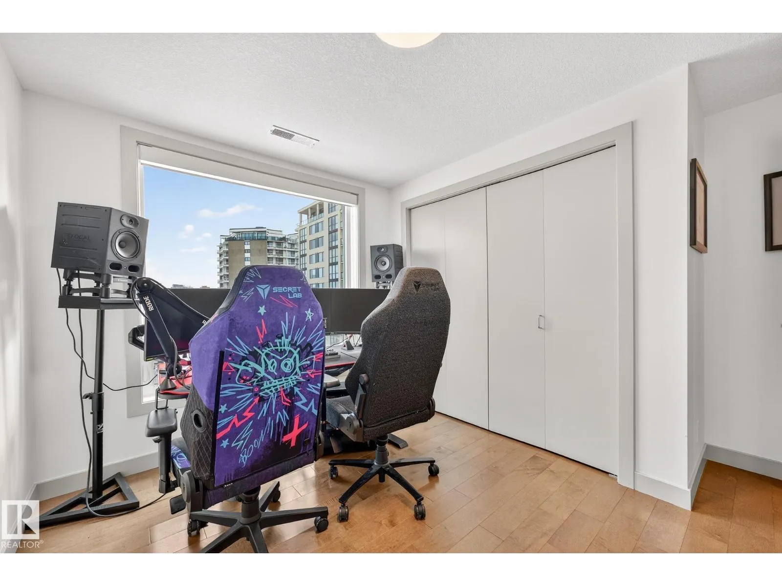 Enjoy URBAN LIVING in this 1223 sq.ft 2 BED+VERSATILE DEN & 2 BATH AIR-CONDITIONED CORNER UNIT in the SERENITY, one of Edmonton's most desirable CONCRETE & STEEL buildings. Located just off of Jasper Ave, you are steps to the river valley, Victoria Promenade, coffee shops, fabulous dining, shopping and close to the U of A & so much more. With FLOOR TO CEILING WINDOWS, this BRIGHT, MODERN open layout home with 9 FT CEILINGS offers PHENOMENAL DOWNTOWN & RIVER VALLEY VIEWS. The spacious front foyer leads to the EXPANSIVE living & dining room with SOUTH facing windows & balcony with river valley views. The sleek kitchen features espresso cabinets, s/s appliances, quartz counters & a huge island. Both bedrooms are an opposite sides of the unit for added privacy & the primary bedroom has a large walk-in closet & 3pc ensuite. Rounding off the unit is a 4pc bath, INSUITE LAUNDRY, and a den that can be utilized as a home office or storage room. AND it comes with TWO TITLED UNDERGROUND PARKING STALLS! (id:27476)