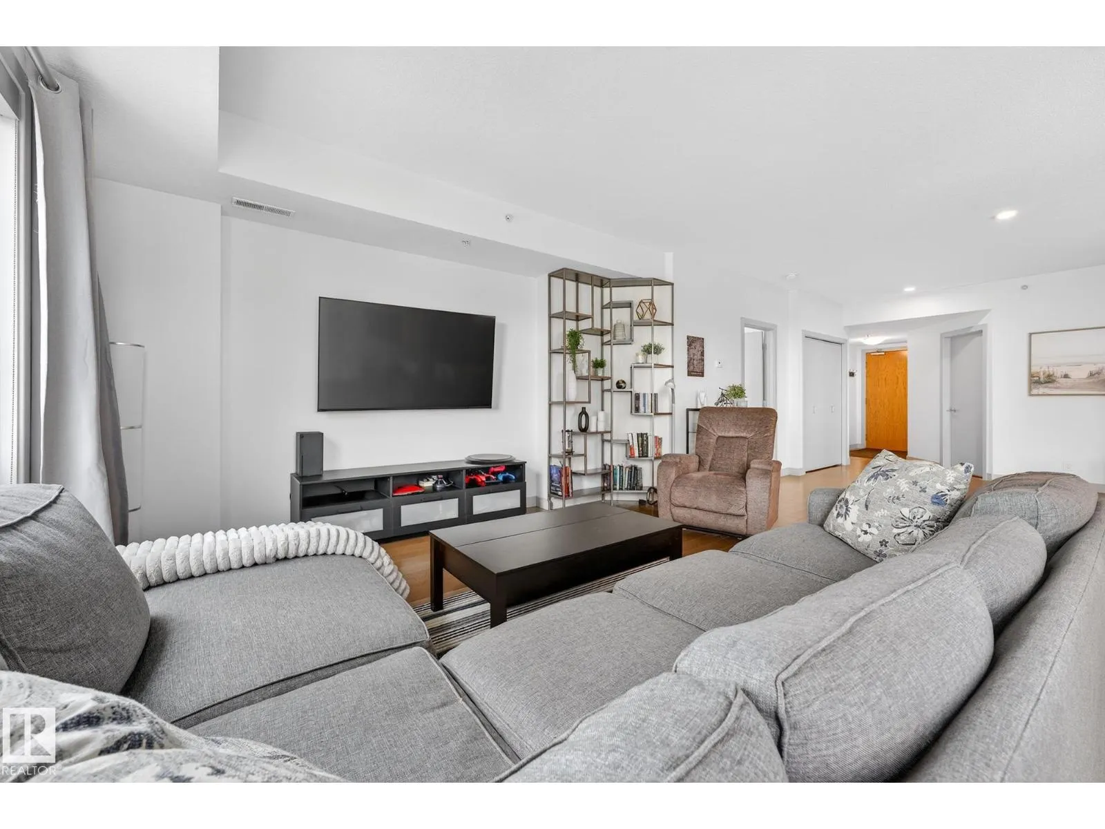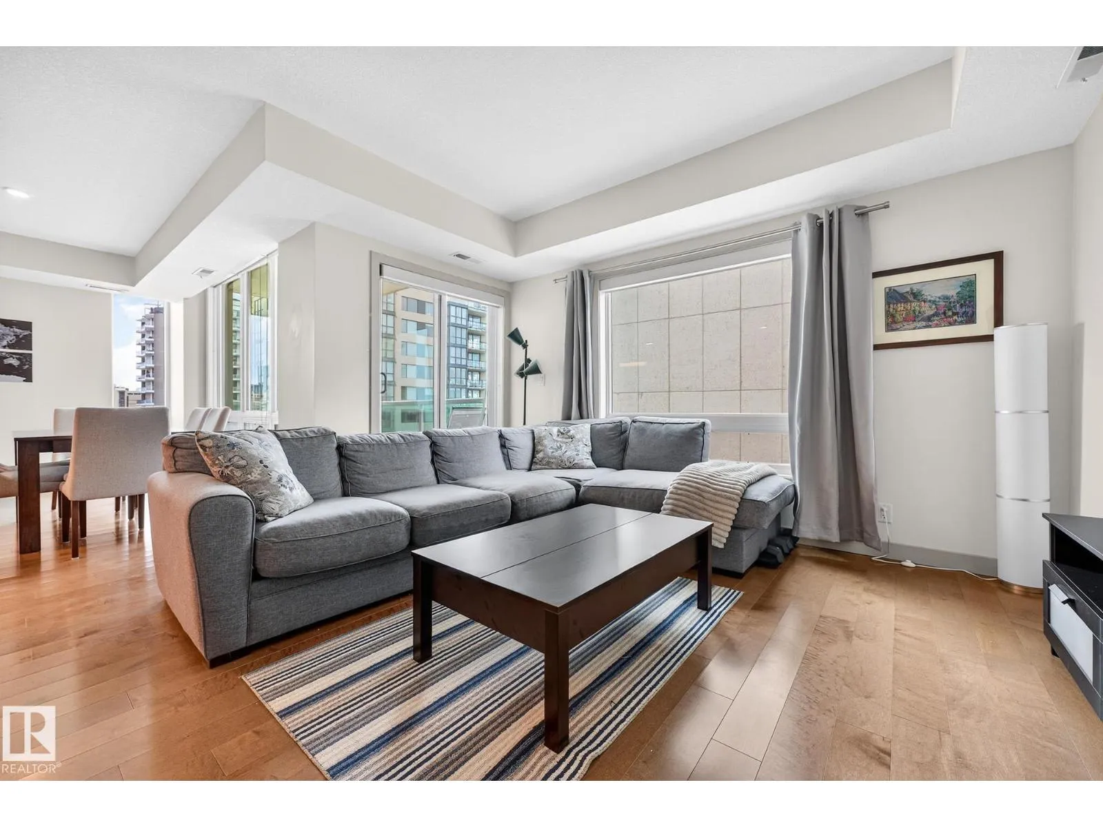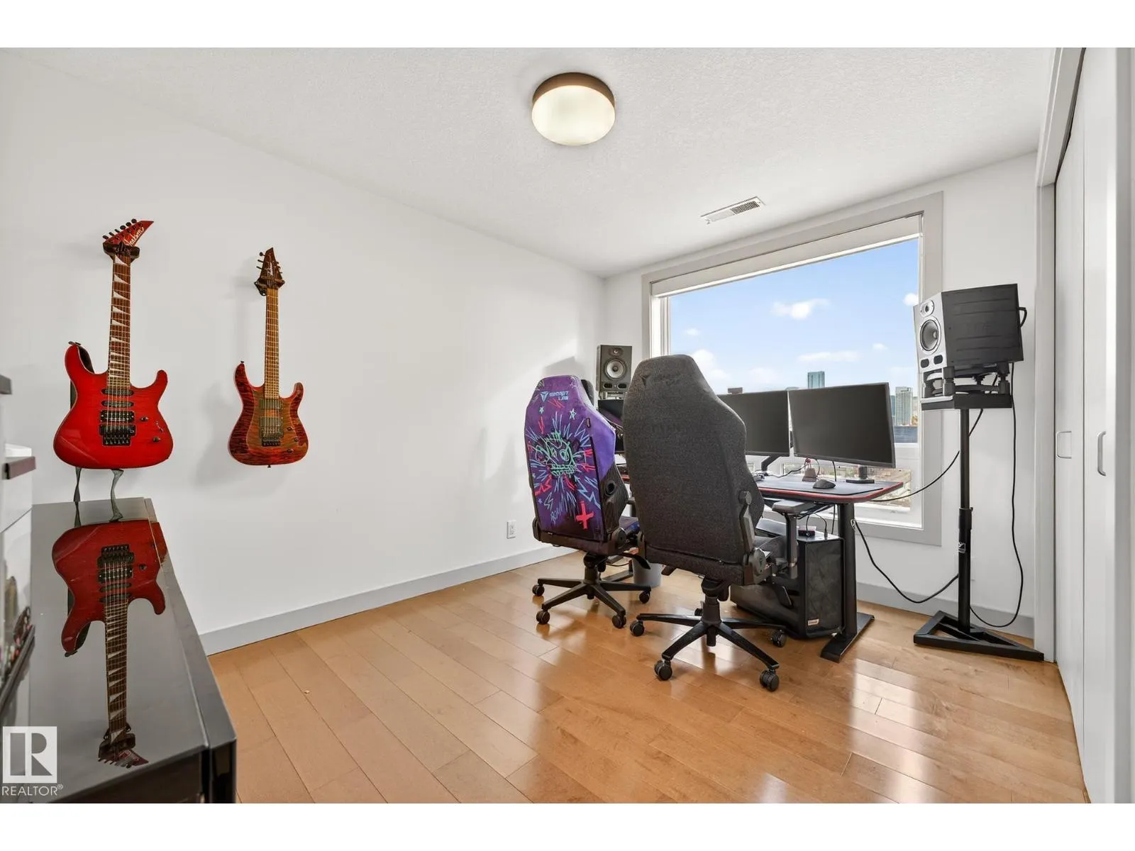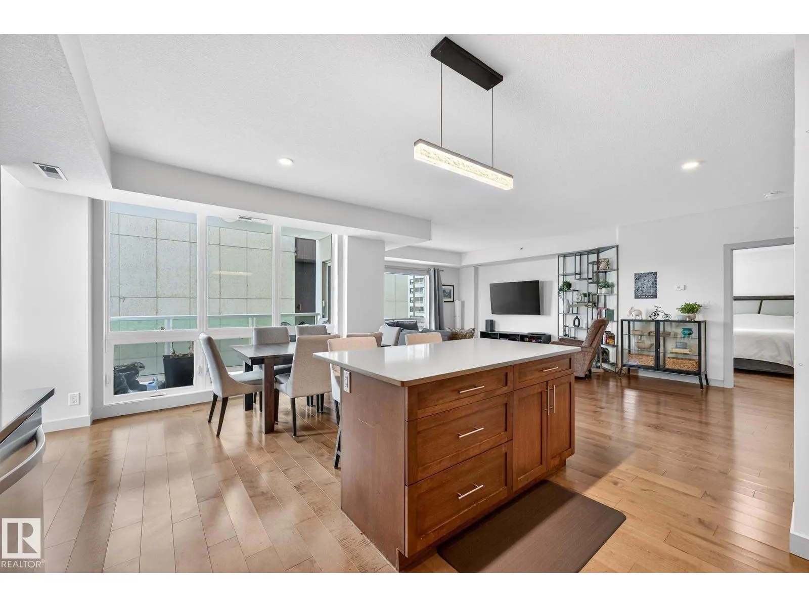 Enjoy URBAN LIVING in this 1223 sq.ft 2 BED+VERSATILE DEN & 2 BATH AIR-CONDITIONED CORNER UNIT in the SERENITY, one of Edmonton's most desirable CONCRETE & STEEL buildings. Located just off of Jasper Ave, you are steps to the river valley, Victoria Promenade, coffee shops, fabulous dining, shopping and close to the U of A & so much more. With FLOOR TO CEILING WINDOWS, this BRIGHT, MODERN open layout home with 9 FT CEILINGS offers PHENOMENAL DOWNTOWN & RIVER VALLEY VIEWS. The spacious front foyer leads to the EXPANSIVE living & dining room with SOUTH facing windows & balcony with river valley views. The sleek kitchen features espresso cabinets, s/s appliances, quartz counters & a huge island. Both bedrooms are an opposite sides of the unit for added privacy & the primary bedroom has a large walk-in closet & 3pc ensuite. Rounding off the unit is a 4pc bath, INSUITE LAUNDRY, and a den that can be utilized as a home office or storage room. AND it comes with TWO TITLED UNDERGROUND PARKING STALLS! (id:27476)