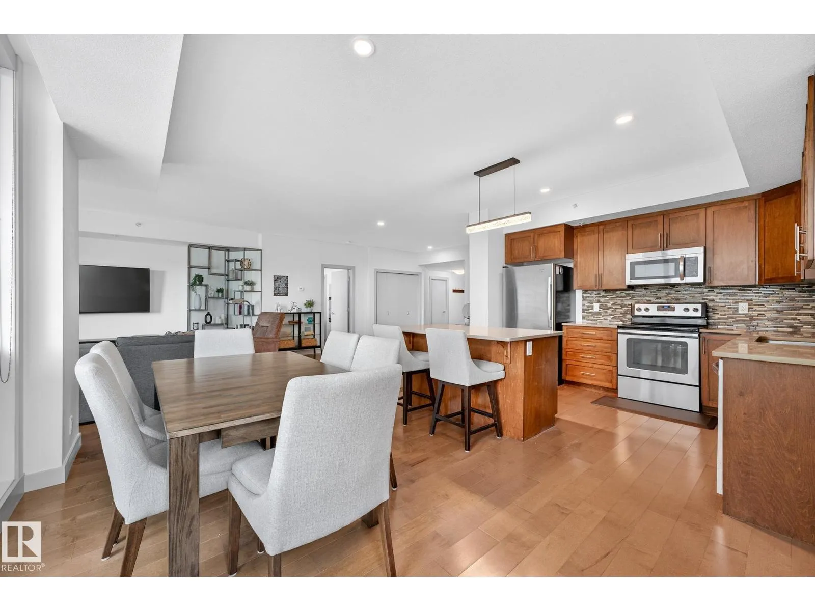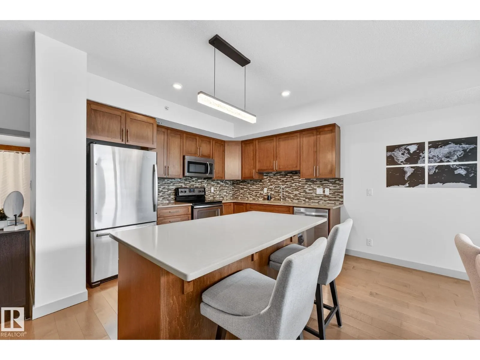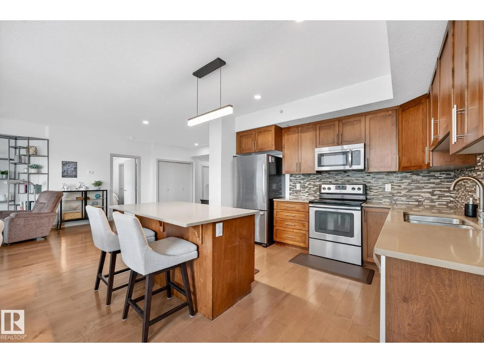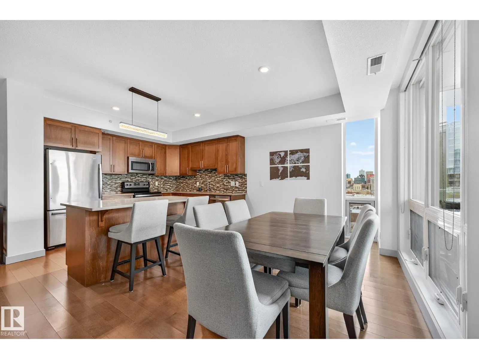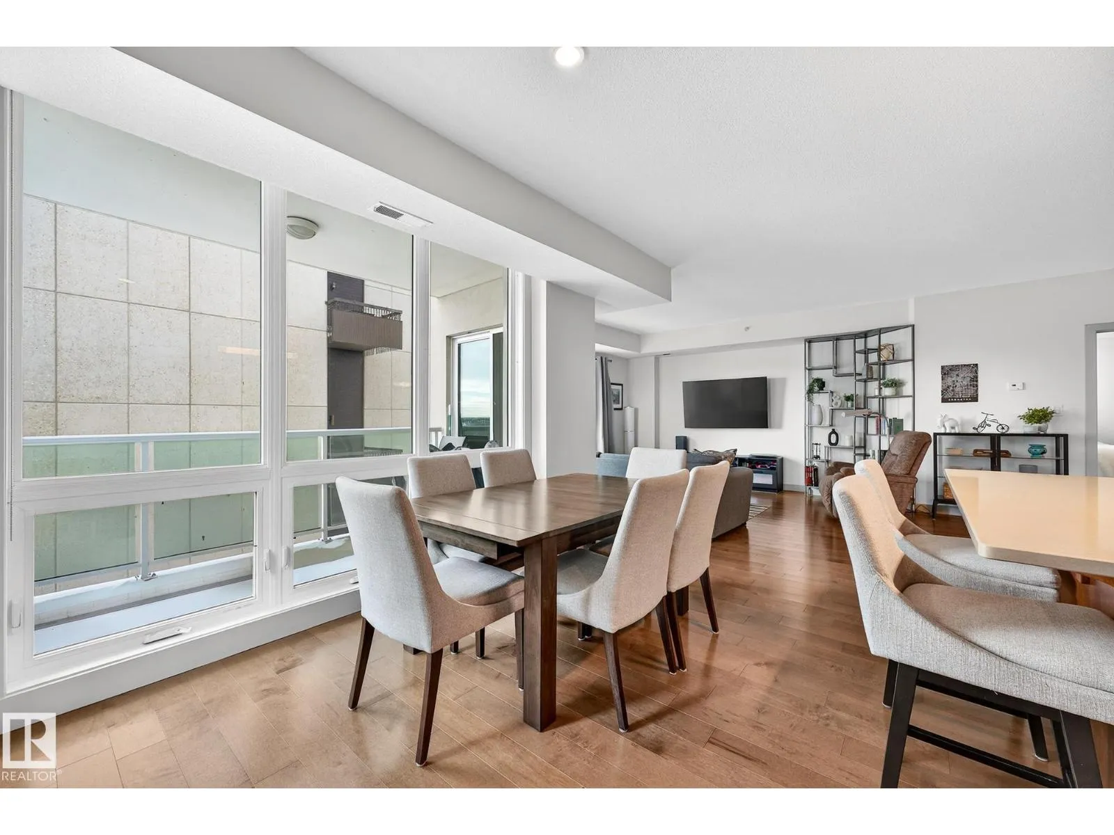 Enjoy URBAN LIVING in this 1223 sq.ft 2 BED+VERSATILE DEN & 2 BATH AIR-CONDITIONED CORNER UNIT in the SERENITY, one of Edmonton's most desirable CONCRETE & STEEL buildings. Located just off of Jasper Ave, you are steps to the river valley, Victoria Promenade, coffee shops, fabulous dining, shopping and close to the U of A & so much more. With FLOOR TO CEILING WINDOWS, this BRIGHT, MODERN open layout home with 9 FT CEILINGS offers PHENOMENAL DOWNTOWN & RIVER VALLEY VIEWS. The spacious front foyer leads to the EXPANSIVE living & dining room with SOUTH facing windows & balcony with river valley views. The sleek kitchen features espresso cabinets, s/s appliances, quartz counters & a huge island. Both bedrooms are an opposite sides of the unit for added privacy & the primary bedroom has a large walk-in closet & 3pc ensuite. Rounding off the unit is a 4pc bath, INSUITE LAUNDRY, and a den that can be utilized as a home office or storage room. AND it comes with TWO TITLED UNDERGROUND PARKING STALLS! (id:27476)