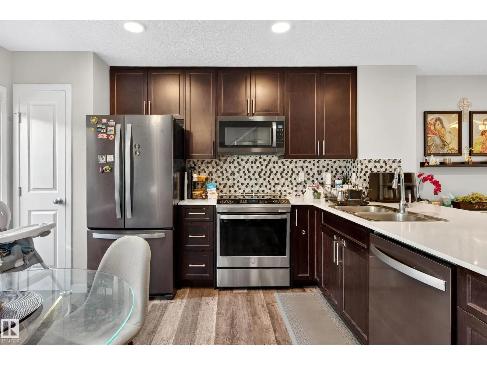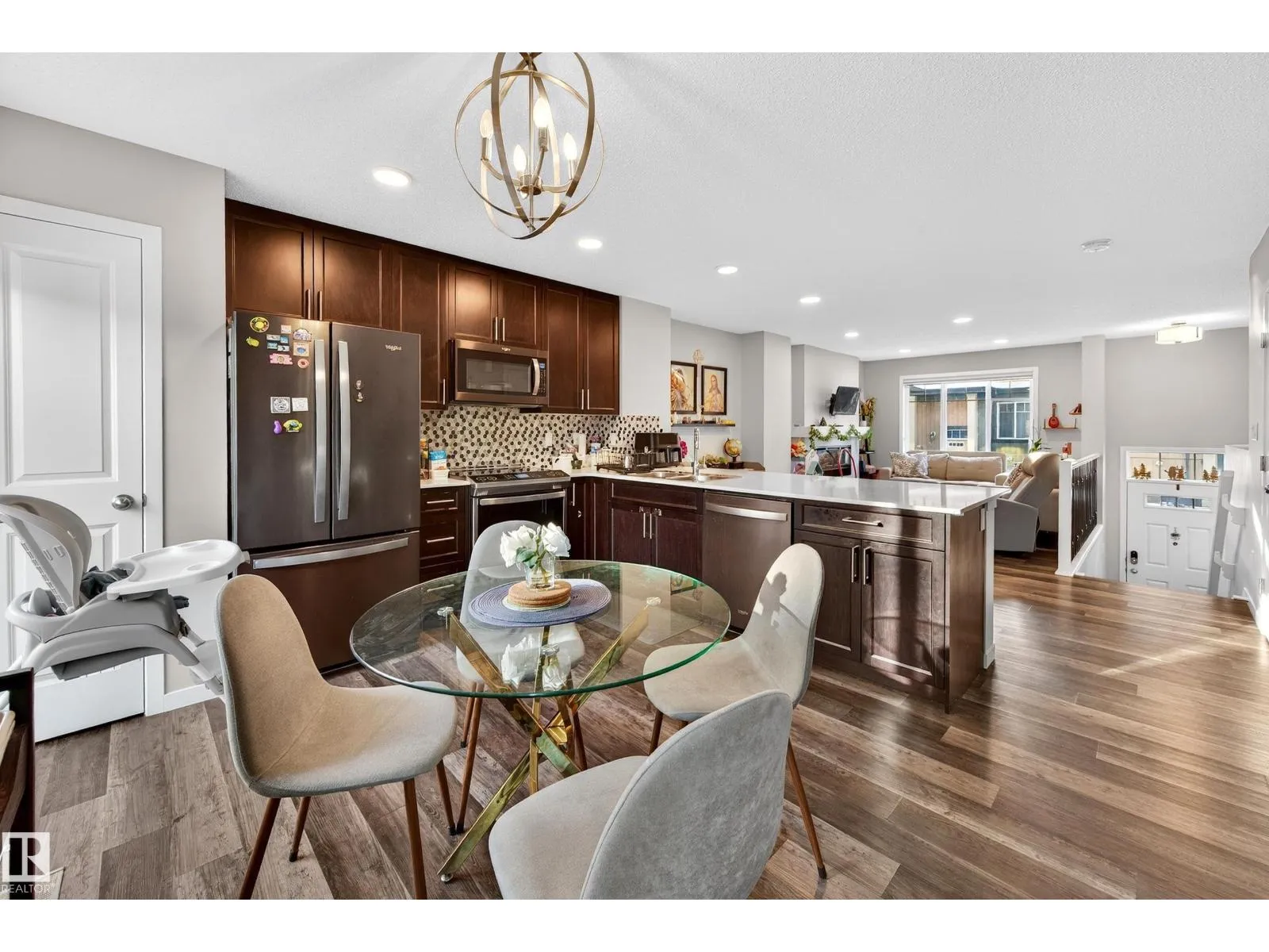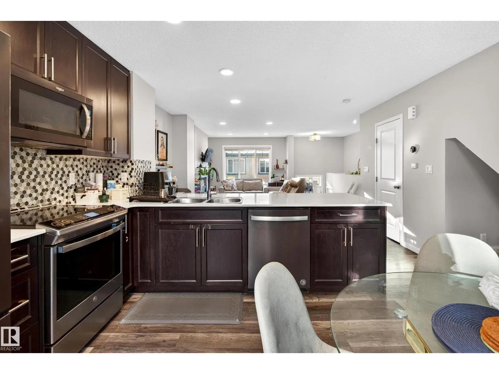 Welcome to this thoughtfully designed 3 bedroom, 2.5 bathroom townhome in the sought after community of The Orchards. Featuring a double attached garage and large windows that fill the home with natural light, this residence offers a bright and modern living space. The open concept main floor is ideal for everyday living and entertaining, complete with a contemporary kitchen with stainless steel appliances and upgraded stair railings that enhance the sense of openness. A private balcony just off the kitchen provides a perfect spot to enjoy your morning coffee. This smart home includes a Nest Hub, Nest Protect smoke and carbon monoxide detector with built in night light, 4th generation smart thermostat, Nest Door Yale Lock with camera and doorbell, Honeywell flood and freeze sensor, and LiftMaster garage opener. Low condo fees, pet free unit, pet friendly complex, walking trails behind, and close to schools, shopping, and transit. (id:27476)