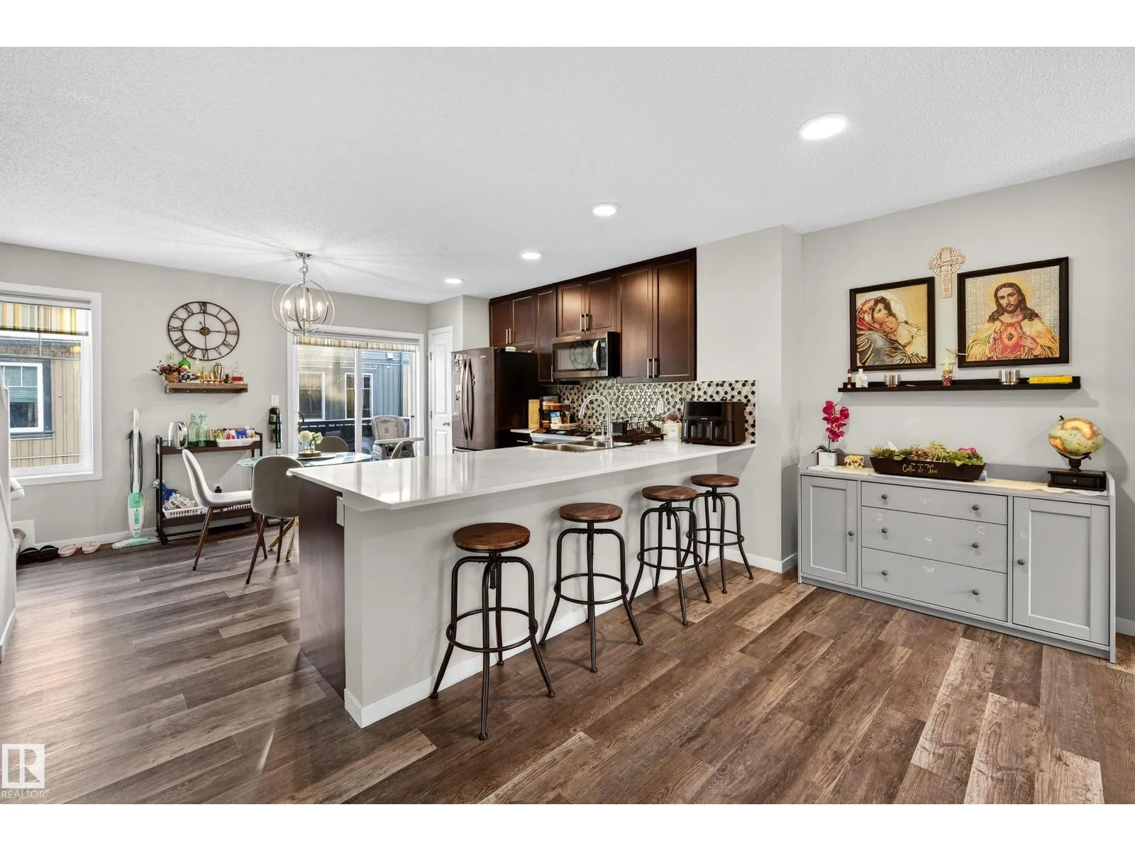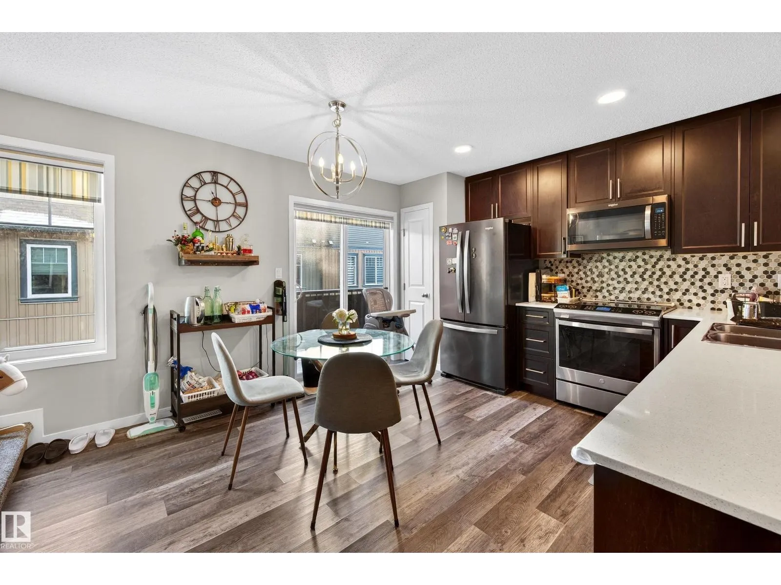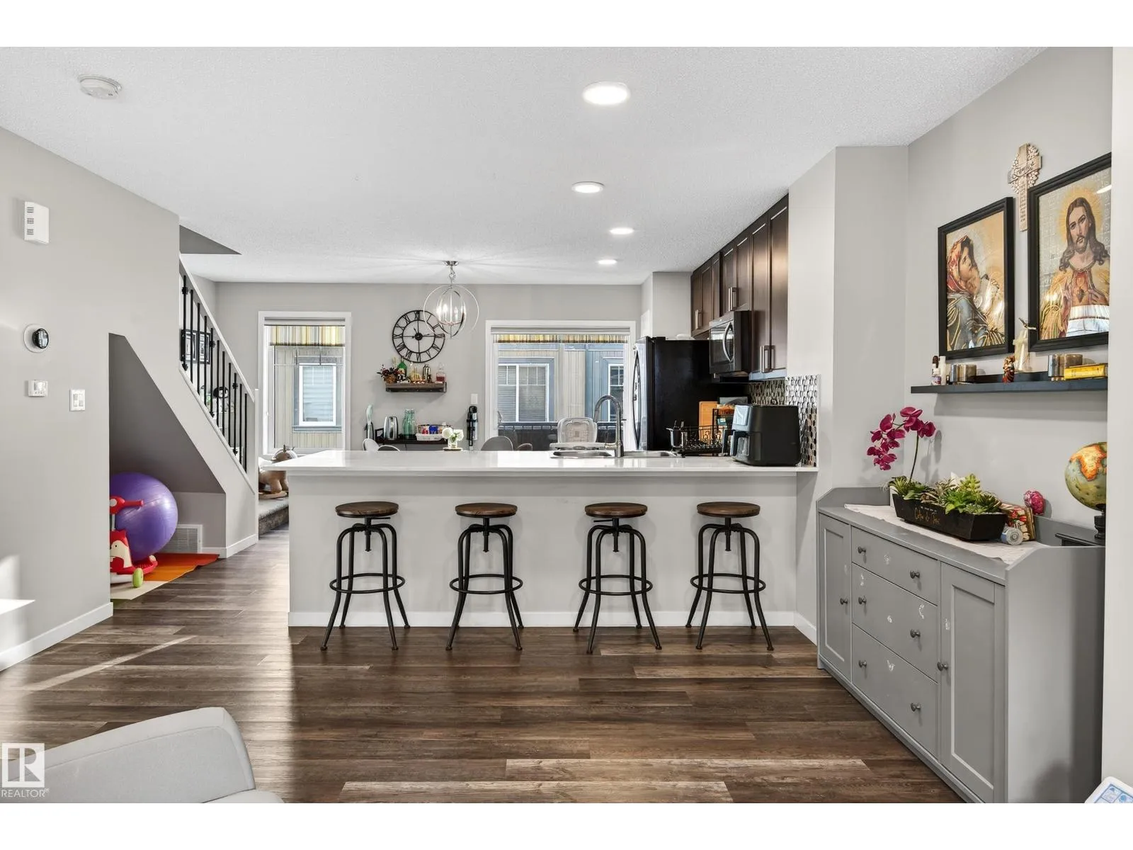 Welcome to this thoughtfully designed 3 bedroom, 2.5 bathroom townhome in the sought after community of The Orchards. Featuring a double attached garage and large windows that fill the home with natural light, this residence offers a bright and modern living space. The open concept main floor is ideal for everyday living and entertaining, complete with a contemporary kitchen with stainless steel appliances and upgraded stair railings that enhance the sense of openness. A private balcony just off the kitchen provides a perfect spot to enjoy your morning coffee. This smart home includes a Nest Hub, Nest Protect smoke and carbon monoxide detector with built in night light, 4th generation smart thermostat, Nest Door Yale Lock with camera and doorbell, Honeywell flood and freeze sensor, and LiftMaster garage opener. Low condo fees, pet free unit, pet friendly complex, walking trails behind, and close to schools, shopping, and transit. (id:27476)