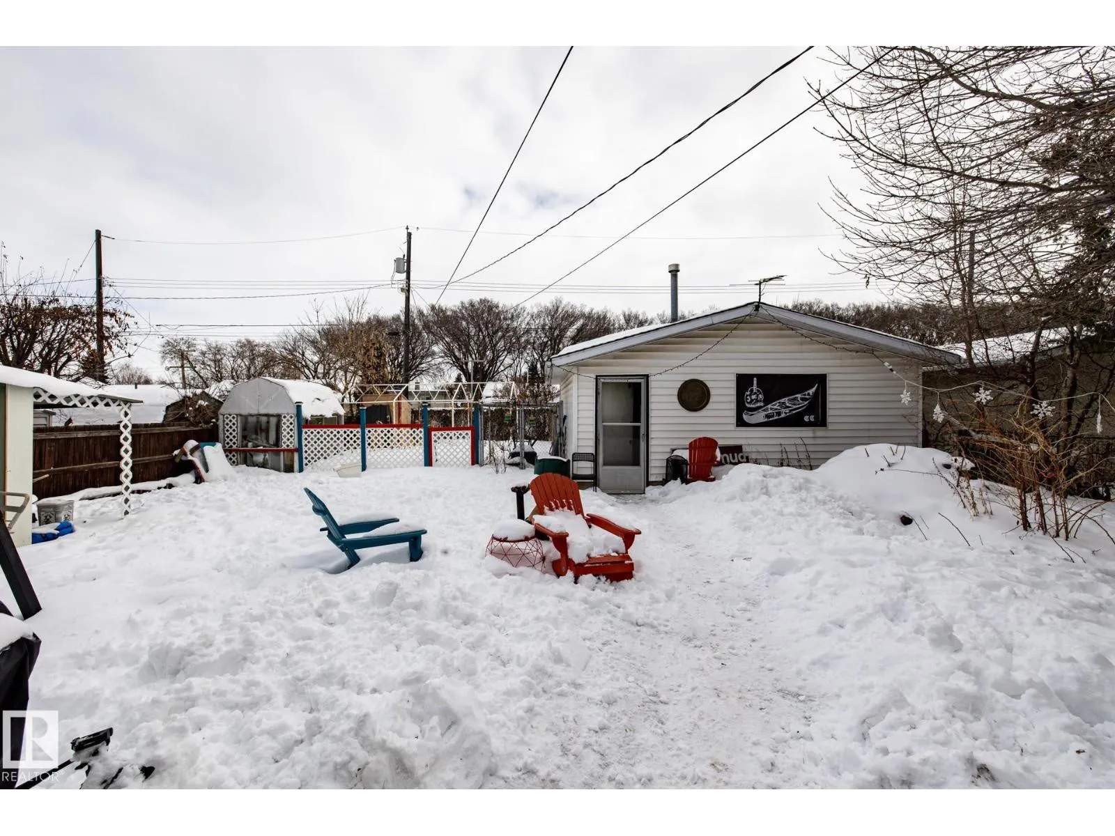 A diamond in the rough! This west-facing bungalow in Bergman sits on a 50' lot, with a great landscaped backyard and a double detached garage. Two bedrooms and a refreshed 4-pc bathroom complete the main floor, and the partly-finished full basement has the laundry, a second bathroom and two additional bedrooms. This 1950's bungalow has been opened up and the kitchen is now open to a bright and sunny great room; new shingles were added to the house (2022). Some upgrading was started in the basement and needs to be completed, perfect for a starter home or an investment where you want to build equity. Bergman is a wonderful neighbourhood and this home is on a tree-lined street within a few blocks of 50th Street and the Yellowhead Trail, and major shopping and dining/entertainment areas are nearby. (id:27476)