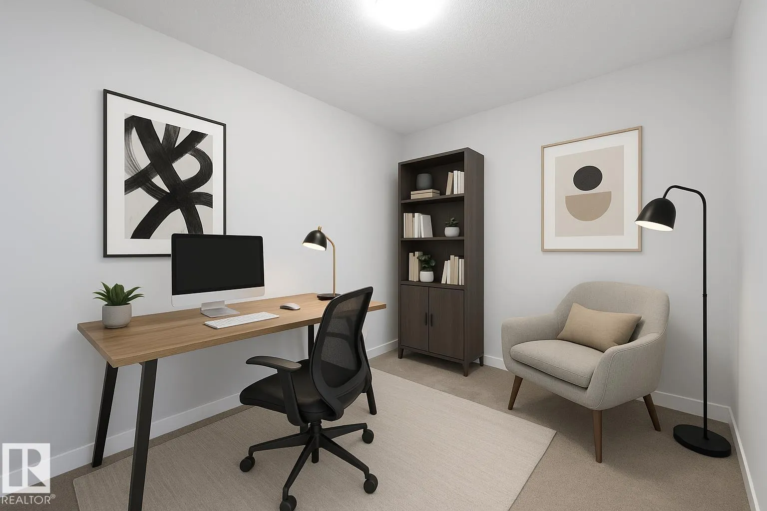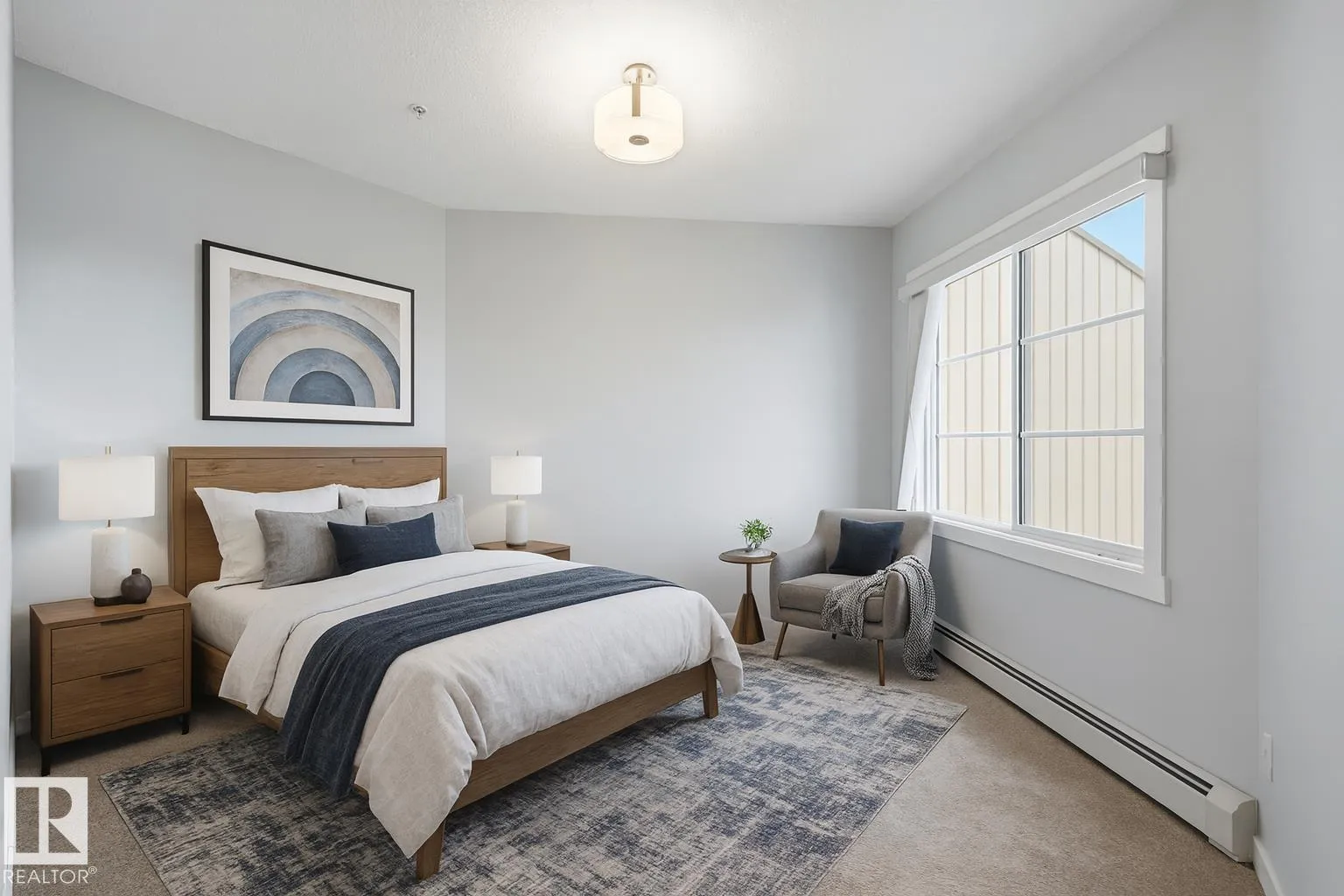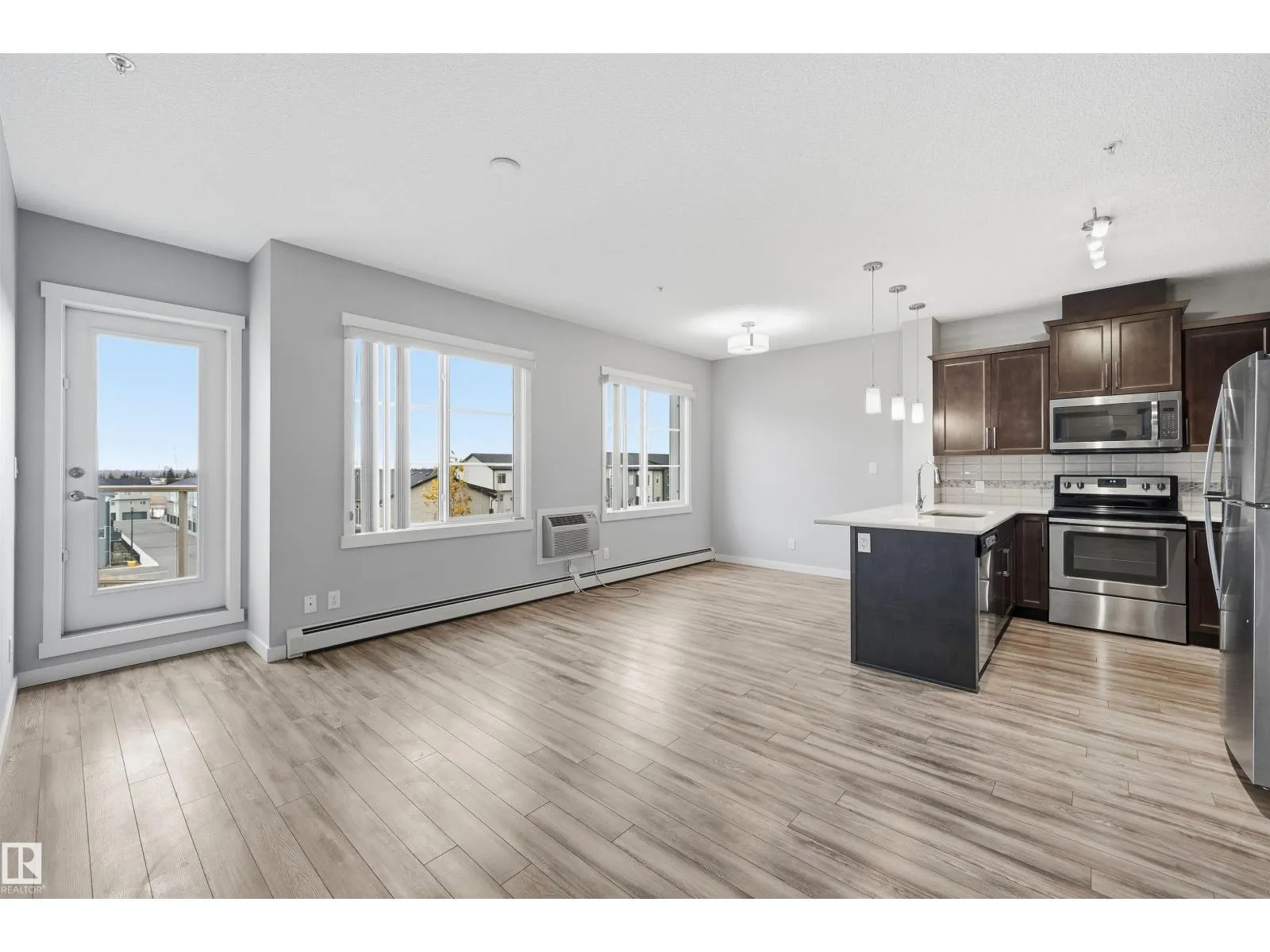 Well maintained and spacious TOP FLOOR 1 bed+den condo w/ AIR CONDITIONING! ALL UTILITIES INCL IN CONDO FEE - perfect for first time home buyers or investors. Prime location in South East Edmonton at Village at Walker Lake, close to everything! Unit features 9' ceilings, quartz countertops, laminate flooring, stainless steel kitchen appliances & a large island with eating bar. Open concept floor plan seamlessly connects the dining nook and roomy living room/patio. Primary bedroom has a unique layout and well-sized closet. The den is perfect for a home office space or a cozy second bedroom. Comes with a HEATED UNDERGROUND parking stall. Visitor parking available. Conveniently located close to schools, public transportation, grocery stores, shopping & dining at South Edmonton Common, walking trails & ponds. Easy access to major commuter routes including Ellerslie Rd and Anthony Henday for effortless city wide commuting. (id:27476)