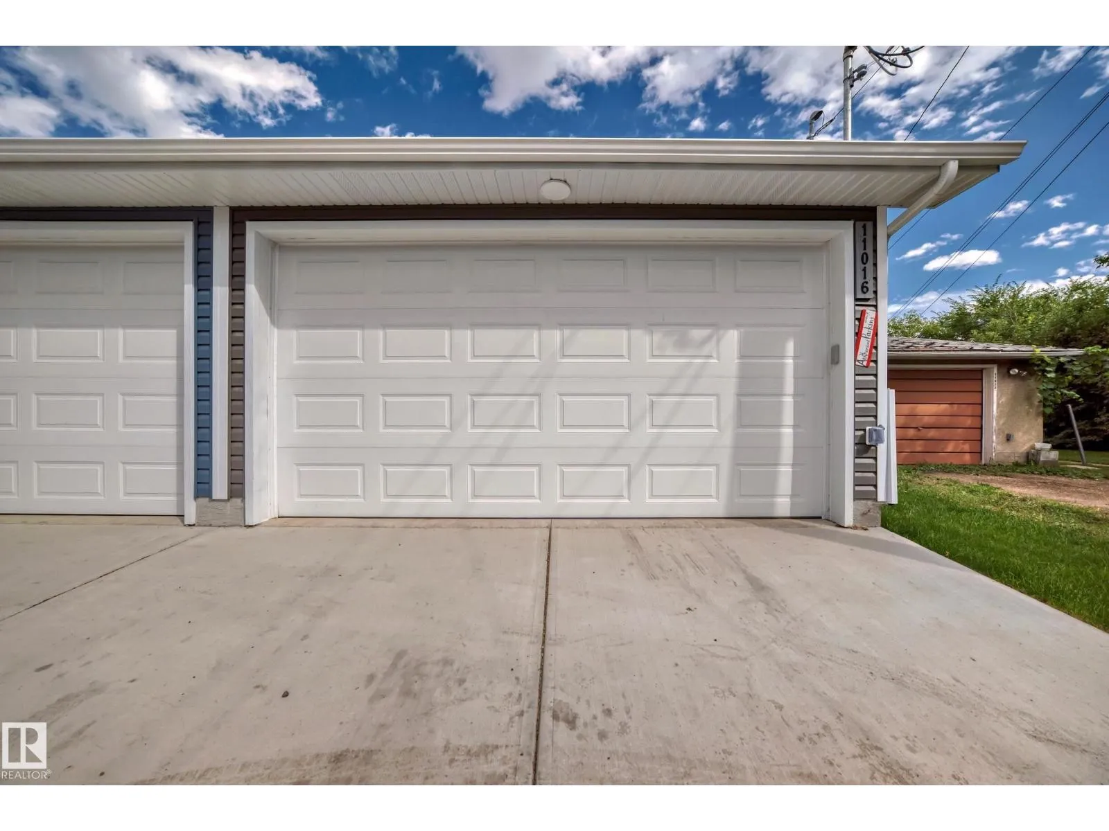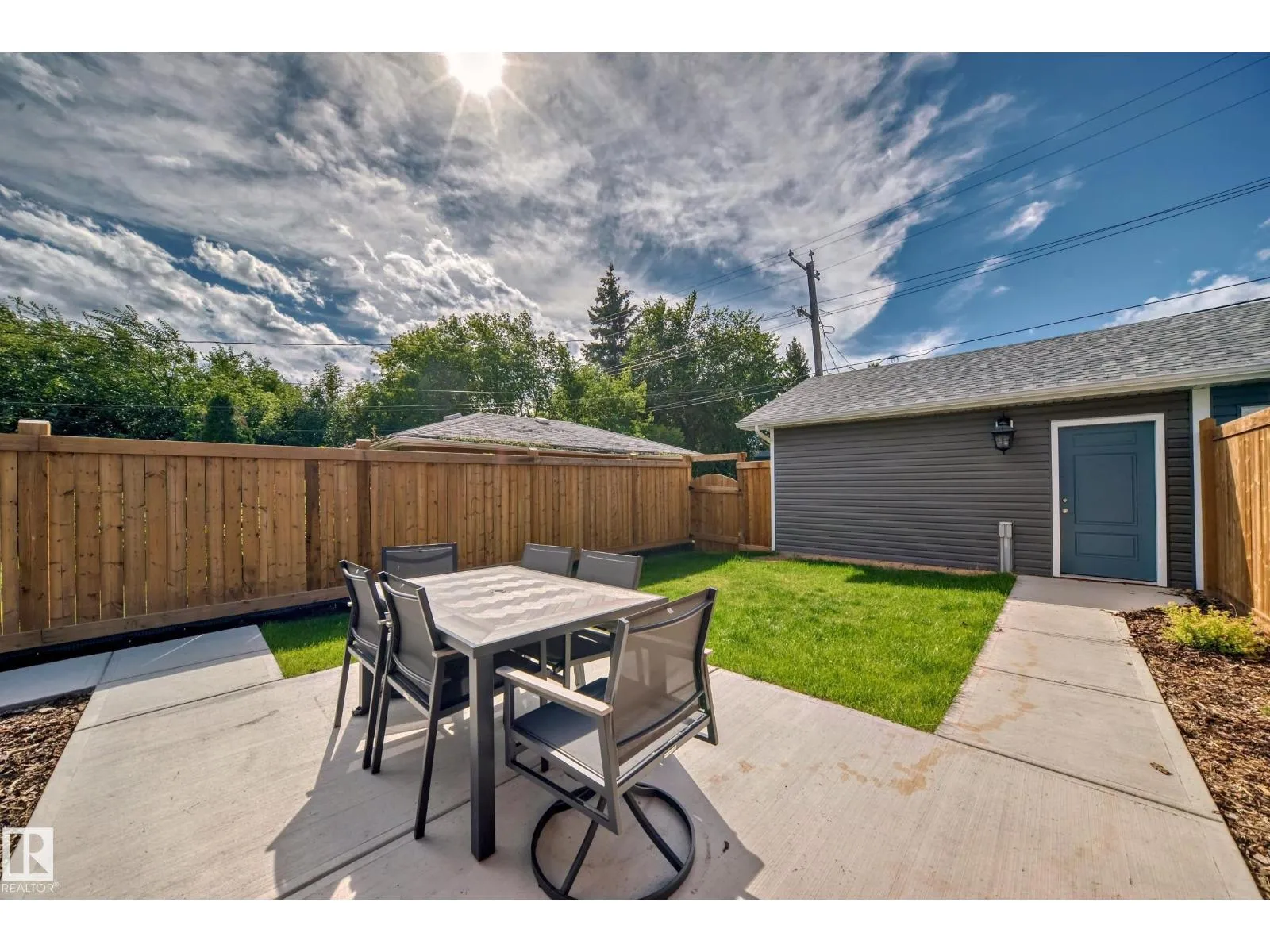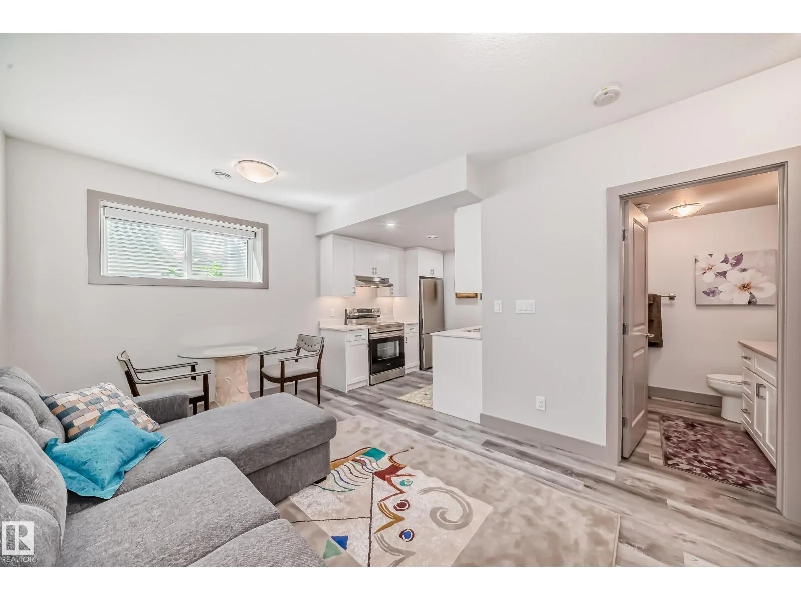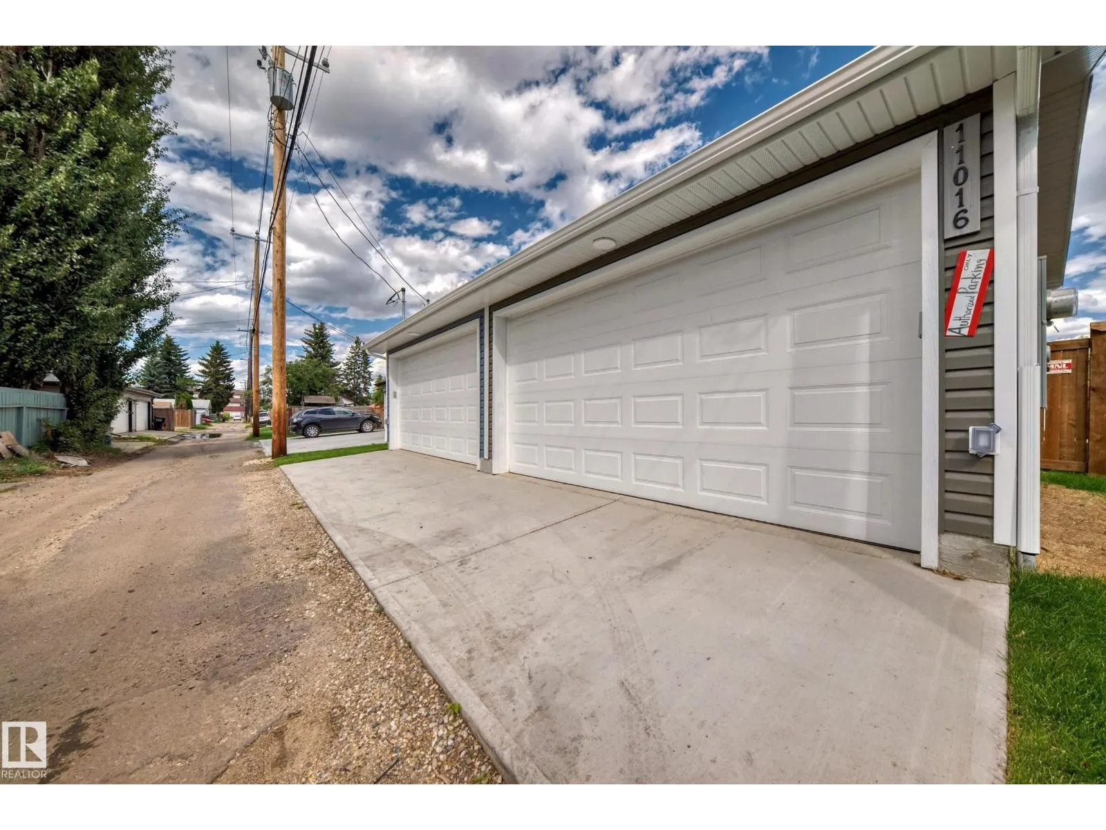 Welcome to 11016 149 Street NW, a custom-built 2023 half duplex in desirable High Park featuring a fully legal basement suite and excellent income potential. Perfect for investors, multigenerational families, or buyers looking to live upstairs and rent the suite to offset their mortgage. The main floor offers a modern open-concept layout with hardwood floors, ceramic tile, and a stylish kitchen with quartz countertops, large island, and stainless steel appliances. Upstairs includes 3 spacious bedrooms, including a primary suite with a 5-piece ensuite, plus an additional full bath and convenient upper laundry. The fully finished legal basement suite features its own kitchen, bedroom, full bathroom, living area, and separate entrance, ideal for rental income or extended family living. Additional highlights include 9 ft ceilings, central A/C, tankless hot water, double detached garage, and quality finishes throughout. Barely used furniture and patio set are negotiable, making this a true turnkey opportunity (id:27476)
