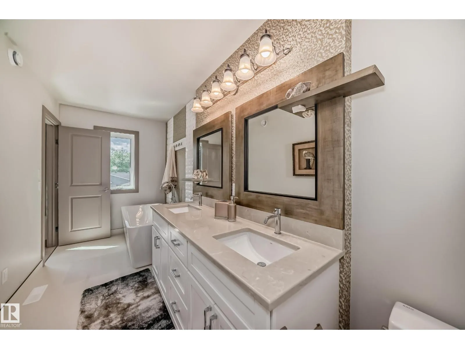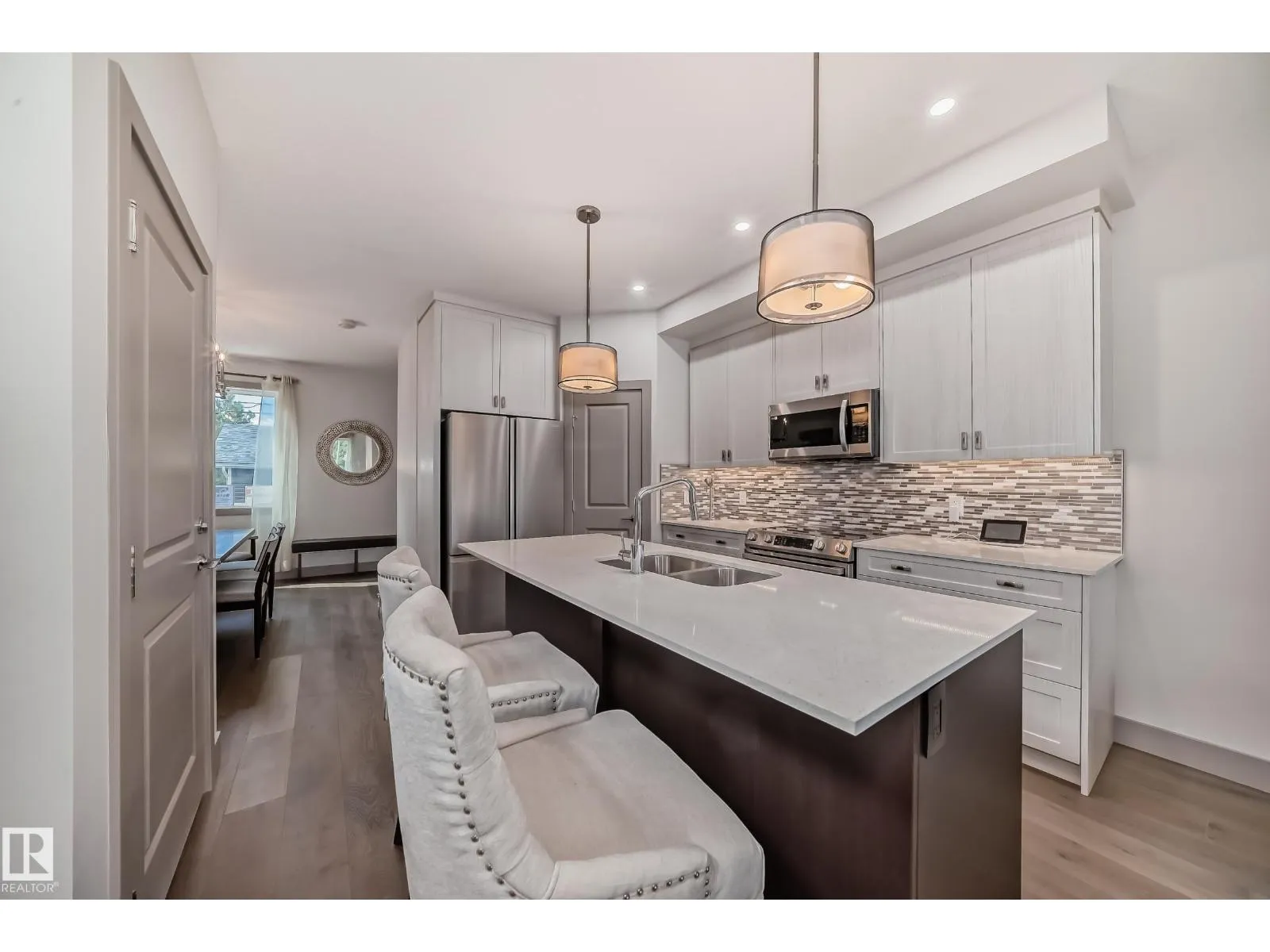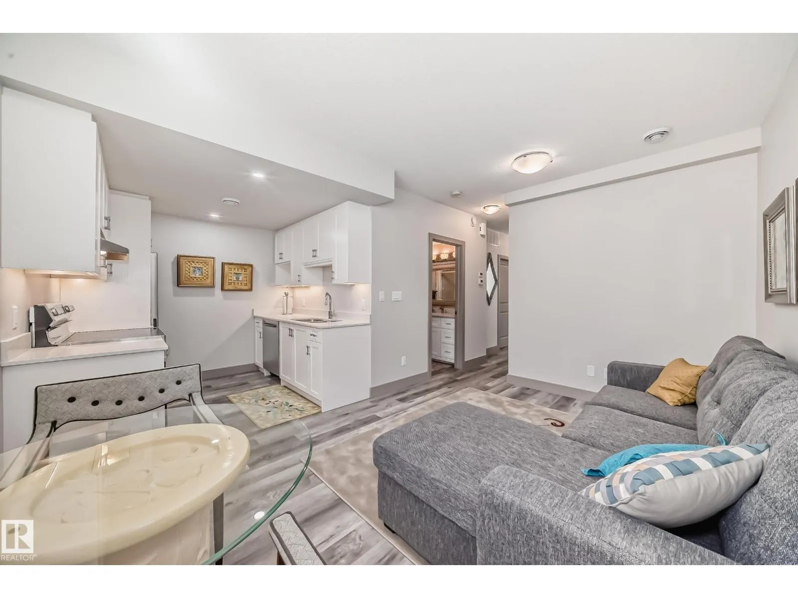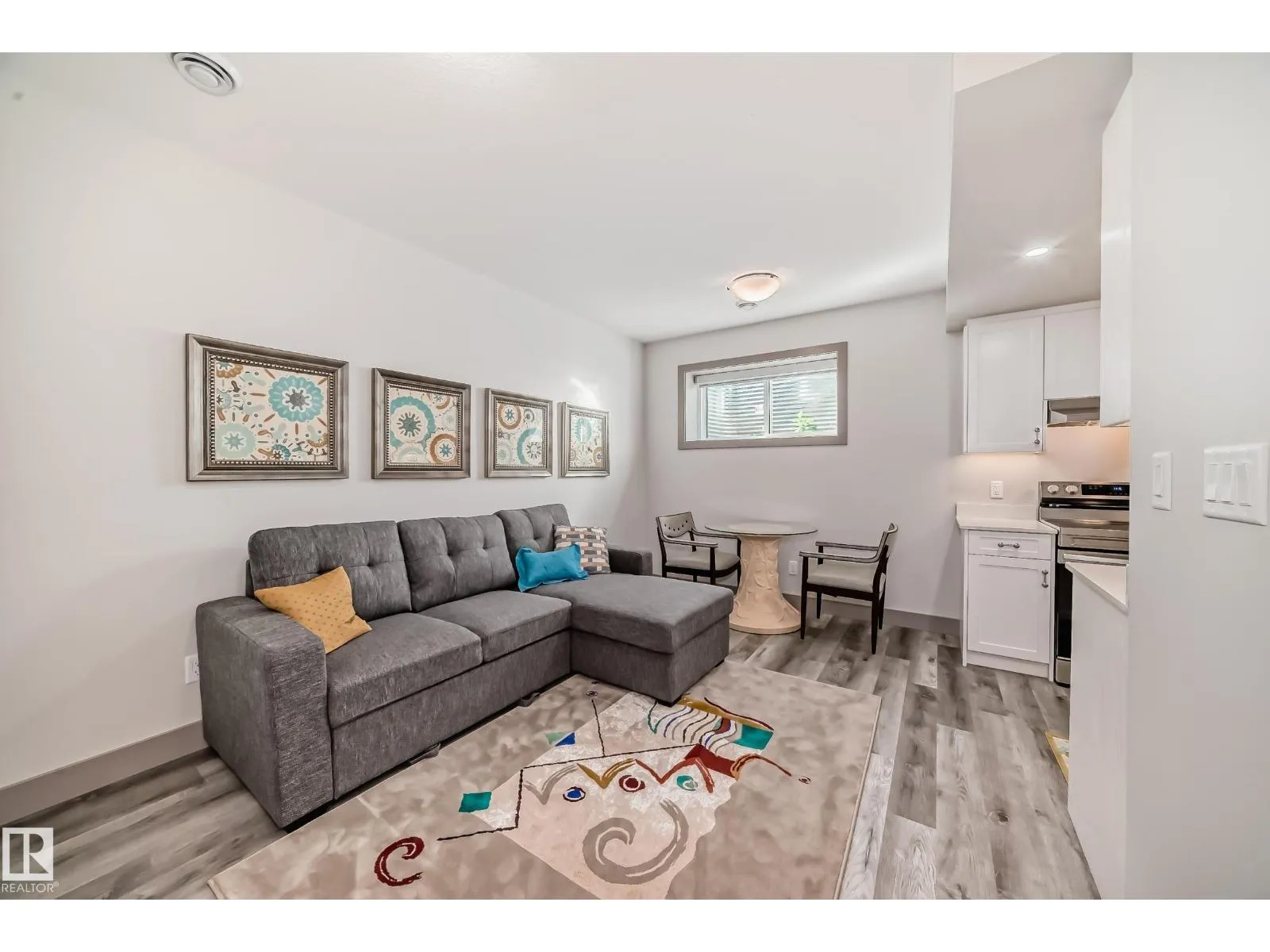 Welcome to 11016 149 Street NW, a custom-built 2023 half duplex in desirable High Park featuring a fully legal basement suite and excellent income potential. Perfect for investors, multigenerational families, or buyers looking to live upstairs and rent the suite to offset their mortgage. The main floor offers a modern open-concept layout with hardwood floors, ceramic tile, and a stylish kitchen with quartz countertops, large island, and stainless steel appliances. Upstairs includes 3 spacious bedrooms, including a primary suite with a 5-piece ensuite, plus an additional full bath and convenient upper laundry. The fully finished legal basement suite features its own kitchen, bedroom, full bathroom, living area, and separate entrance, ideal for rental income or extended family living. Additional highlights include 9 ft ceilings, central A/C, tankless hot water, double detached garage, and quality finishes throughout. Barely used furniture and patio set are negotiable, making this a true turnkey opportunity (id:27476)
