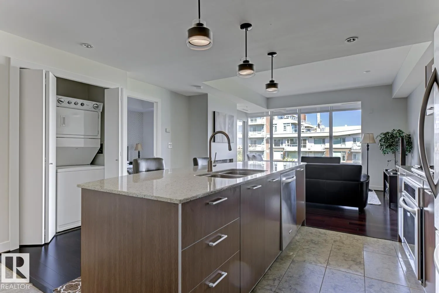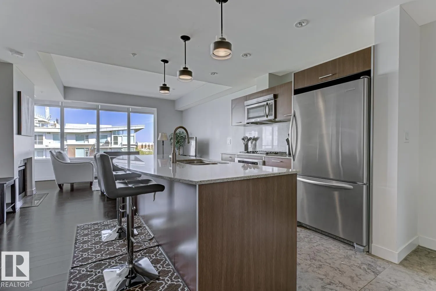 This Bright Top floor condo has a gourmet kitchen with granite countertops, stainless steel appliances with a gas stove and a large island which is perfect for entertaining! The spacious bedroom has a walkthrough closet with direct access to your spa bathroom with both shower and soaker tub. This well maintained unit has an electrical fireplace and a balcony with a gas line for your BBQ. There is an underground parkade alongside your titled parking spot and personal storage. Steps away from Century Park LRT, the YMCA, and major highways. Condo Fees include all utilities. (id:27476)