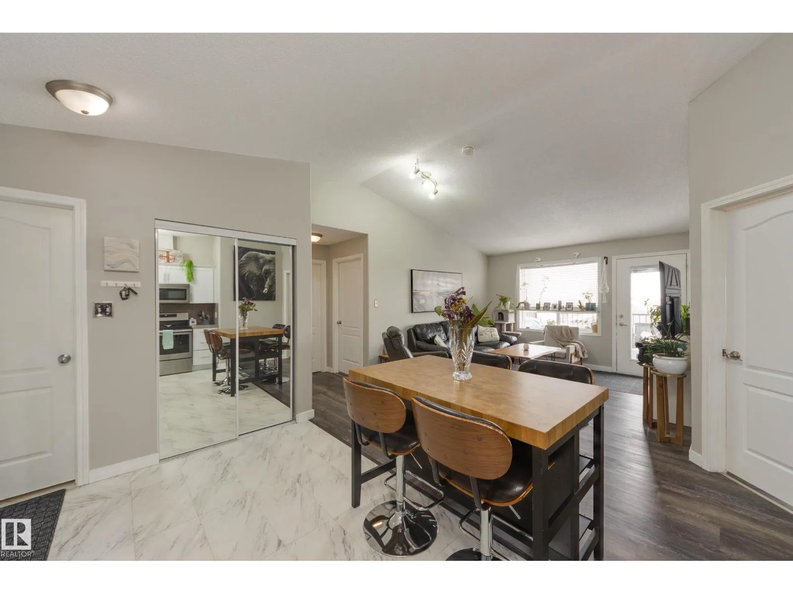 Welcome to this bright and functional TOP FLOOR 2 bed, 2 bath condo in desirable Terwillegar! Thoughtfully designed with an open-concept layout and VAULTED CEILNGS, the bedrooms are positioned on opposite sides of the unit, ideal for tenants, guests, or added privacy. This home has been freshly PAINTED, features NEW FLOORING throughout, and REFRESHED kitchen cabinets for a clean, modern feel. The spacious primary bedroom offers a WALK-THROUGH CLOSET leading to a private 4pc ENSUITE, while the 2nd bedroom and additional 4pc bath provide excellent flexibility for GUESTS or a HOME OFFICE. Enjoy the large IN-SUITE LAUNDRY and STORAGE room, perfect for keeping cleaning supplies, seasonal items, and extra shelving neatly tucked away. Relax on the spacious BALCONY perfect for morning coffee or evening unwinding. The complex features a GYM, and the unit includes an above-ground parking stall located near the entry. Close to the Rec Centre, shopping, Anthony Henday, and the airport, this location truly delivers! (id:27476)