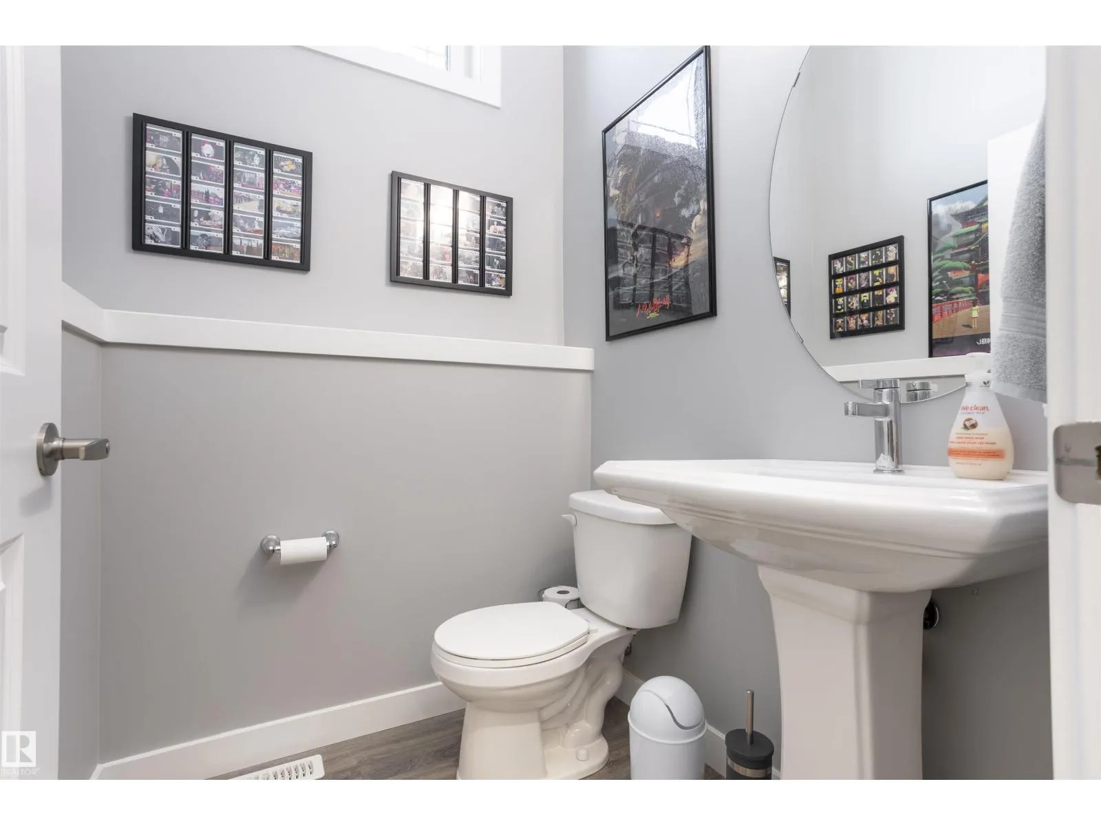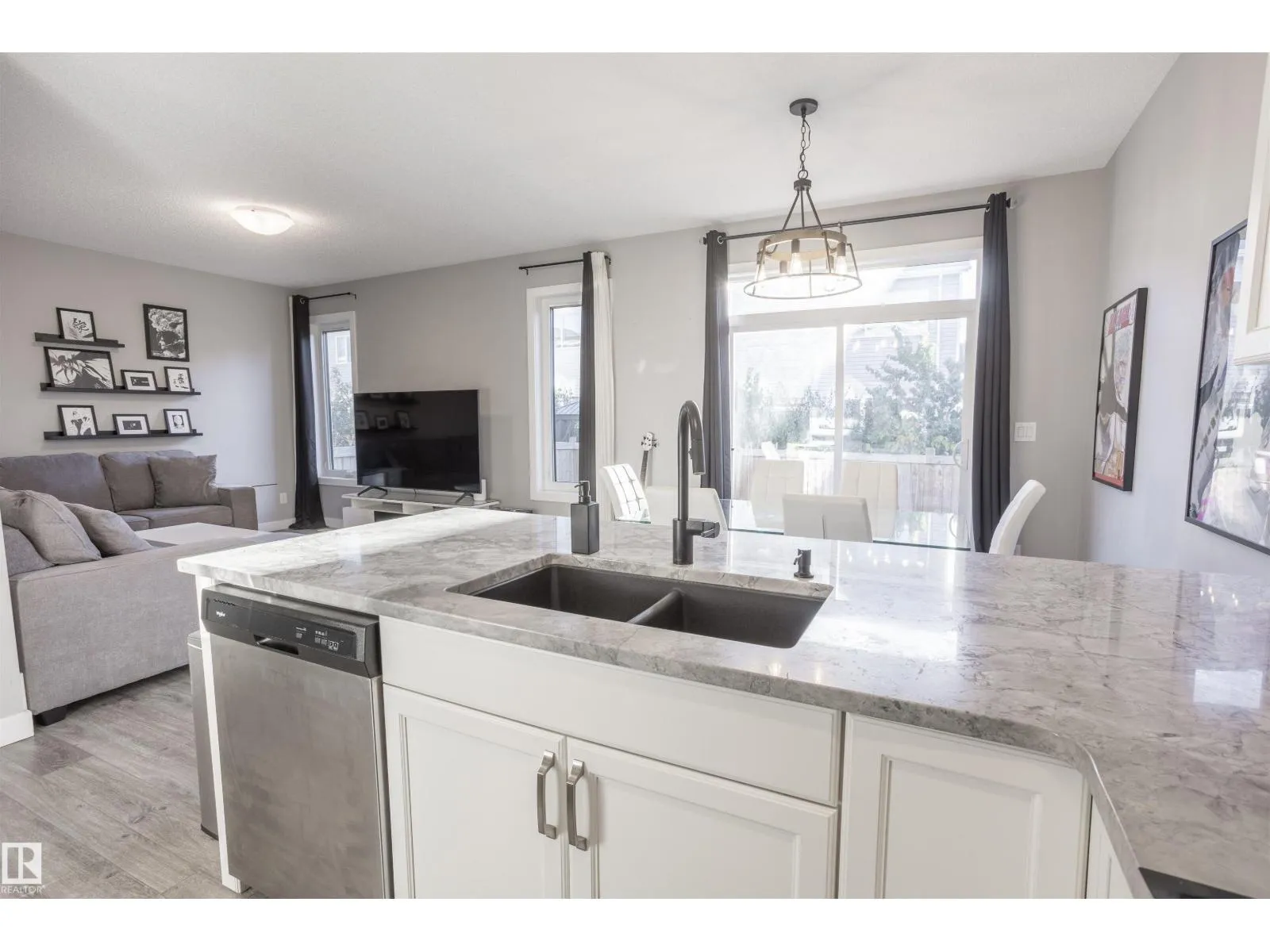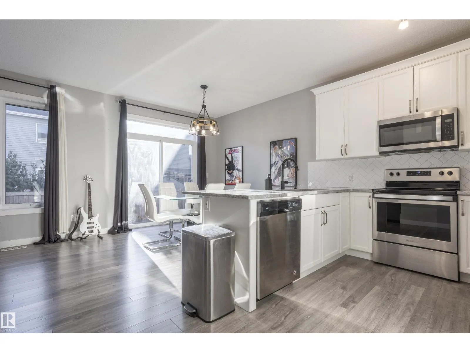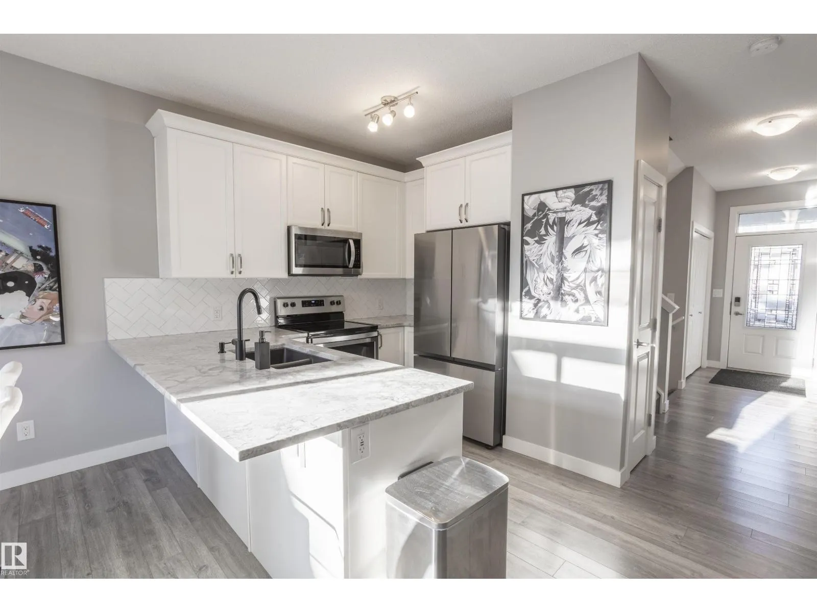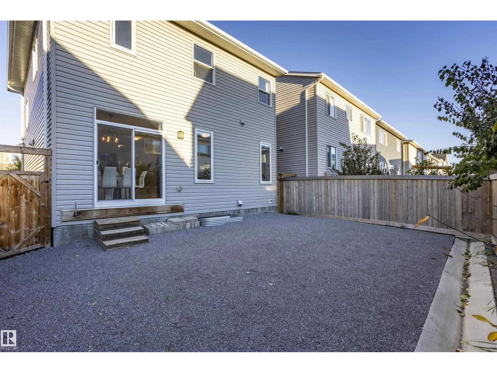 Step inside this stunning, air conditioned, low maintenance landscaped, 3-bedroom, 2.5-bath home and prepare to be impressed. Bright, welcoming, and beautifully finished, it offers a perfect mix of modern style and everyday comfort. The main floor showcases soaring 9-foot ceilings, luxury vinyl plank flooring, and a designer kitchen complete with quartz countertops and a gorgeous herringbone backsplash. The open layout flows seamlessly for entertaining or family time, and the fully fenced backyard is ideal for kids and pets. Upstairs, a large main bath with a private water closet complements two generous bedrooms and an expansive primary suite featuring a walk-in closet and elegant ensuite with quartz finishes. Convenient upstairs laundry adds practicality to busy days, while the unfinished basement is ready for your ideas. Nestled on a quiet street, this home is just steps from a private playground, spray park, skating rink, and scenic walking trails. Stylish, functional, and move-in ready (id:27476)