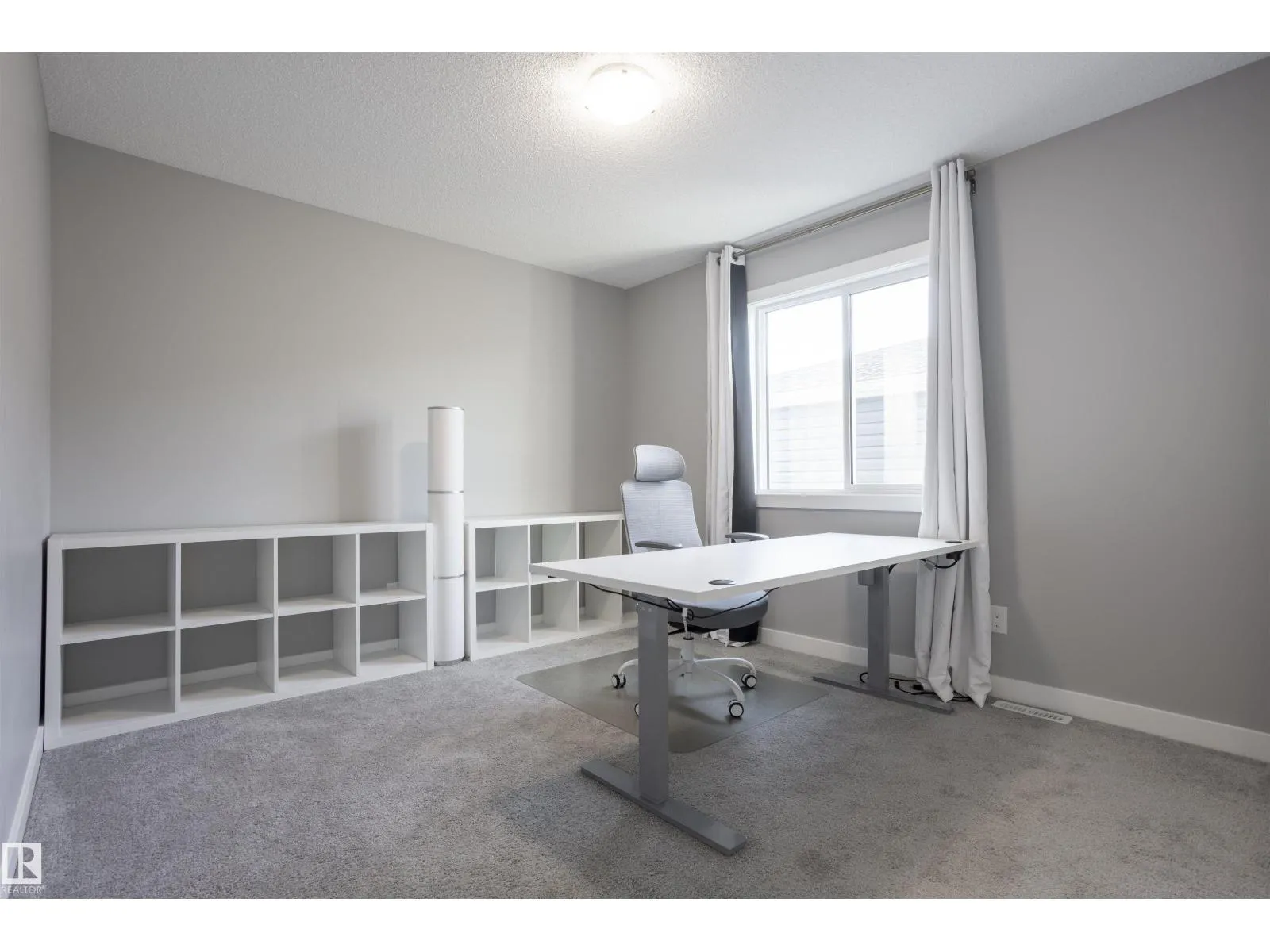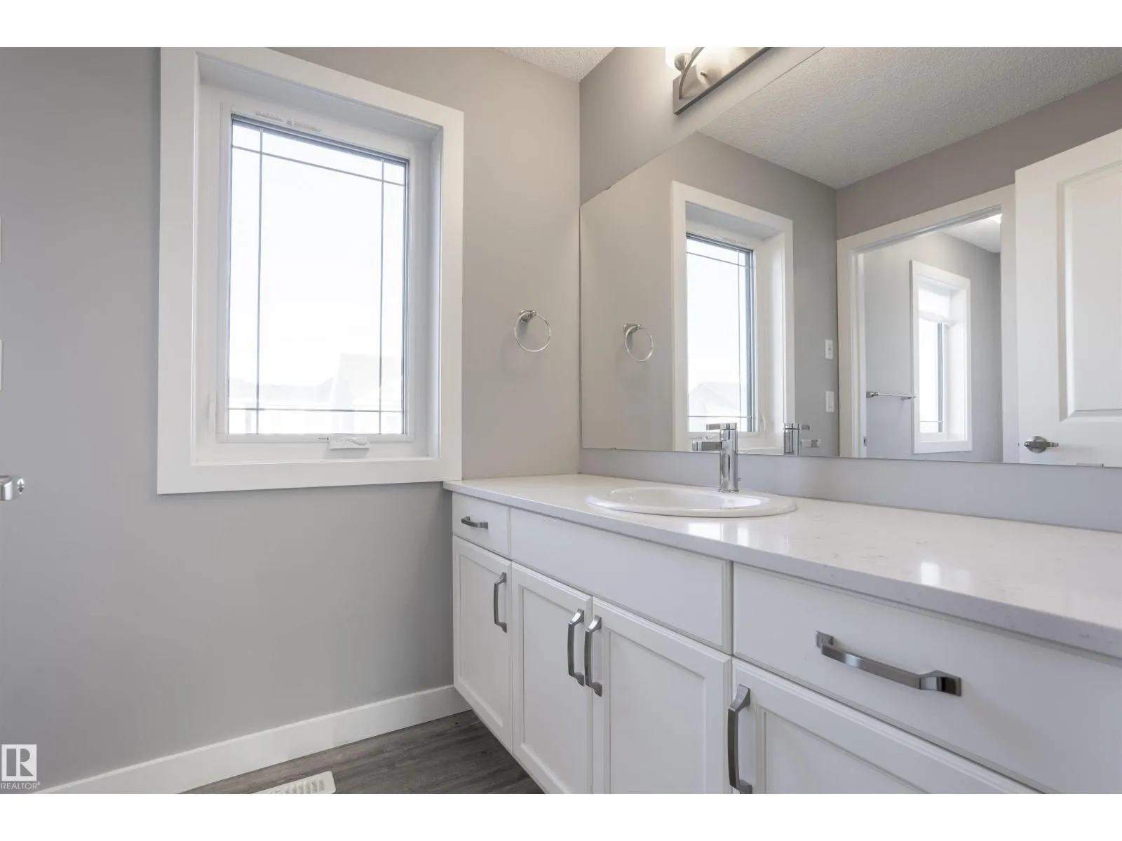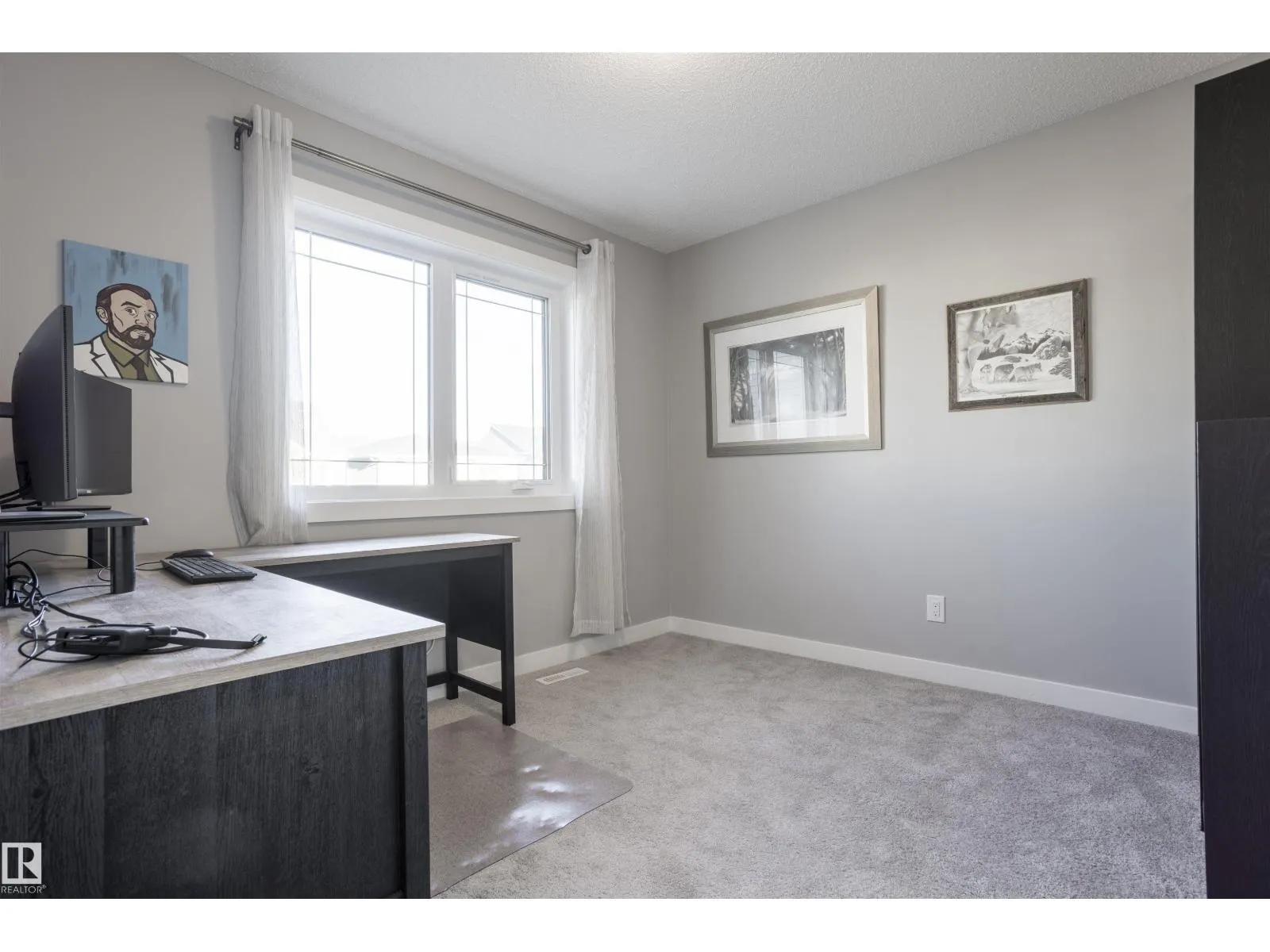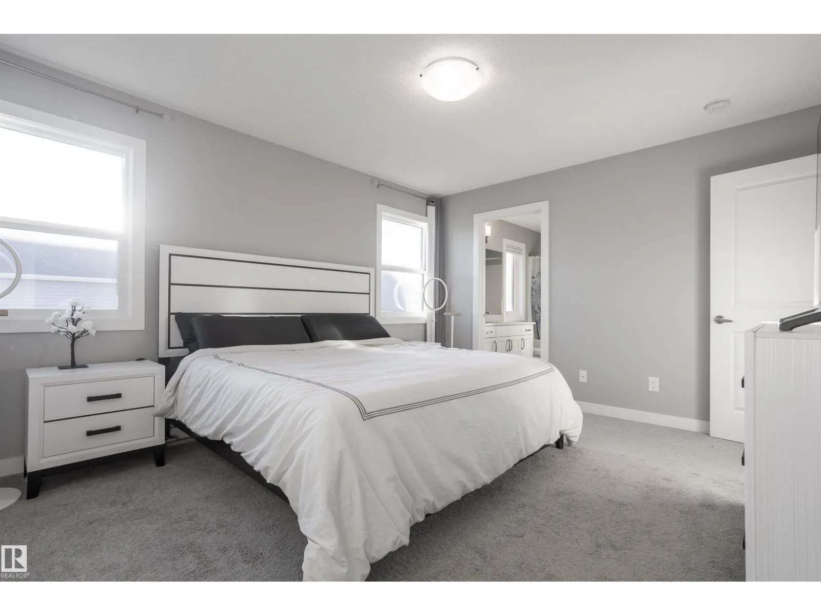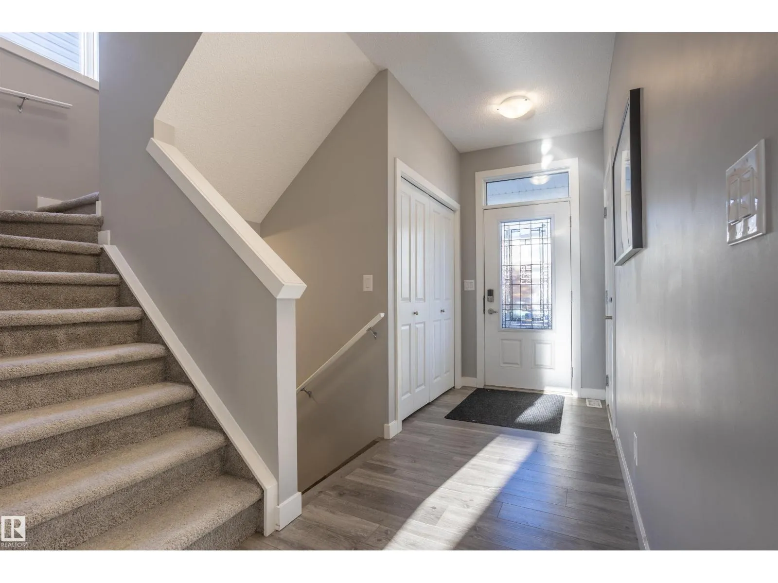 Step inside this stunning, air conditioned, low maintenance landscaped, 3-bedroom, 2.5-bath home and prepare to be impressed. Bright, welcoming, and beautifully finished, it offers a perfect mix of modern style and everyday comfort. The main floor showcases soaring 9-foot ceilings, luxury vinyl plank flooring, and a designer kitchen complete with quartz countertops and a gorgeous herringbone backsplash. The open layout flows seamlessly for entertaining or family time, and the fully fenced backyard is ideal for kids and pets. Upstairs, a large main bath with a private water closet complements two generous bedrooms and an expansive primary suite featuring a walk-in closet and elegant ensuite with quartz finishes. Convenient upstairs laundry adds practicality to busy days, while the unfinished basement is ready for your ideas. Nestled on a quiet street, this home is just steps from a private playground, spray park, skating rink, and scenic walking trails. Stylish, functional, and move-in ready (id:27476)