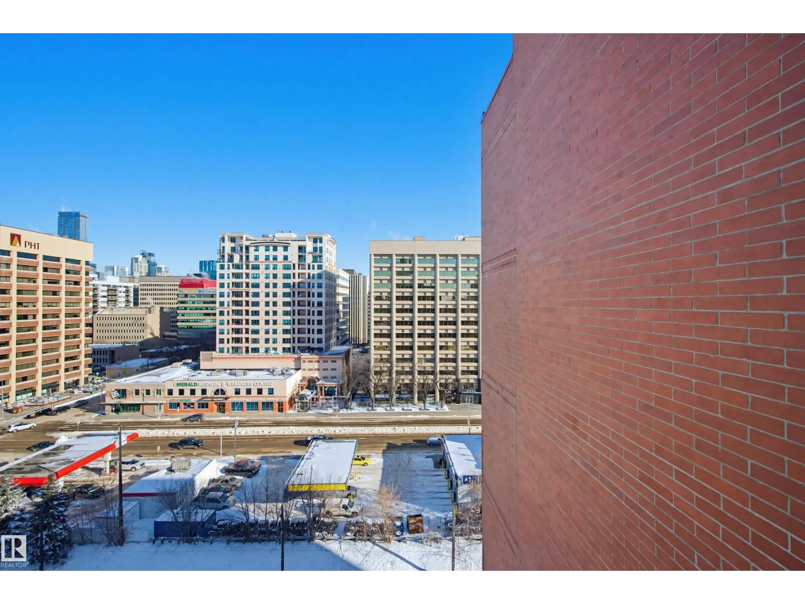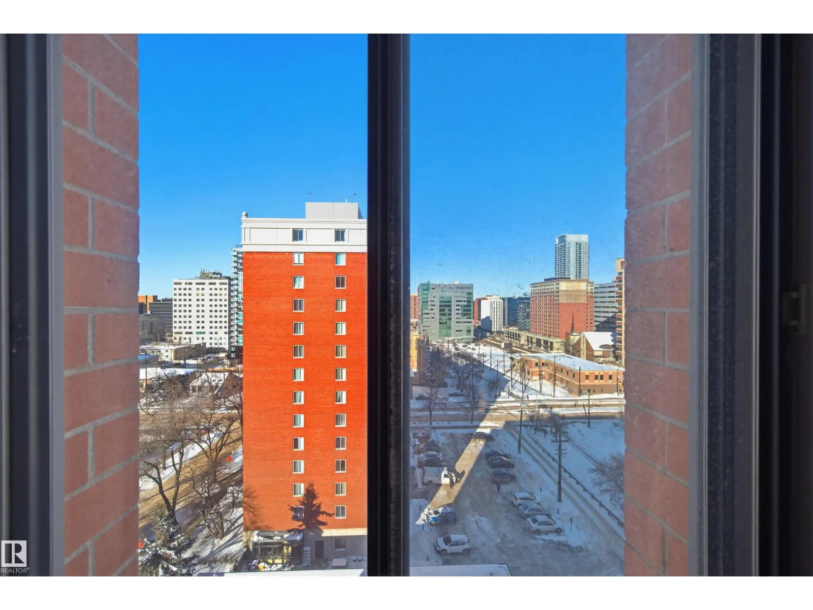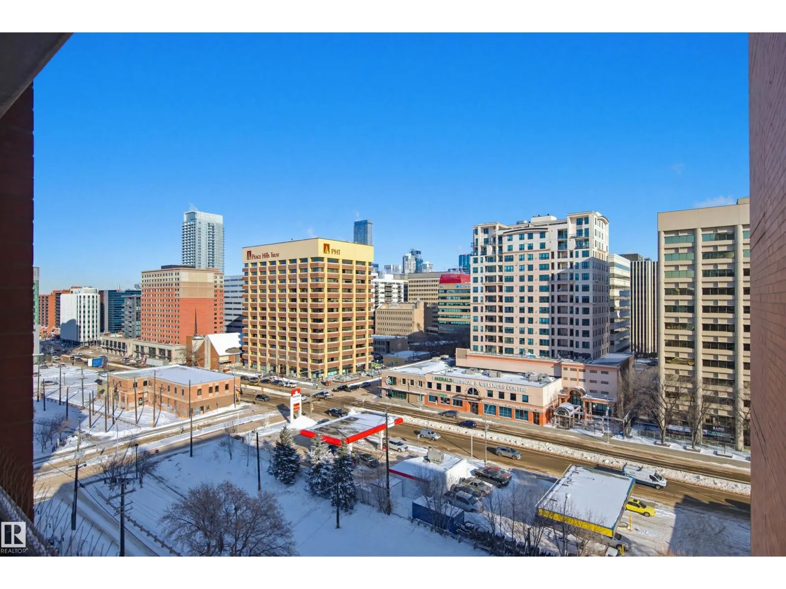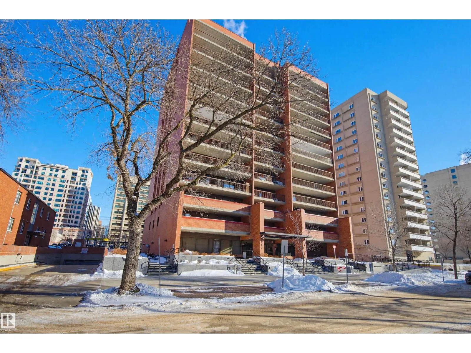 Two-bedroom condo in Rosedale Place, perfectly suited for students and professionals. Located steps from Grandin LRT and within walking distance of river valley trails, shops, restaurants, downtown, the University of Alberta, and MacEwan. The updated kitchen features quartz countertops, stainless steel appliances, and a glass tile backsplash. Laminate flooring in the living area and tile in the kitchen and bathroom. The spacious primary suite offers a large walk-through closet; the second bedroom is generous in size. The bright living room opens via sliding doors onto a balcony with downtown views. Well-maintained building amenities include exercise and party rooms. Includes an underground parking stall. Condo fees cover electricity, heat, and water/sewer. Ready for a quick possession. (id:27476)