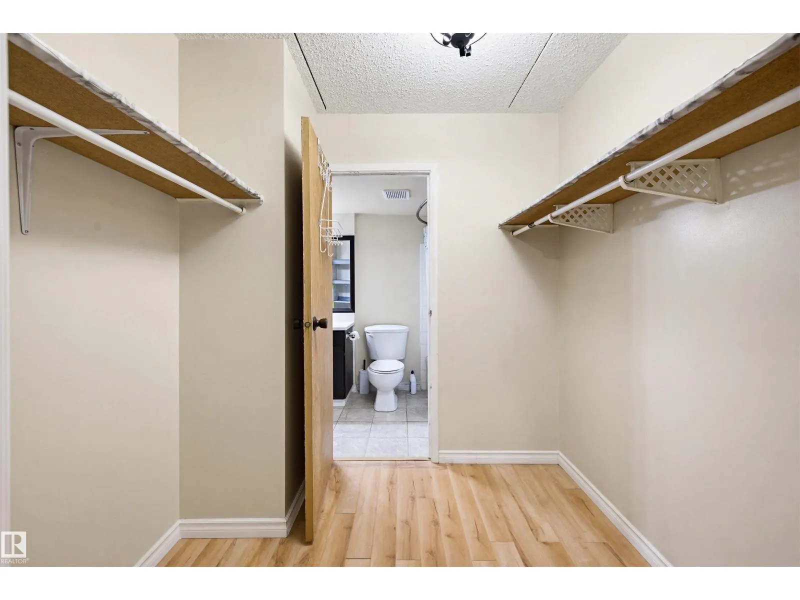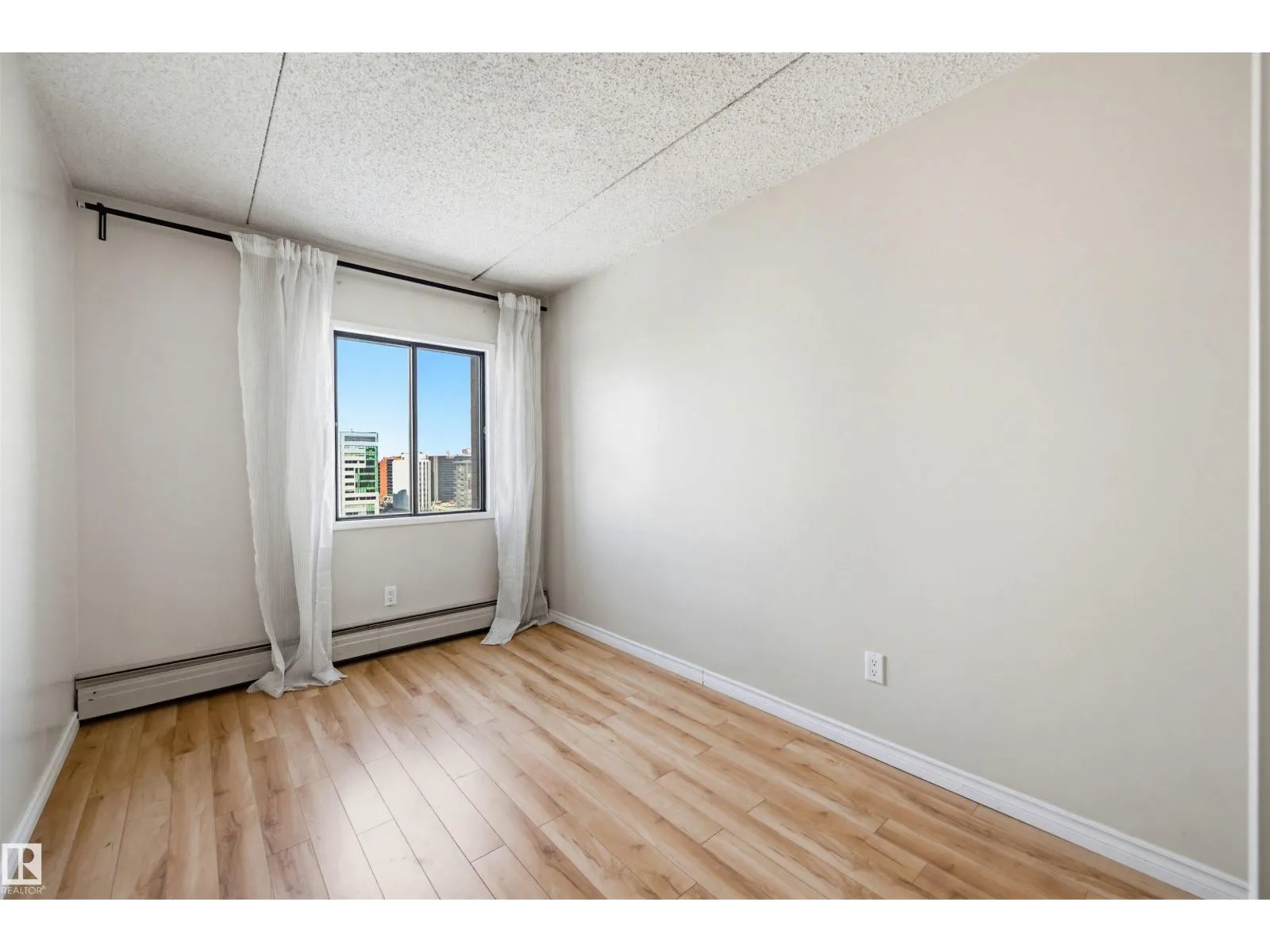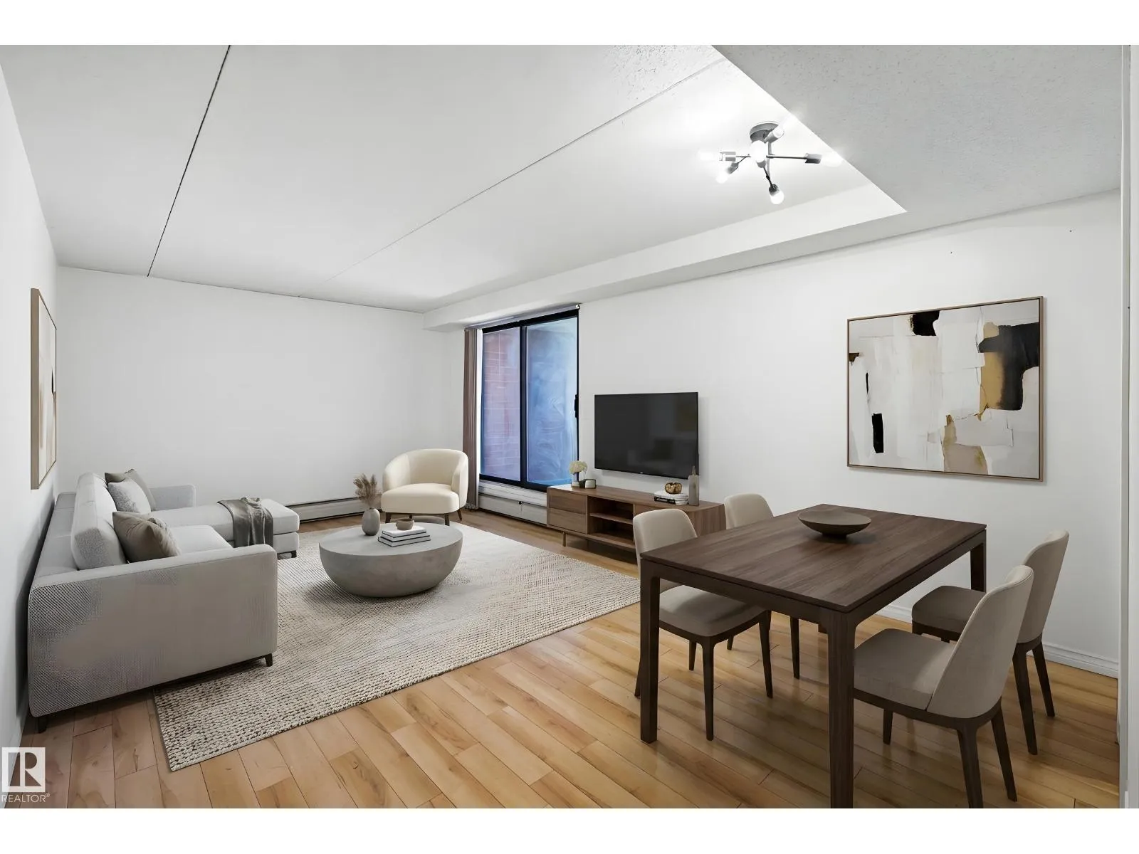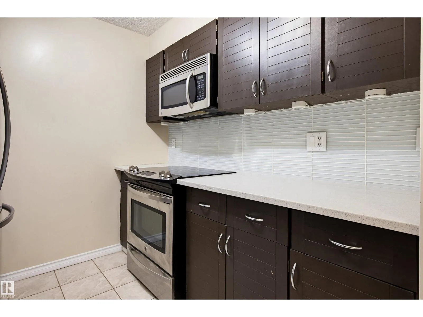 Two-bedroom condo in Rosedale Place, perfectly suited for students and professionals. Located steps from Grandin LRT and within walking distance of river valley trails, shops, restaurants, downtown, the University of Alberta, and MacEwan. The updated kitchen features quartz countertops, stainless steel appliances, and a glass tile backsplash. Laminate flooring in the living area and tile in the kitchen and bathroom. The spacious primary suite offers a large walk-through closet; the second bedroom is generous in size. The bright living room opens via sliding doors onto a balcony with downtown views. Well-maintained building amenities include exercise and party rooms. Includes an underground parking stall. Condo fees cover electricity, heat, and water/sewer. Ready for a quick possession. (id:27476)